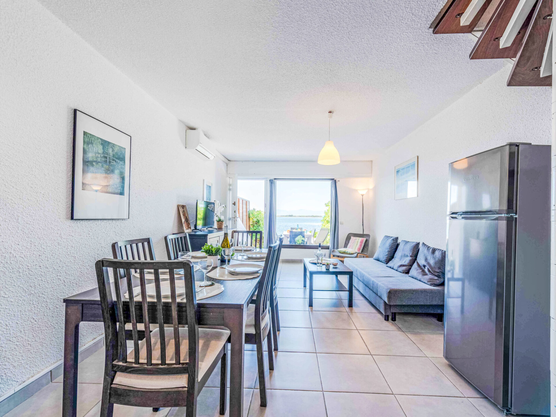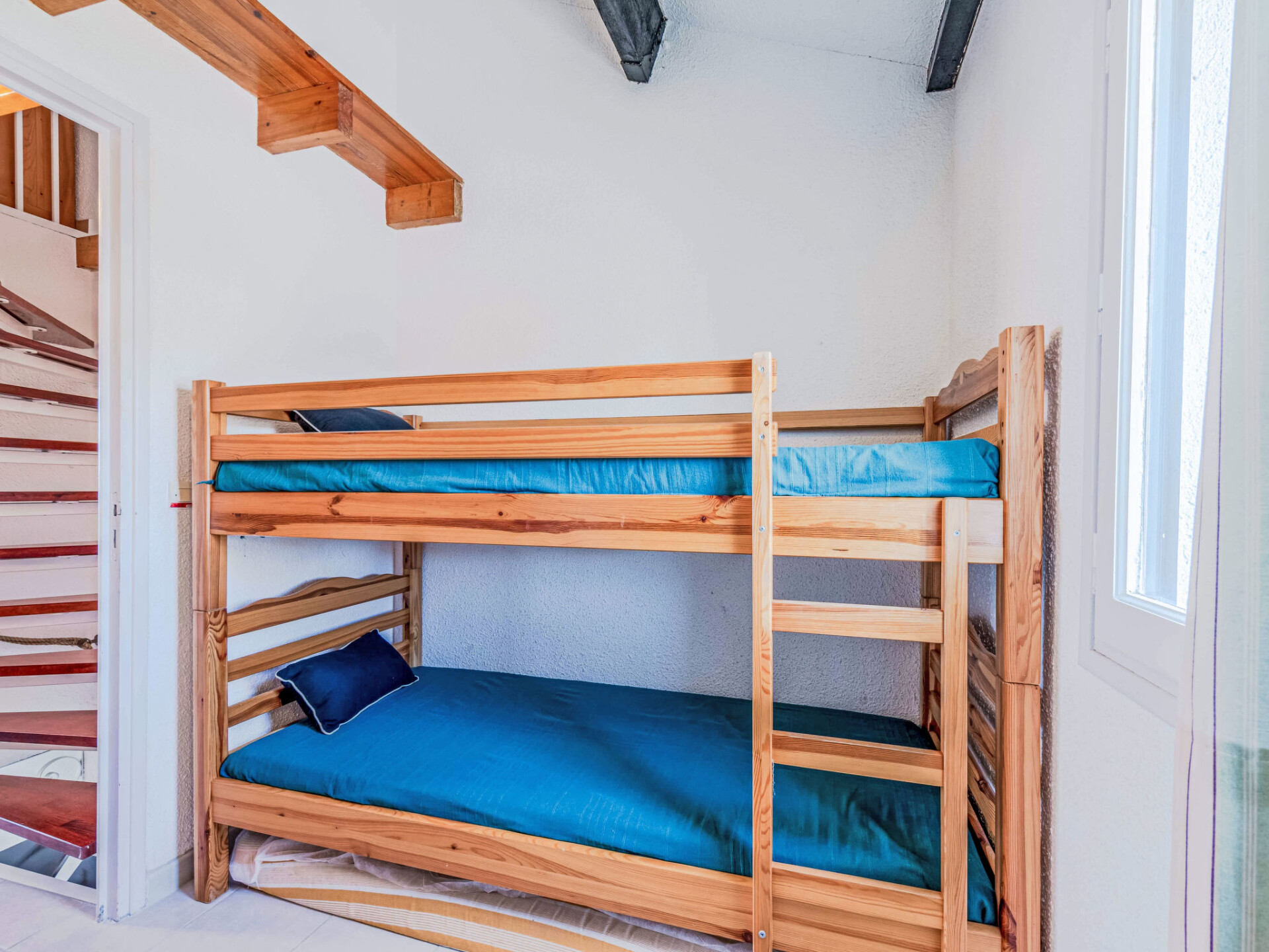 Huis in een rij 4-kamers 60 m2 op 2 verdiepingen, op de begane grond, op het zuiden gelegen. Woon-/eetkamer met TV (Flatscreen TV). Uitgang naar het terras. Kookhoek (4-pits kookplaat, oven, afwasmachine, broodrooster, waterkoker, magnetron, diepvriezer, elektrische koffiemachine). Aparte WC. Air-conditioning. Bovenverdieping: (wenteltrap), 1 kamer met 1 2-pers bed (1 x 140 cm, lengte 190 cm). Uitgang naar de loggia. 1 kamer met 1 x 2 stapelbedden (80 cm, lengte 190 cm). Bad/WC. Air-conditioning. 2e Verdieping: galerij met 1 2-pers bed (1 x 140 cm, lengte 190 cm). Terras 10 m2. Terrasmeubelen, barbecue. Uitzicht op het meer en de bergen. Ter beschikking: wasmachine. Internet (WiFi, extra). Parkeerplaats. Rookmelders. Aanbod door een particulier volgens art. 155, IV van CGI.