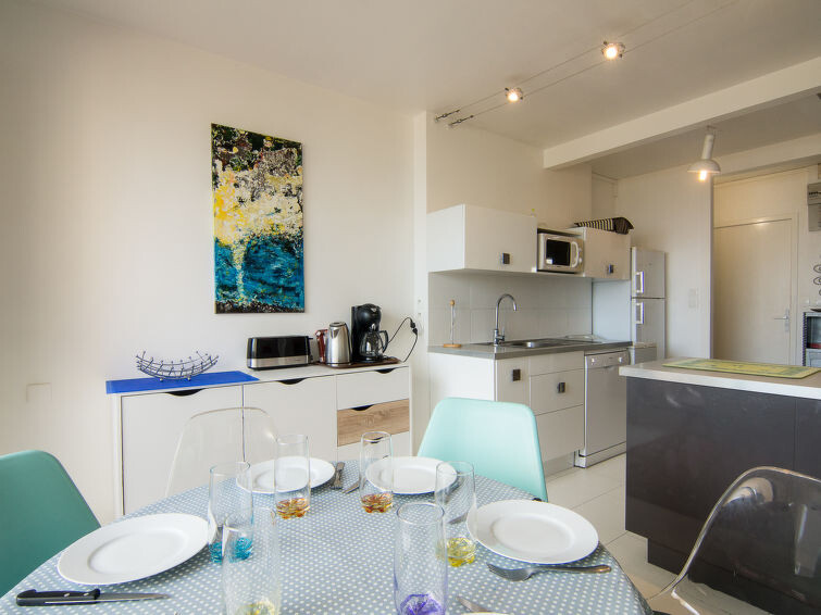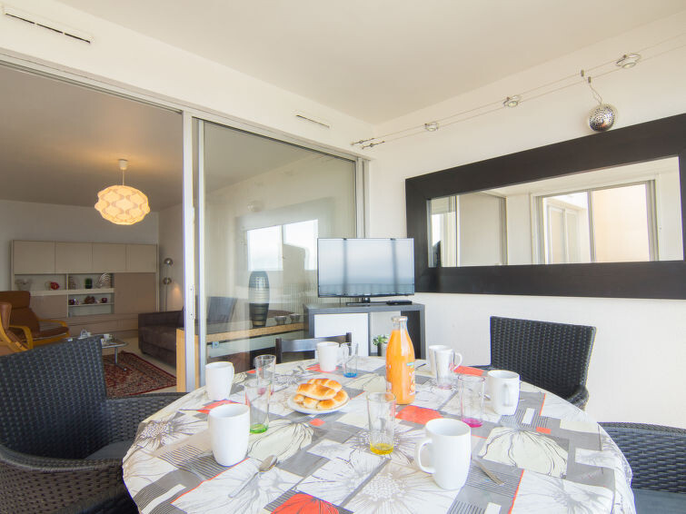 Residentie "De La Plage", van 4 verdiepingen. In de wijk Le Môle, 50 m van zee, 50 m van het strand, directe toegang tot het strand. In het complex: lift. Winkel, restaurant, bar 100 m, bushalte "La Clape" 500 m. Golfterrein (27 holes) 2.5 km, tennis 2 km. De afgebeelde foto is slechts een voorbeeld. Vergelijkbare accommodaties kunnen worden geboekt.