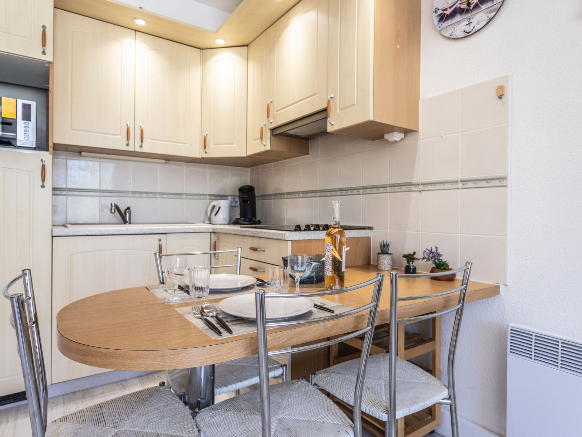 Studio 1-kamer 22 m2, op de begane grond, op het zuiden gelegen. Het objekt is geschikt voor 2 volwassenen. Woon-/eetkamer met 1 2-pers kastbed (140 cm, lengte 190 cm), TV (Flatscreen TV). Uitgang naar het terras. Kookhoek (4 keramische glas kookplaten, broodrooster, waterkoker, elektrische koffiemachine, combimagnetron). Douche/WC. Air-conditioning. Groot terras 15 m2. Terrasmeubelen. Ter beschikking: Internet (WiFi, extra). Rookmelders. Aanbod door een particulier volgens art. 155, IV van CGI.