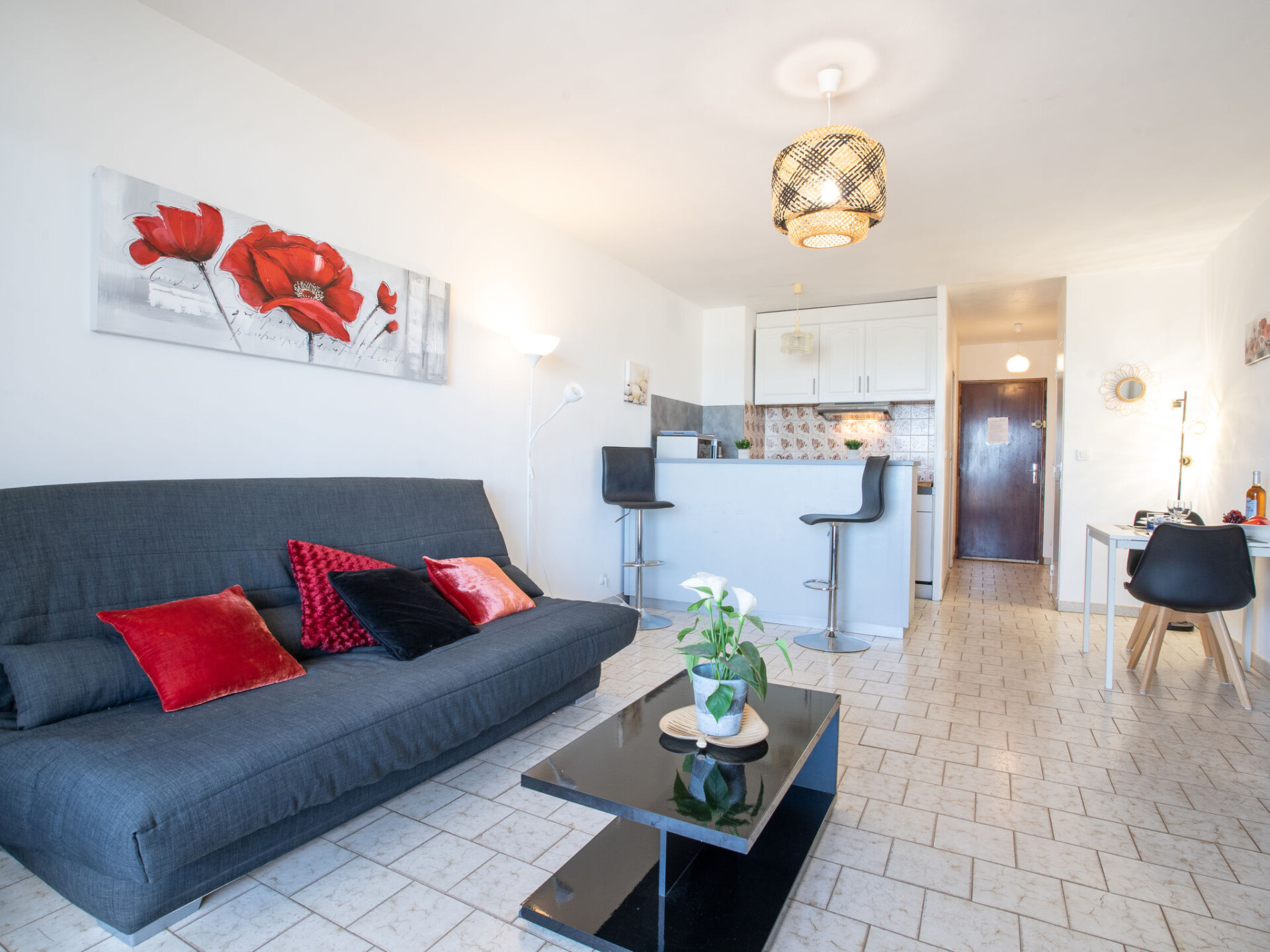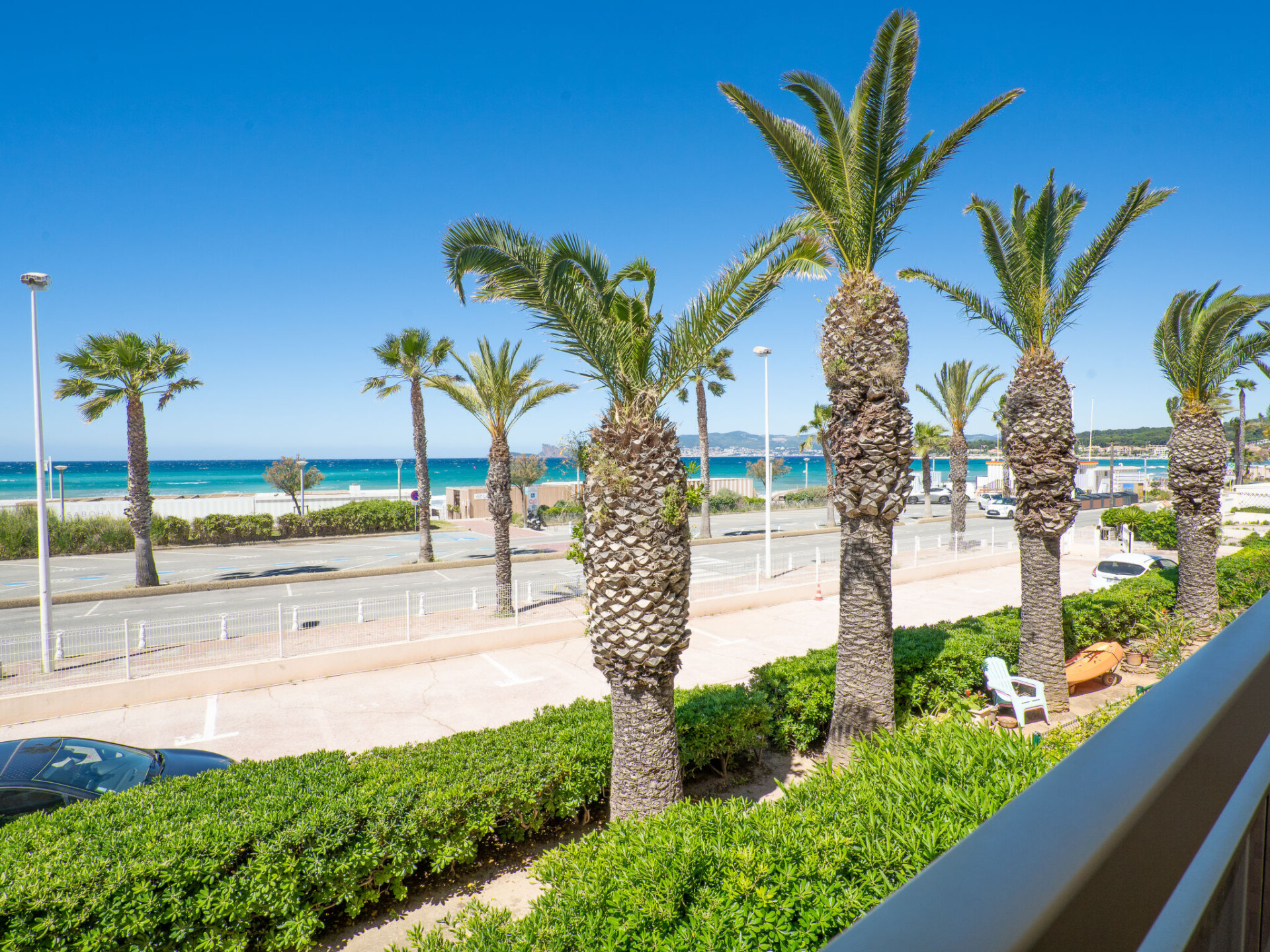 Appartement 1-kamer 30 m2 op de 1e verdieping. Licht, comfortabel en mooi ingericht: woon-/eetkamer met 1 2-pers divanbed (140 cm, lengte 200 cm), TV (Flatscreen TV). Uitgang naar het terras. Open keuken (2-pits kookplaat, waterkoker, elektrische koffiemachine, combimagnetron). Bad/WC. Elektrische verwarming. Terras 7 m2, overdekt, op het zuidwesten gelegen. Terrasmeubelen. Zeer mooi uitzicht op zee. Ter beschikking: strijkijzer. Internet (Internet (WiFi), extra). Parkeerplaats nr. 28. TV alleen FR. Rookmelders. 83112000047ET