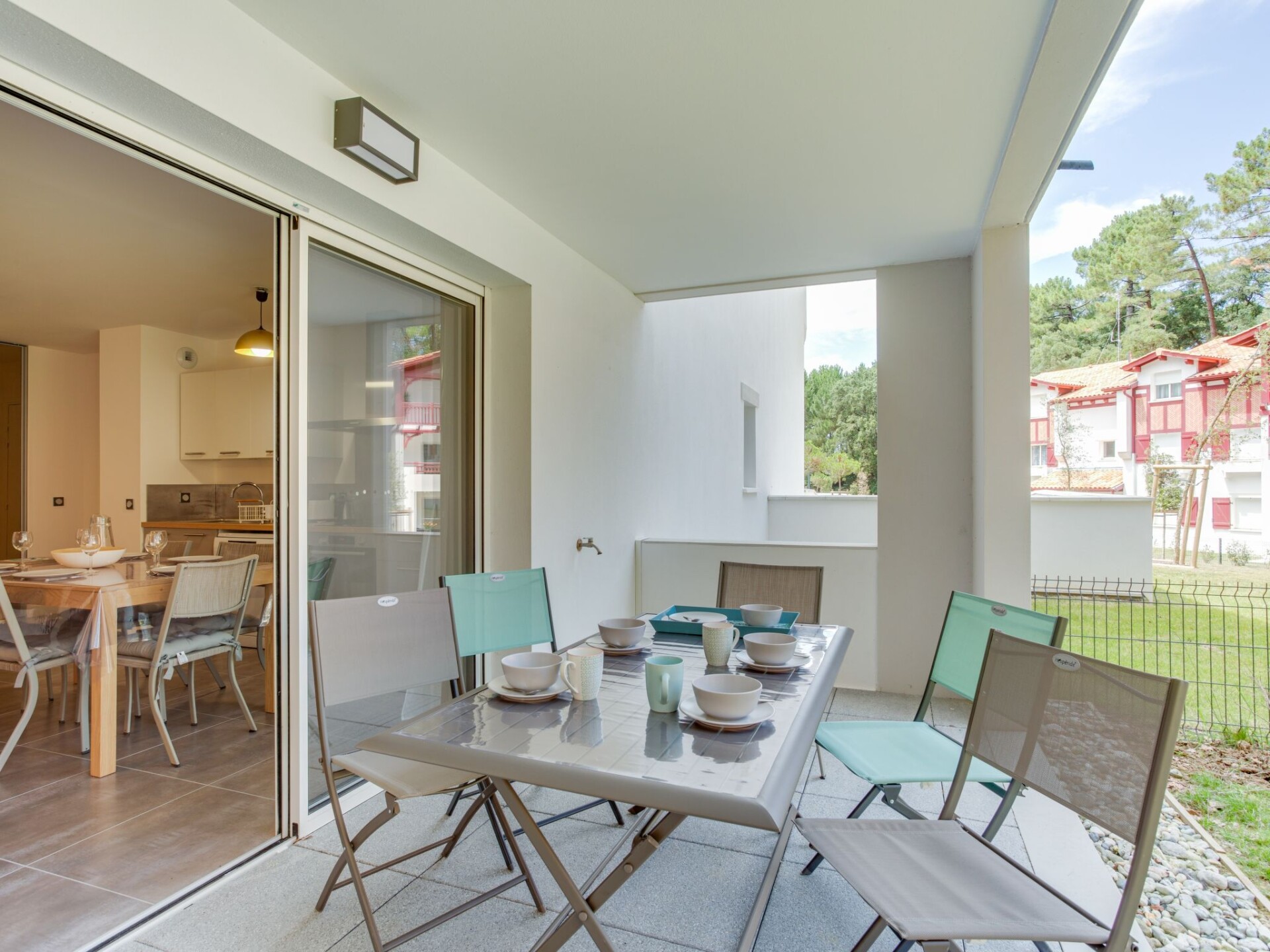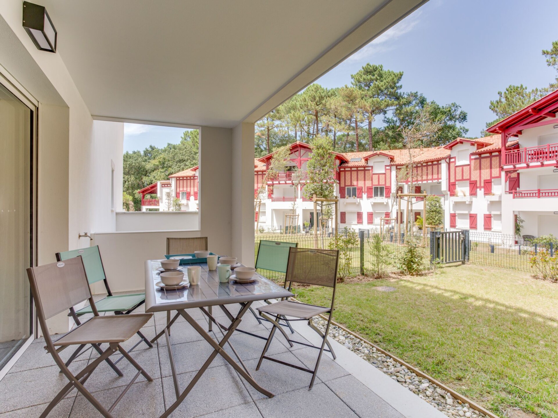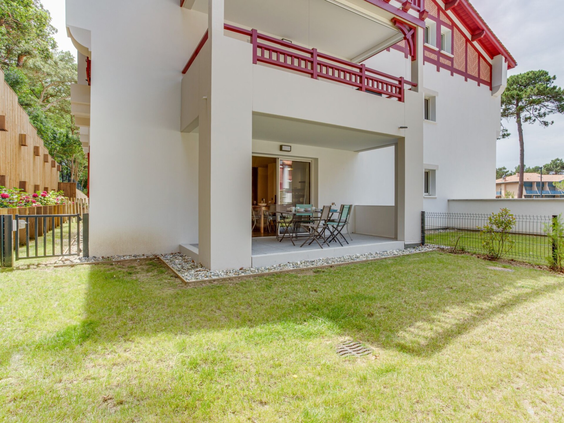 Residentie "Domaine Aïga", van 2 verdiepingen, bouwjaar 2020, omgeven door bomen. 2 km van het centrum van Hossegor, rustige ligging in een woonwijk, 1.5 km van zee, 50 m van het meer, 1.5 km van het strand. Winkel 2 km, levensmiddelenwinkel 2 km, supermarkt 2 km, restaurant 1 km, bushalte "Seignosse- océan fond du lac" 300 m, zandstrand "Les Estagnots" 1.5 km. Golfterrein (18 holes) 4 km. Bekende meren kunnen gemakkelijk worden bereikt: lac d'Hossegor 50 m. Groepen jongeren uitsluitend op aanvraag.