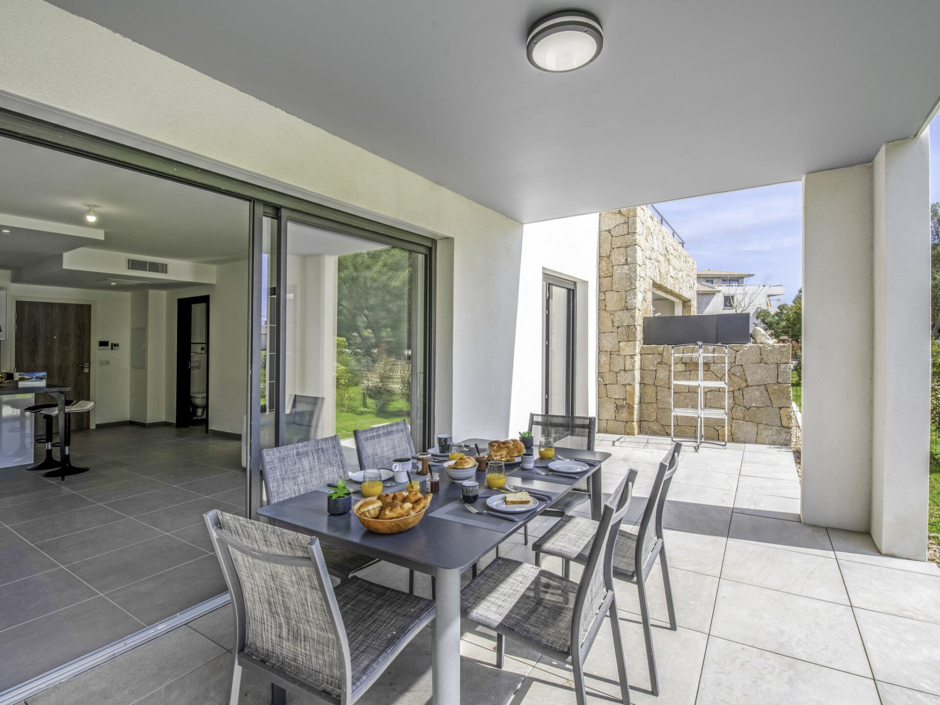 Mooi residentie "Domaine d'Arca". Aan de rand van de plaats, 2 km van het centrum van Porto Vecchio, 4 km van zee, 8 km van het strand. Voor medegebruik: park 4 ha (omheind), openluchtzwembad (seizoensgebonden beschikbaarheid: 01.Jun. - 01.Nov. openingstijden zwembad: 10:00-20:00) met trap. Onregelmatig zwembad. Buitendouche, poolhouse met WC, tennisbaan (2 x hard court), jeu de boules, onderhoud zwembad door de eigenaar/tuinman. Winkel 2 km, levensmiddelenwinkel 1 km, supermarkt 2 km, restaurant, bakkerij 500 m, bushalte 2 km, zandstrand "Santa Giulia" 8 km. Jachthaven 3 km, golfterrein (9 holes) 7 km, manege 3 km. Attracties in de buurt: Figari 18 km, Bonifacio 28 km, Solenzara 40 km, Iles Lavezzi. Wandelgebied, Aiguilles de Bavella, Réserve naturelle de Bonifacio. Auto noodzakelijk. Geschikt voor families. Vliegveld in de buurt 25 km van het huis.