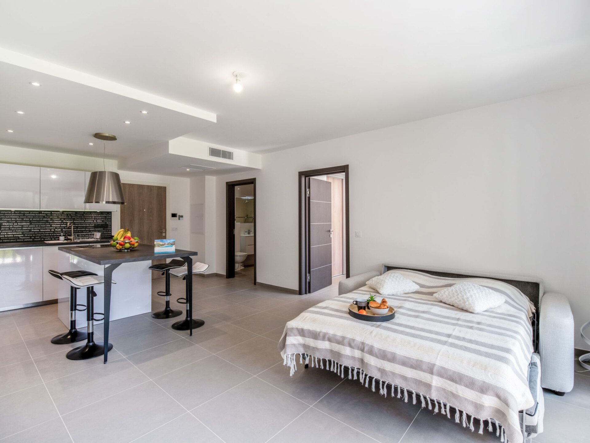 Appartement 2-kamers 55 m2, op de begane grond. Zeer mooi en modern ingericht: woon-/eetkamer met 1 2-pers divanbed (1 x 140 cm, lengte 200 cm), TV (Flatscreen TV). Uitgang naar het terras. 1 kamer met 2 bedden (90 cm, lengte 190 cm). Open keuken (oven, afwasmachine, 3 inductiekookplaten, broodrooster, waterkoker, magnetron, diepvriezer, elektrische koffiemachine). Uitgang naar het terras. Douche/WC. Elektrische verwarming, air-conditioning. Terras 20 m2, tuin 50 m2. Terrasmeubelen. Ter beschikking: wasmachine. Internet (WiFi, gratis). Parkeerplaats nr. 701 bij het huis. Geschikt voor families. Niet rokers woning. Rookmelders. 2A247000512A2
