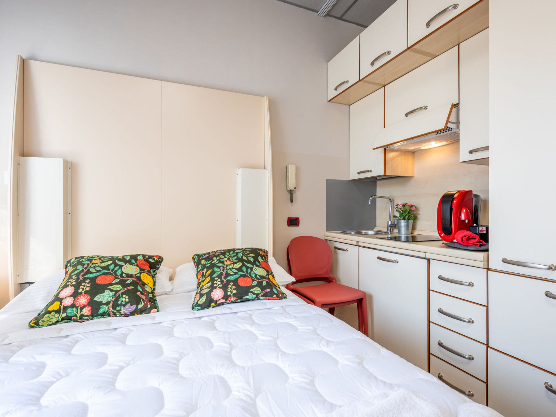 "App.1", appartement 1-kamer 35 m2 op de 3e verdieping. Mooi en modern ingericht: woon-/slaapkamer met 1 kastbed en 1 2-pers kastbed (160 cm, lengte 190 cm), TV. Uitgang naar het balkon. Kookhoek (2 inductiekookplaten, waterkoker, magnetron, elektrische koffiemachine). Uitgang naar het balkon. Douche/WC. Verwarming, air-conditioning. Verwarming alleen beschikbaar van 01.10. tot 15.04. Natuurstenen vloeren. Klein balkon. Balkonmeubilair. Mooi uitzicht op de stad. Ter beschikking: haardroger. Internet (WiFi, gratis). Niet rokers woning. Rookmelders, brandblusser. IT004003C2M9HQCG8U