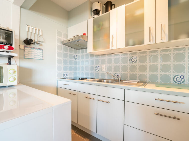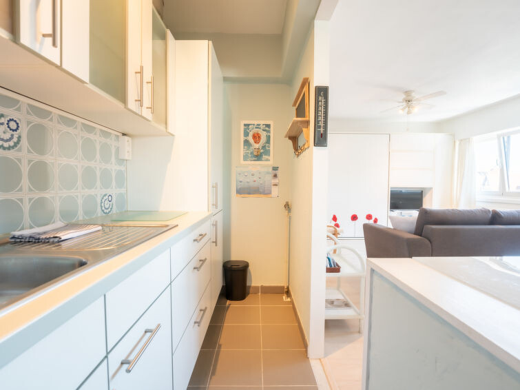 "Douceur de vivre nearby beach", studio 1-kamer 45 m2 op de 4e verdieping. Het objekt is geschikt voor 2 volwassenen + 1 kinderen. Doelmatig en gezellig ingericht: hal met aparte WC. Woon-/slaapkamer met 1 divanbed en 1 2-pers opklapbed (1 x 160 cm, lengte 200 cm), Digitale TV, internationale TV-zenders en Flatscreen TV. Open keuken (oven, 4 keramische glas kookplaten, broodrooster, waterkoker, magnetron, elektrische koffiemachine). Badkamer. Verwarming. Ter beschikking: wasmachine, haardroger. Internet (WiFi, gratis). Geschikt voor families. Rookvrij huis. Maximaal 1 huisdier/hond toegestaan. Rookmelders, brandblusser.
