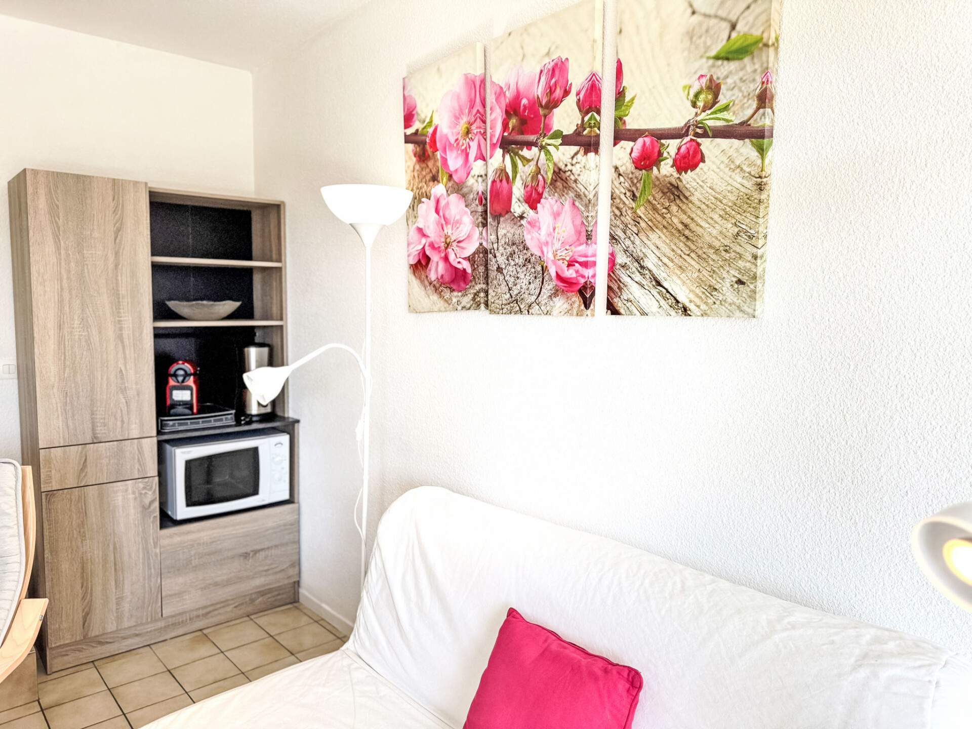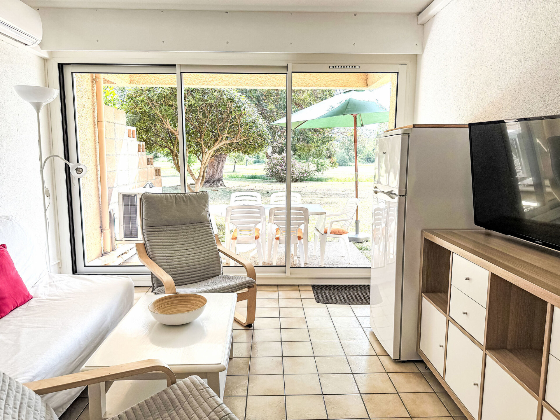 Appartement 2-kamers 35 m2, op de begane grond. Hal met 1 bed (70 cm, lengte 180 cm). Woon-/eetkamer met 1 2-pers divanbed (140 cm, lengte 190 cm), TV (Flatscreen TV), air-conditioning. Uitgang naar het terras. 1 kamer met 2 bedden (80 cm, lengte 190 cm), air-conditioning. Kookhoek (mini-oven, oven, afwasmachine, 3 keramische glas kookplaten, broodrooster, waterkoker, magnetron, diepvriezer, elektrische koffiemachine, pads voor de koffiemachine (Nespresso) extra). Badkamer, aparte WC. Elektrische verwarming. Terras 8 m2, op het oosten gelegen. Terrasmeubelen. Uitzicht op Golfbaan. Ter beschikking: Internet (WiFi, extra). Niet rokers woning. Rookmelders. Aanbod door een particulier volgens art. 155, IV van CGI.