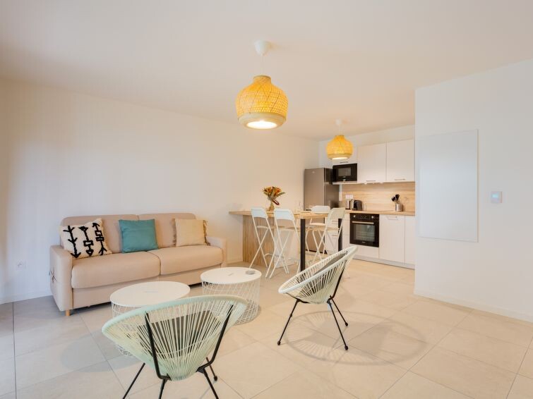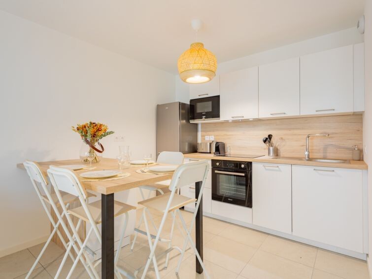 Appartement 2-kamers 50 m2, op de begane grond. Het objekt is geschikt voor 2 volwassenen + 2 kinderen. Comfortabel en mooi ingericht: woon-/eetkamer 20 m2 met 1 divanbed (160 cm, lengte 190 cm). Uitgang naar de tuin, naar het terras. 1 kamer 12 m2 met 1 2-pers bed (140 cm, lengte 190 cm). Open keuken (oven, afwasmachine, 4 keramische glas kookplaten, broodrooster, waterkoker, magnetron, elektrische koffiemachine). Douche/WC. Gas-verwarming. Terras 10 m2, overdekt, op het westen gelegen, tuin 25 m2. Terrasmeubelen. Ter beschikking: wasmachine, strijkijzer, haardroger. Internet (Internet (WiFi)). Parkeerplaats nr. 5. Geschikt voor families. Niet rokers woning. Rookmelders. 40296000454XX
