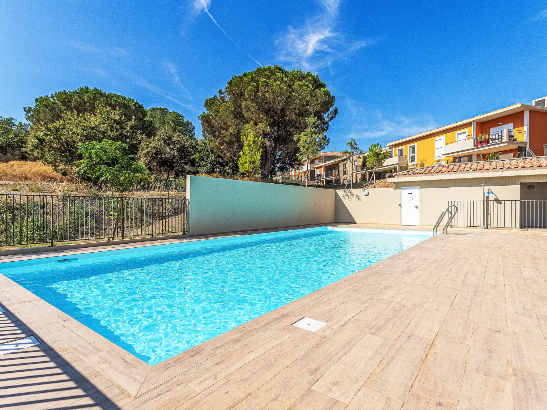 Residentie "Eden Golfe", van 3 verdiepingen, bouwjaar 2023. In de plaats, 1 km van het centrum van Cogolin, 6.5 km van zee, 6.5 km van het strand. Voor medegebruik: openluchtzwembad (4 x 15 m, 80 - 220 cm diepte, seizoensgebonden beschikbaarheid: 01.Mei. - 30.Sep. openingstijden zwembad: 10:00-20:00). In het huis: lift. Winkel, supermarkt, restaurant 850 m, bakkerij 650 m, bushalte "Rond point de Kock" 850 m, zandstrand "Les Marines de Cogolin" 6.5 km. Jachthaven 6.5 km, zeilschool 6.5 km. Attracties in de buurt: Parc d'attractions Azur Park 6 km, Saint Tropez 11 km, Port Grimaud 5.5 km, Sainte Maxime 15 km, Nice 110 km. Bekende meren kunnen gemakkelijk worden bereikt: Le Lac de Sainte Croix 95 km. Wandelgebied Massif de l'Esterel 50 km. Auto noodzakelijk. De sleuteloverdracht vindt plaats bij het agentschap Interhome in Gassin, 6 km.