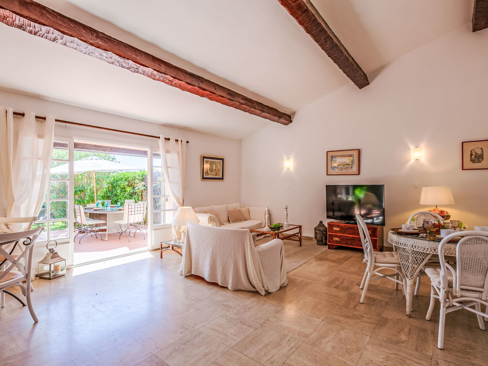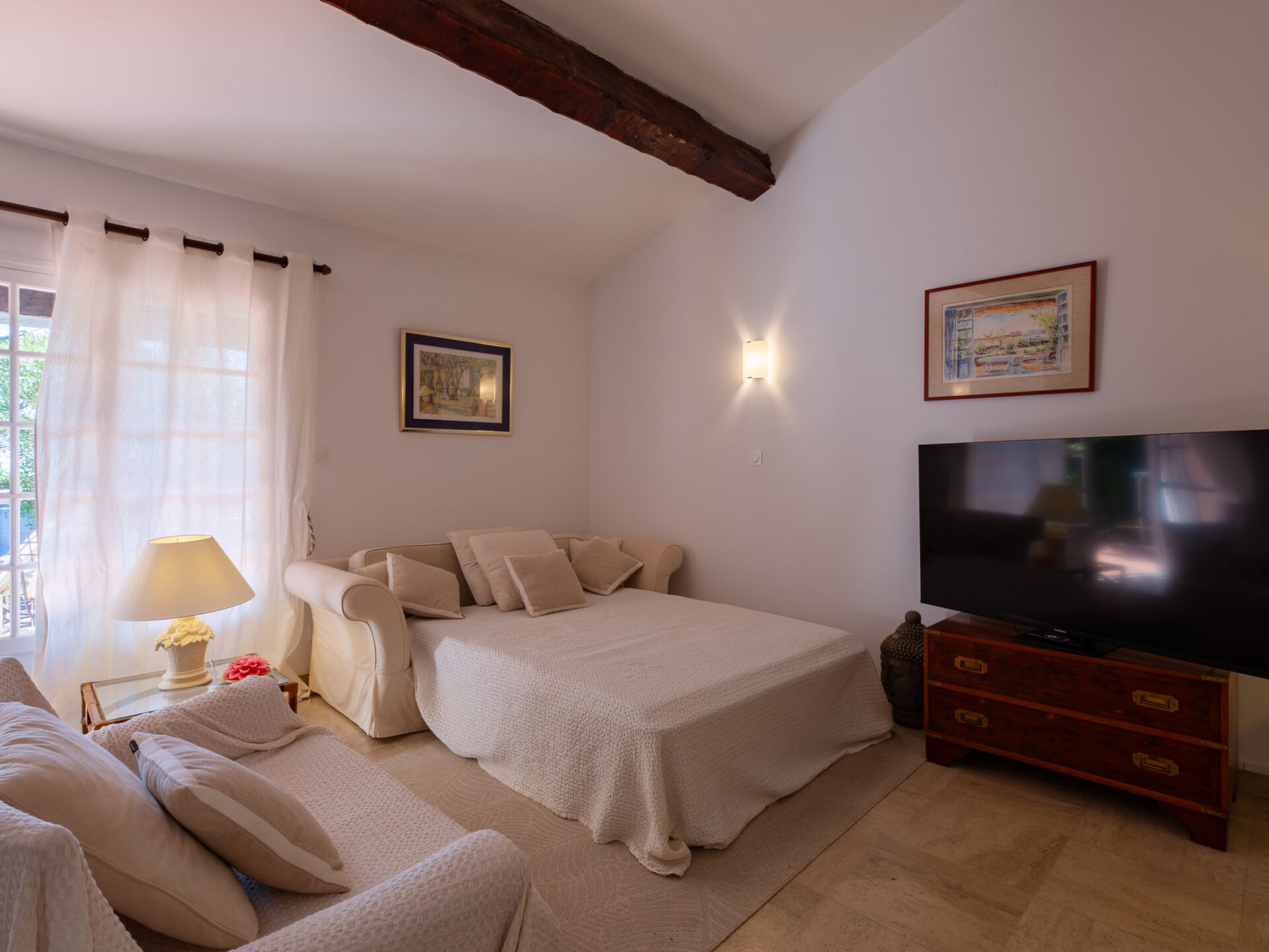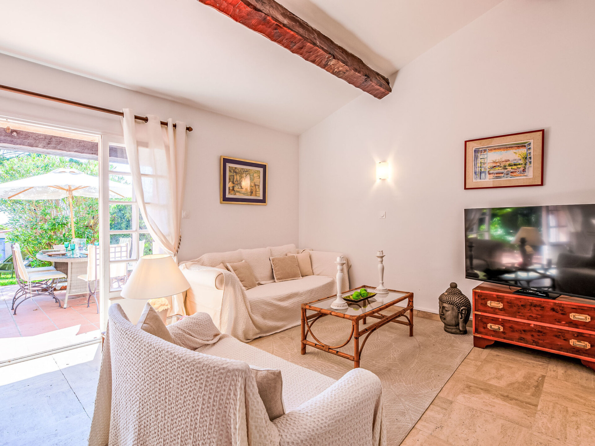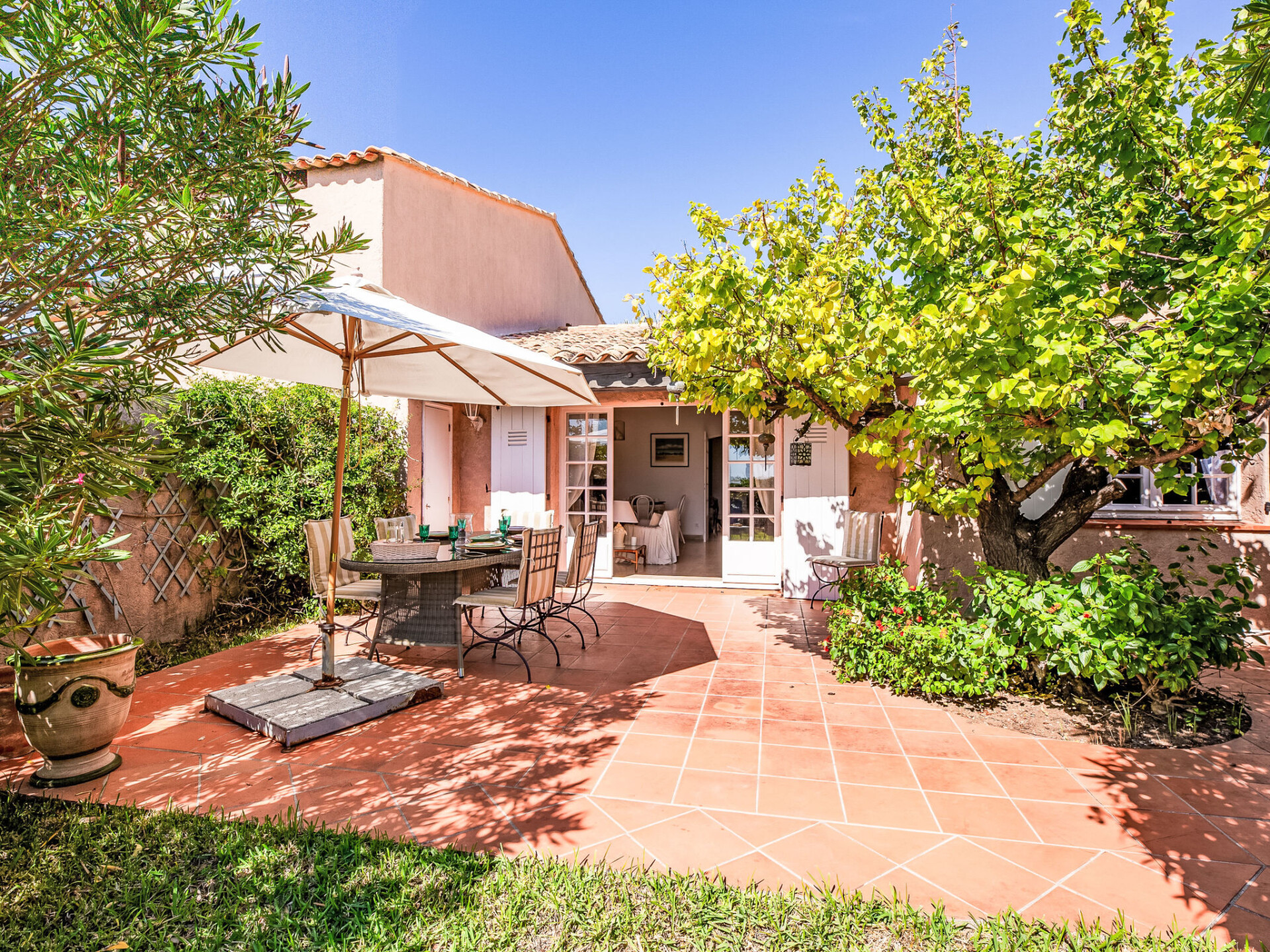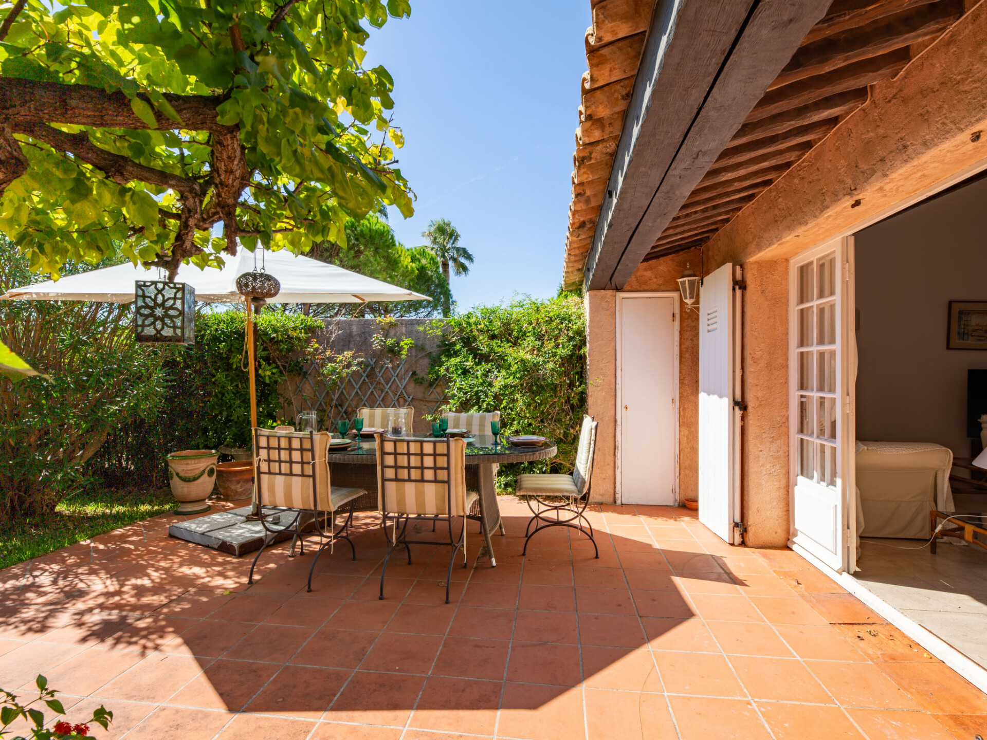 Residentie "El Cantarello". 51 appartementen in de woning. In de wijk La Madrague, aan de rand van de plaats, 1 km van het centrum, zonnige ligging in een woonwijk, 100 m van zee, 100 m van het strand, directe toegang tot het strand, op het zuiden. Voor medegebruik: verzorgde tuin (omheind) planten en bomen, openluchtzwembad hoekig (20 x 5 m, 90 - 235 cm diepte, seizoensgebonden beschikbaarheid: 15.Mei. - 30.Sep.). Openbare parkeerplaatsen 100 m. Supermarkt 1.1 km, restaurant 1 km, centrum te voet bereikbaar in 15 minuten, bushalte "Massilia" 600 m, treinstation "TGV Saint-Raphael" 20 km, zandstrand "La Madrague" 100 m, thermaalbad "Thalasso Spa Les Issambres" 5 km. Jachthaven 1 km, golfterrein (18 holes) 4.5 km, tennis 200 m. Attracties in de buurt: Aqualand Waterpark 4 km, Navette / shuttle boat St-Tropez 15min 1 km, Saint-Tropez, Ramatuelle 16 km, Port-Grimaud Cité Lacustre 10 km, Les Gorges du Verdon 75 km. Wandelgebied Massif des Maures 10 km, Massif de l'Esterel 20 km. Geen lift. Bewaakt vakantiecomplex. Gesloten residentie met een elektrische deur. De sleuteloverdracht vindt plaats bij het agentschap Interhome in Sainte-Maxime, 1 km. Hoofdstraat in de buurt. De omgeving is gevoelig voor geluidsoverlast. Gelieve geen lawaai te maken en de rust te bewaren.