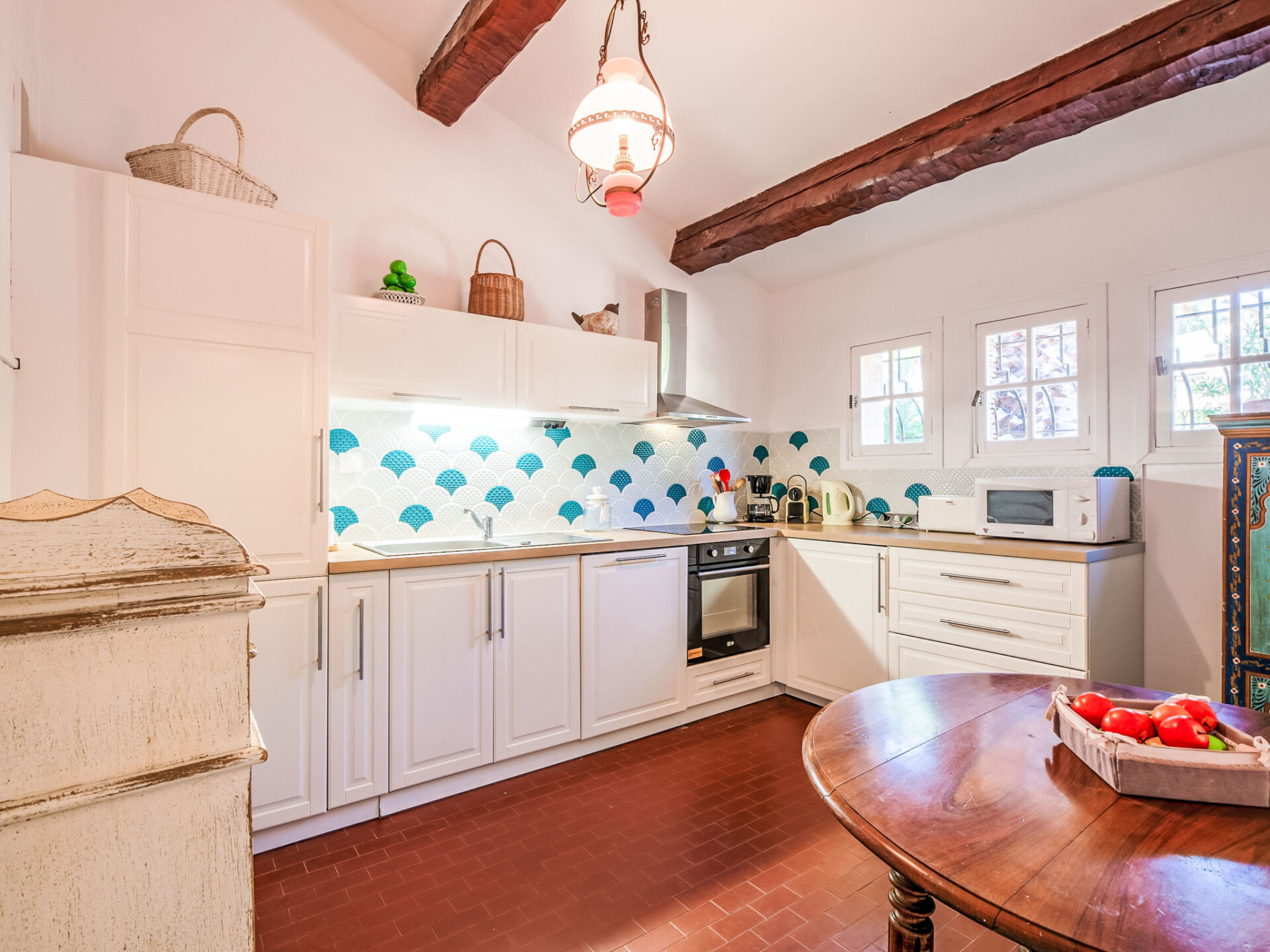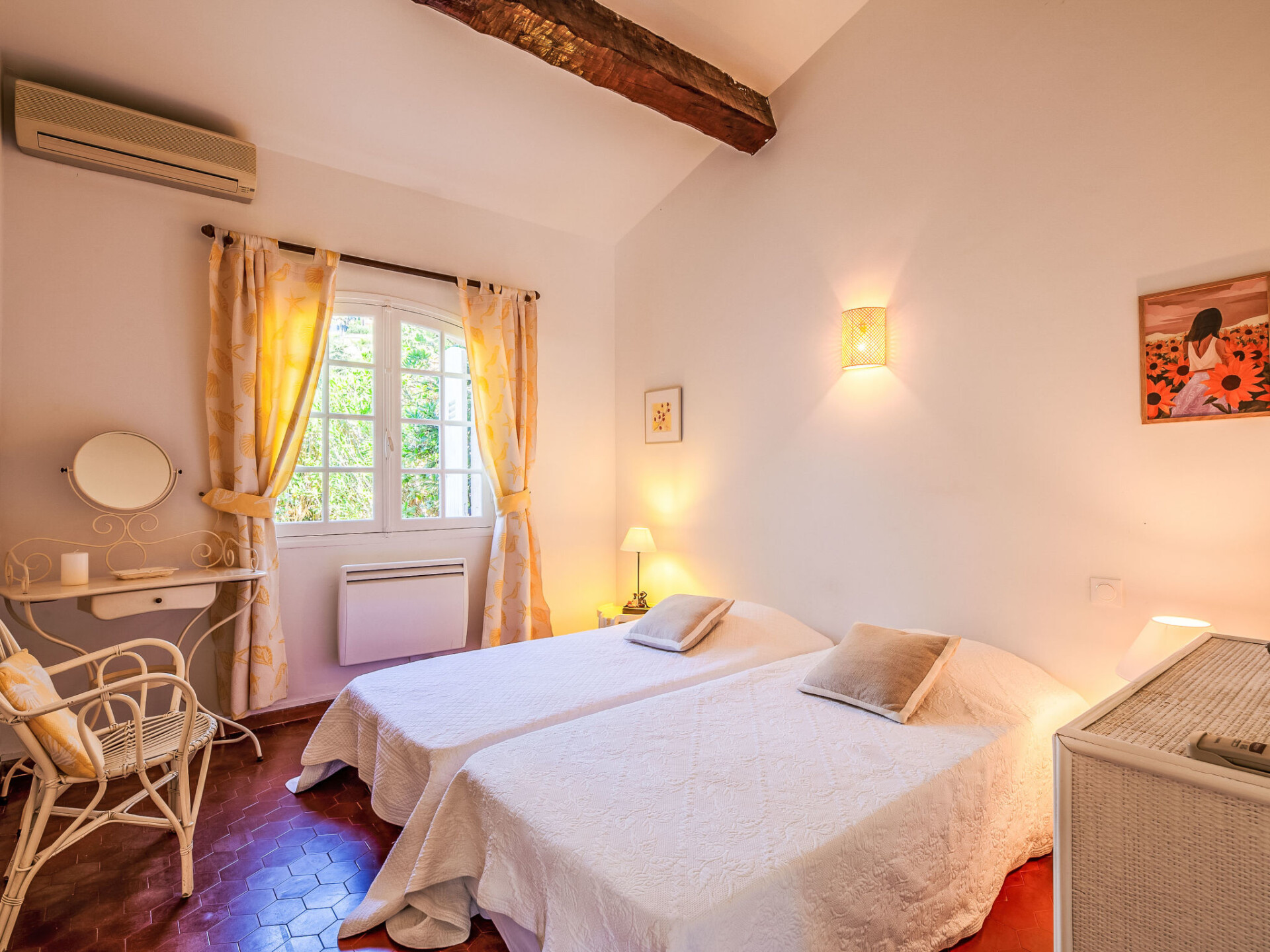 Huis in een rij 3-kamers 92 m2, op de begane grond, op het zuiden gelegen. Mooi ingericht: hal met aparte WC. Woon-/eetkamer met 1 divanbed (130 cm, lengte 190 cm), open haard (alleen decoratie), TV (Flatscreen TV). Uitgang naar de tuin, naar het terras. 1 kamer, op het noorden met 2 bedden (90 cm, lengte 190 cm), air-conditioning. 1 kamer, op het zuiden met 1 2-pers bed (1 x 160 cm, lengte 200 cm), air-conditioning. Keuken (oven, afwasmachine, 4 keramische glas kookplaten, broodrooster, waterkoker, magnetron, diepvriezer, elektrische koffiemachine). Douche. Elektrische verwarming. Terras 16 m2 gedeeltelijk overdekt, op het zuiden gelegen, tuin 100 m2. Terrasmeubelen. Uitzicht op zee en de tuin. Ter beschikking: wasmachine, strijkijzer, haardroger. Internet (WiFi, gratis). Parkeerplaats nr. 50. Rookvrij huis. Rookmelders. Aanbod door een particulier volgens art. 155, IV van CGI. 831155005555WF