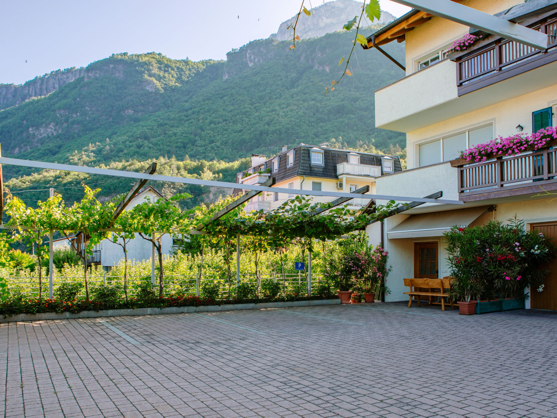 Kleine residentie "Rosengartenhof", 283 m boven zeeniveau, omgeven door bomen en wijngaarden. 5 appartementen in de woning. 600 m van het centrum van Andrian/Andriano, 10 km van het centrum van Bozen/Bolzano, verhoogde ligging tegen een helling, in een woonwijk, op het zuidoosten. Voor medegebruik: terrein (omheind), verzorgde tuin met gazon, boomgaard, ligweide, openluchtzwembad (verhoogd) (2 x 4 m, 100 cm diepte, seizoensgebonden beschikbaarheid: 01.Jun. - 31.Aug.). Buitendouche, prieel, tuinmeubelen, barbecue, kinderspeelplaats (glijbaan, schommel). In het complex: tafelvoetbal, wasmachine (voor medegebruik, extra). Drankjesservice en ontbijt op verzoek (extra). Parkeerplaats (voor 9 auto's) bij het huis op het terrein, gemeenschappelijke garage. Winkel 600 m, restaurant, bushalte "202 Andrian-Terlan-Nals" 600 m, treinstation "Terlan (Linea Bolzano-Merano)" 2.5 km, openluchtzwembad 1.2 km, thermaalbad "Meran/Merano" 17 km. Golfterrein (9 holes) 4 km, fietspad 1 km. Attracties in de buurt: Meran/Merano 17 km, Trient/Trento 65 km, Mountainbike 500 m. Bekende skigebieden kunnen gemakkelijk worden bereikt: Meran 2000 23 km, Seis/Siusi (Grödner Tal / Val Gardena) 37 km, Obereggen/S.Floriano (Skicenter Latemar) 36 km. Bekende meren kunnen gemakkelijk worden bereikt: Kaltern/Caldaro 21 km, Montiggl/Monticolo 17 km. Wandelgebied Andrian/Andriano 250 m. Lokale verkoop van streekproducten. De eigenaar woont in hetzelfde huis.