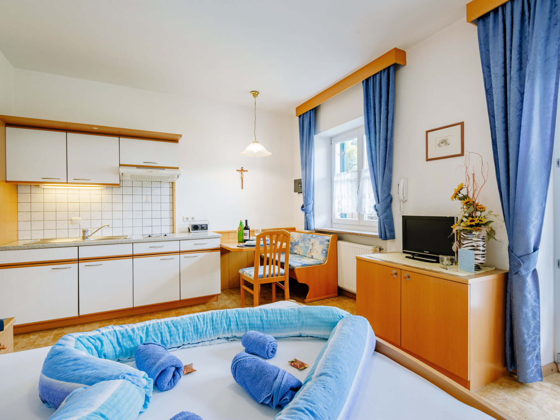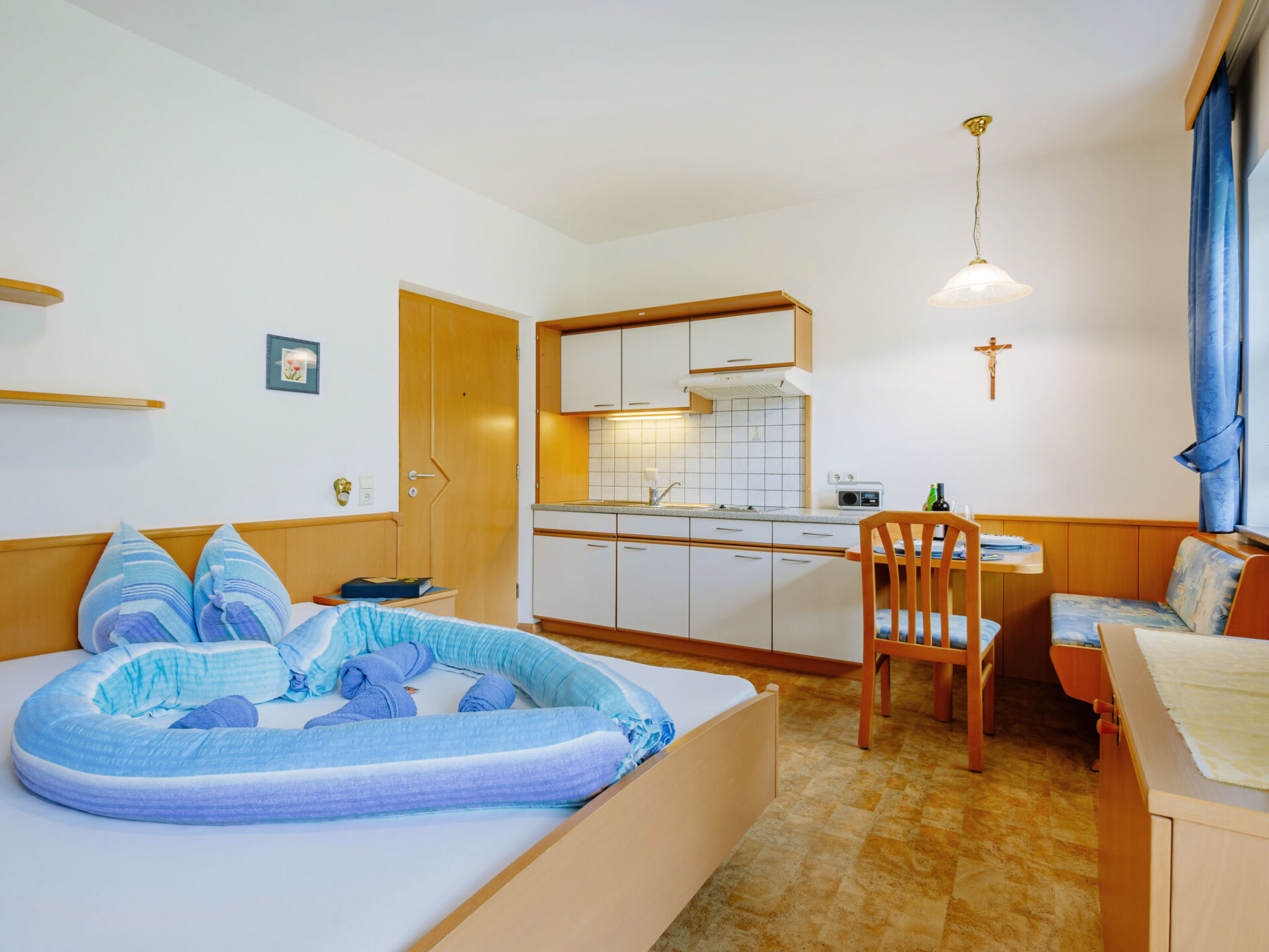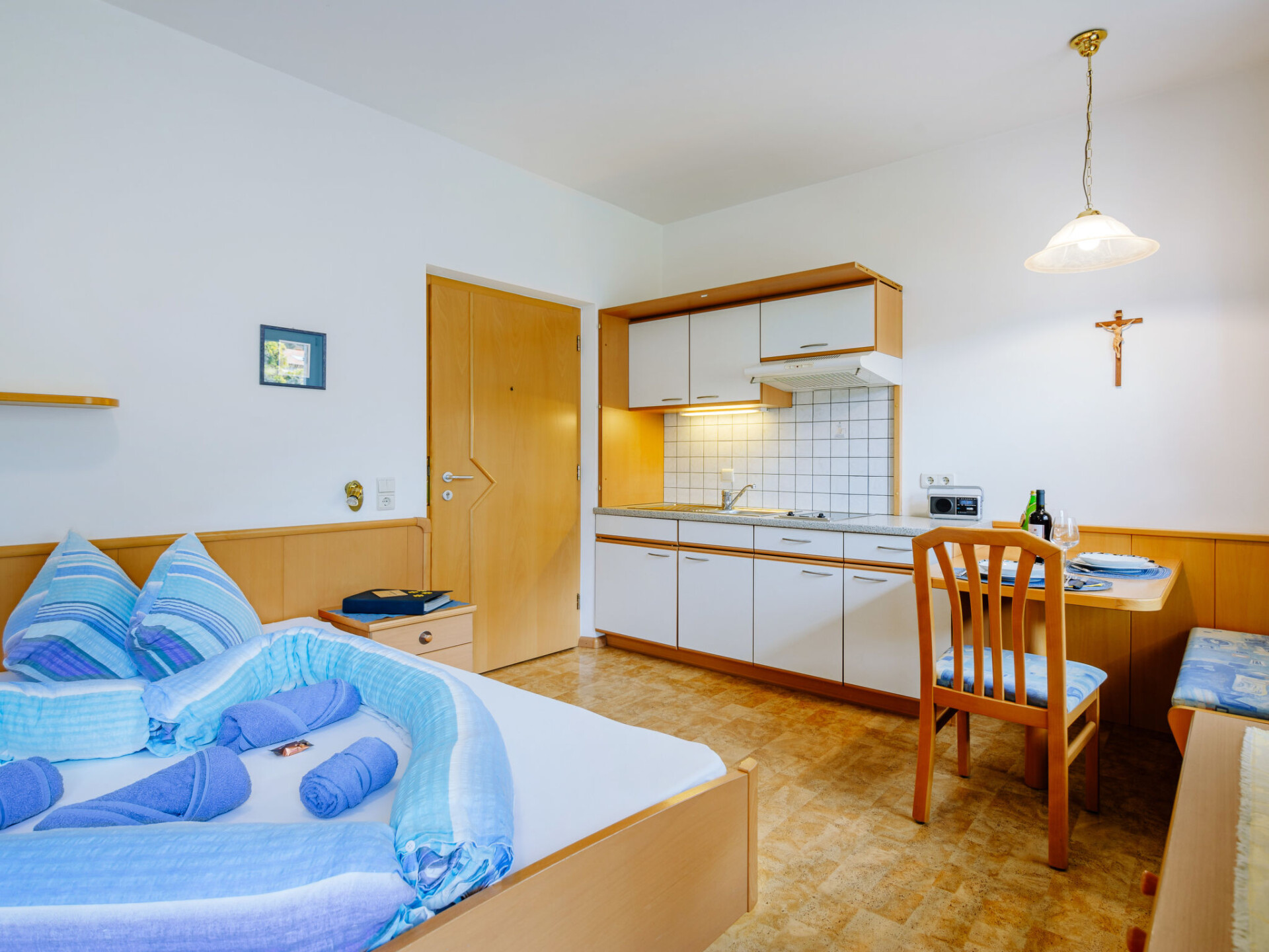 "Festenstein", appartement 1-kamer 22 m2 op de 2e verdieping, op het westen gelegen. Licht, doelmatig en gezellig ingericht: woon-/slaapkamer met 1 2-pers bed, eettafel, douche/WC en Sat-TV. Uitgang naar het balkon. Kookhoek (2 keramische glas kookplaten, broodrooster, waterkoker, diepvriezer, elektrische koffiemachine). Gas-verwarming. Balkon. Balkonmeubilair. Ter beschikking: kluis. Internet (Internet (WiFi), gratis). Niet rokers woning. Er hoeven geen verplichte extra kosten ter plaatse te worden betaald, behalve de lokale belasting. Bedlinnen, eindschoonmaak en alle energiekosten zijn inclusief. IT021002B5V7TF92FR