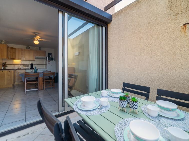 Residentie "Front de Mer", van 3 verdiepingen. In de wijk Grande Plage, drukke ligging, 100 m van zee, 100 m van het strand. In het complex: parkeerplaats. Winkel, levensmiddelenwinkel 50 m, supermarkt 6 km, restaurant, bar, bakkerij, café 50 m, bushalte "Les Marines" 300 m, treinstation "Perpignan" 24 km, zandstrand 50 m. Surfschool 2 km, zeilschool 3 km, tennis 3 km, tennishal 3 km, midgetgolf 2.5 km, manege 12 km. Attracties in de buurt: Aqualand Port Leucate 7 km, Réserve Africaine de Sigean 41 km, cinéma 1.2 km, téléski nautique 5 km, parcours aventure 5 km, Spot de windsurf 4 km. Bekende meren kunnen gemakkelijk worden bereikt: Etang de Leucate ou salses 3 km, Lac de Villeneuve de la Raho 34 km. Wandelgebied Sentier du guetteur 8 km, la forteresse de salses 15 km, Sentier du littoral Collioure 40 km. Geen lift. Animatie in het hoogseizoen. De afgebeelde foto is slechts een voorbeeld. Vergelijkbare accommodaties kunnen worden geboekt.