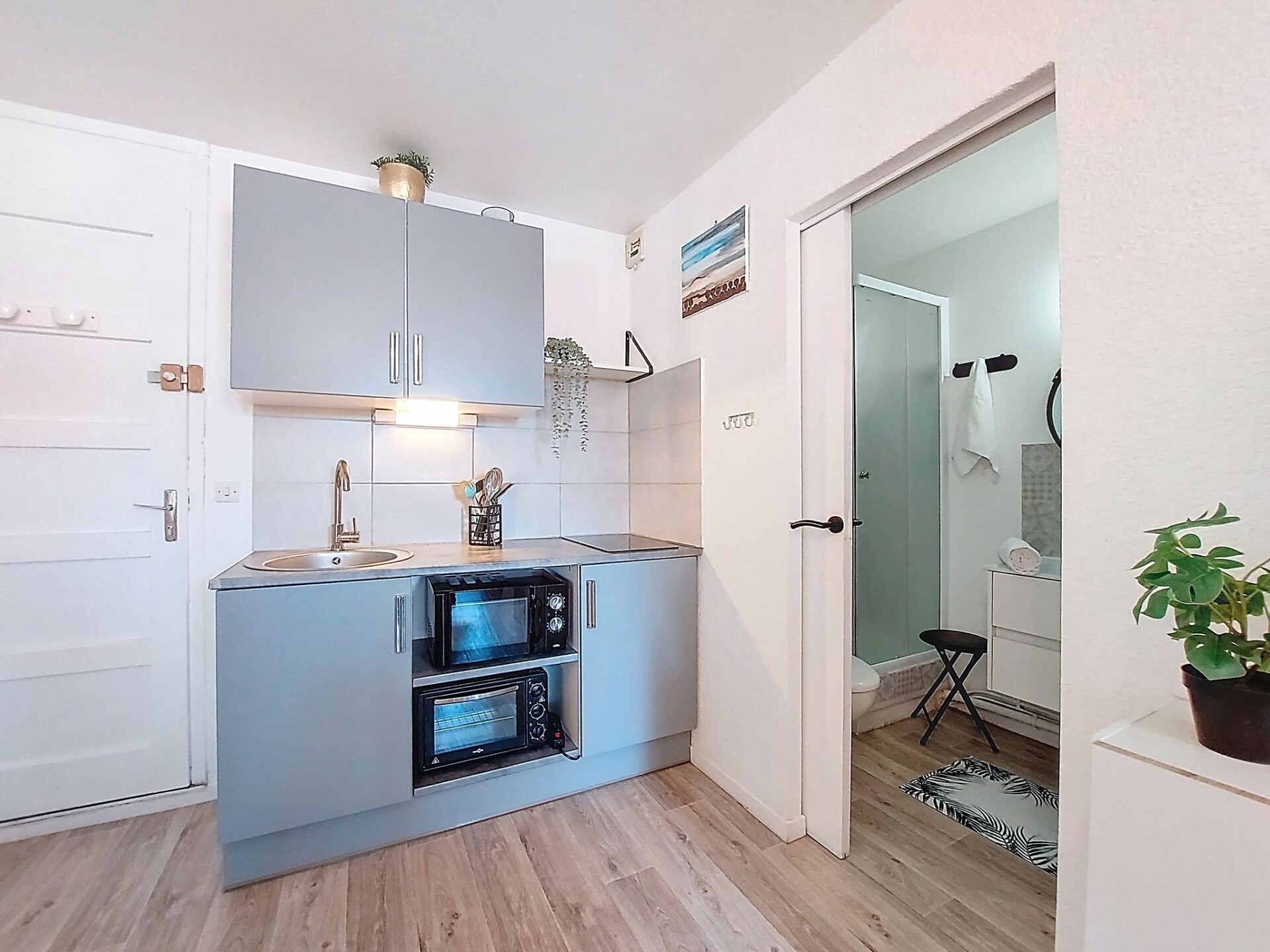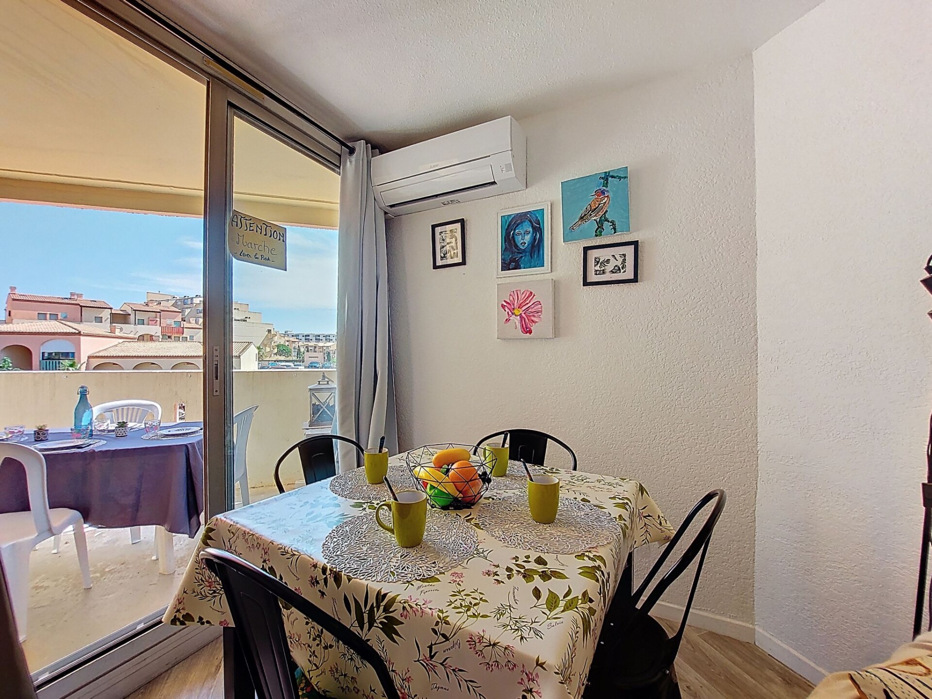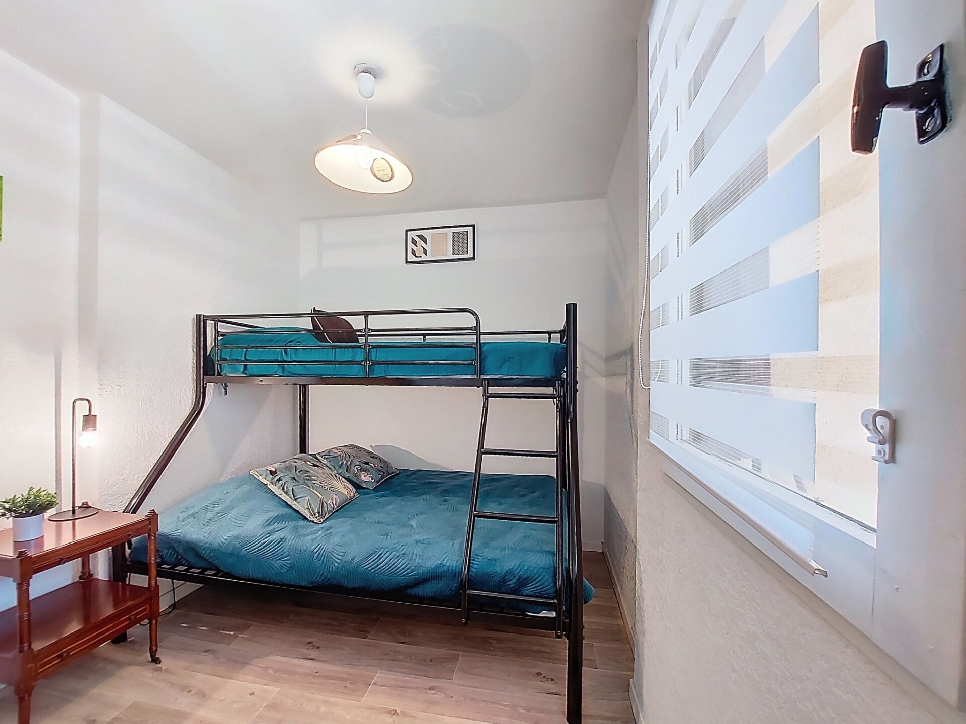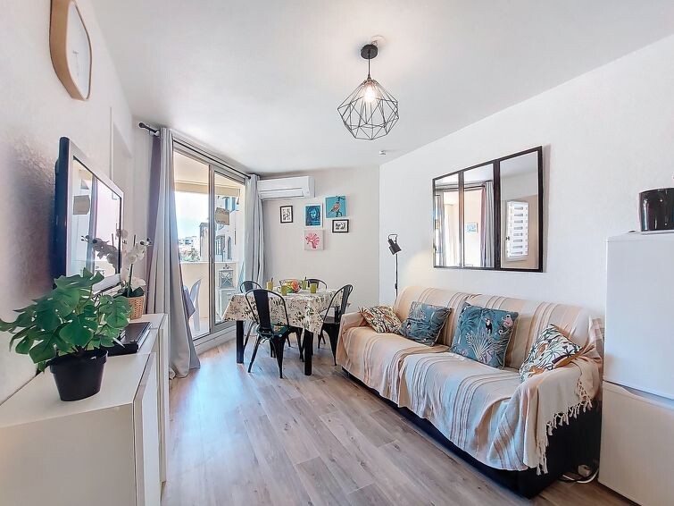 Appartement 2-kamers 27 m2 op de 1e verdieping. Eetkamer met 1 divanbed (140 cm, lengte 190 cm), TV (Flatscreen TV). Uitgang naar het terras. 1 kamer met 1 2-pers bed (1 x 140 cm, lengte 190 cm). Kookhoek (mini-oven, 2 keramische glas kookplaten, broodrooster, waterkoker, magnetron, elektrische koffiemachine). Douche/WC. Air-conditioning. Terras 5 m2. Terrasmeubelen. Zijdelings uitzicht op zee. Ter beschikking: Internet (WiFi, extra). Parkeerplaats. Rookmelders. Aanbod door een particulier volgens art. 155, IV van CGI.