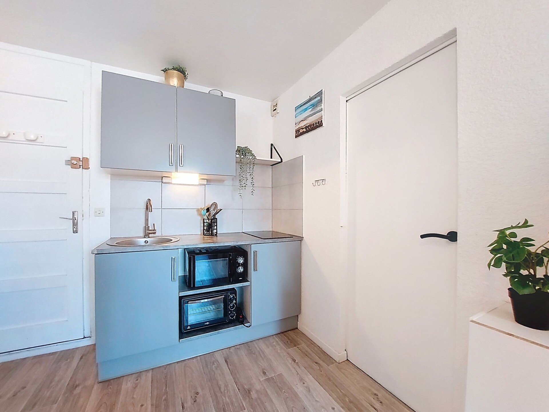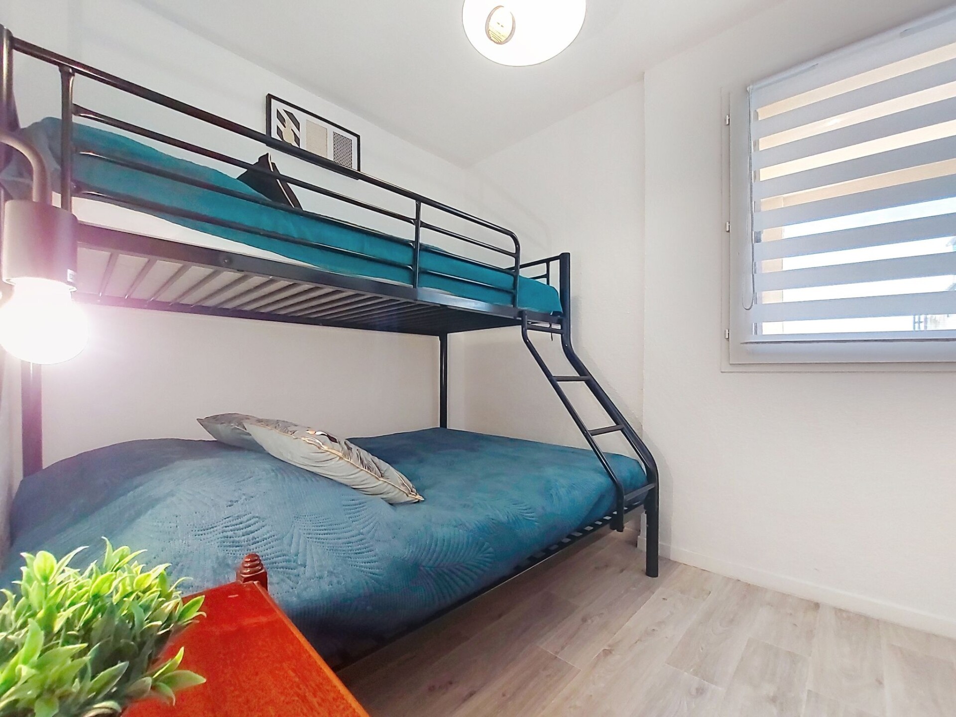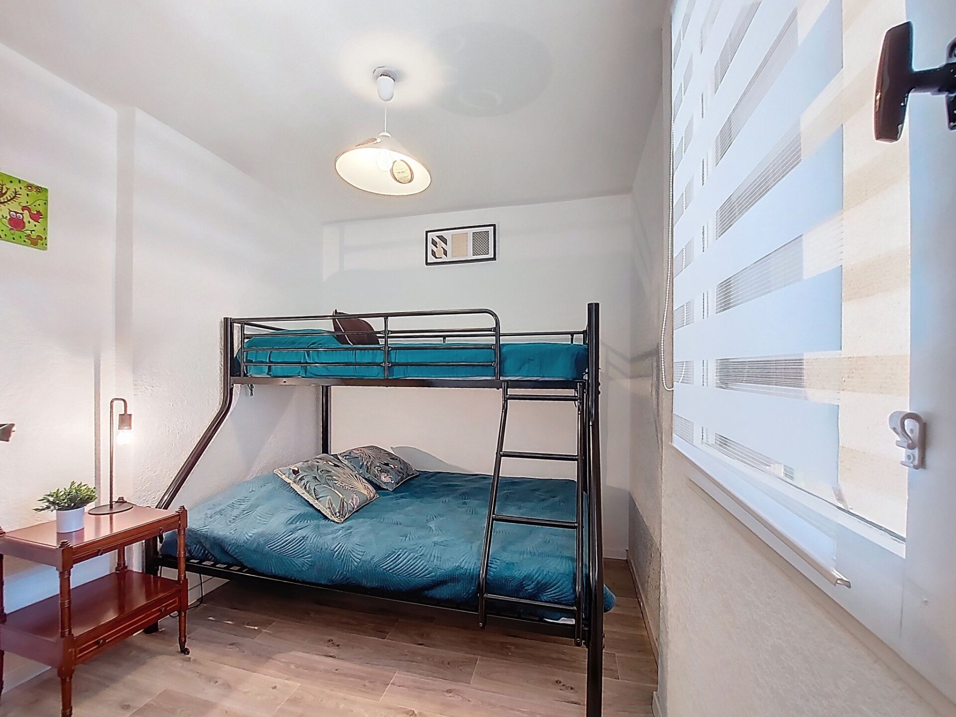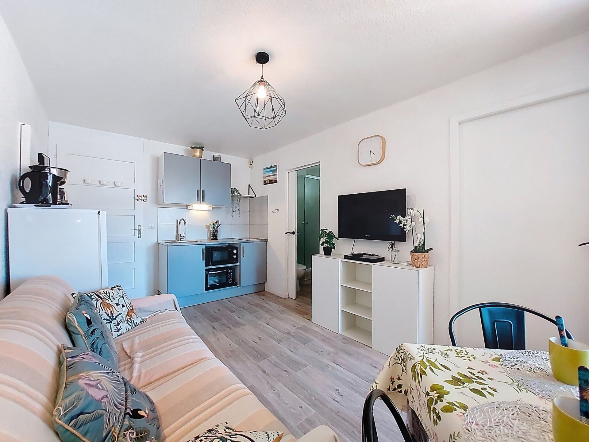 Appartement 2-kamers 27 m2 op de 1e verdieping. Eetkamer met 1 divanbed (140 cm, lengte 190 cm), TV (Flatscreen TV). Uitgang naar het terras. 1 kamer met 1 2-pers bed (1 x 140 cm, lengte 190 cm). Kookhoek (mini-oven, 2 keramische glas kookplaten, broodrooster, waterkoker, magnetron, elektrische koffiemachine). Douche/WC. Air-conditioning. Terras 5 m2. Terrasmeubelen. Zijdelings uitzicht op zee. Ter beschikking: Internet (WiFi, extra). Parkeerplaats. Rookmelders. Aanbod door een particulier volgens art. 155, IV van CGI.