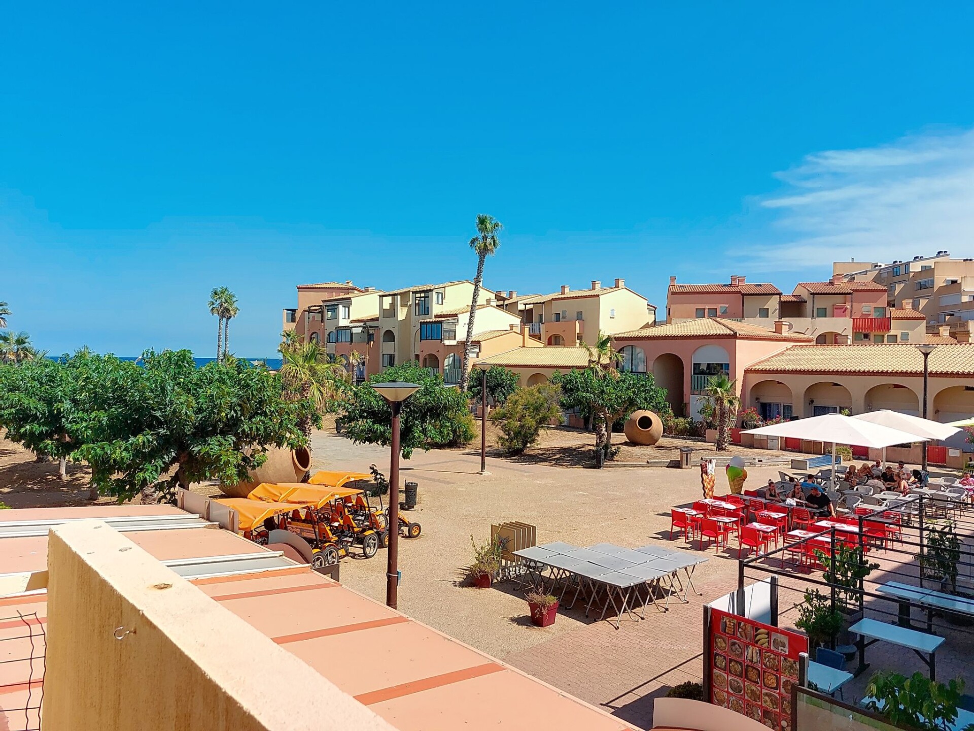 Residentie "Front de Mer", van 3 verdiepingen. In de wijk Grande Plage, drukke ligging, 100 m van zee, 100 m van het strand. In het complex: parkeerplaats. Winkel, levensmiddelenwinkel 50 m, supermarkt 6 km, restaurant, bar, bakkerij, café 50 m, bushalte "Les Marines" 300 m, treinstation "Perpignan" 24 km, zandstrand 50 m. Surfschool 2 km, zeilschool 3 km, tennis 3 km, tennishal 3 km, midgetgolf 2.5 km, manege 12 km. Attracties in de buurt: Aqualand Port Leucate 7 km, Réserve Africaine de Sigean 41 km, cinéma 1.2 km, téléski nautique 5 km, parcours aventure 5 km, Spot de windsurf 4 km. Bekende meren kunnen gemakkelijk worden bereikt: Etang de Leucate ou salses 3 km, Lac de Villeneuve de la Raho 34 km. Wandelgebied Sentier du guetteur 8 km, la forteresse de salses 15 km, Sentier du littoral Collioure 40 km. Geen lift. Animatie in het hoogseizoen. De afgebeelde foto is slechts een voorbeeld. Vergelijkbare accommodaties kunnen worden geboekt.