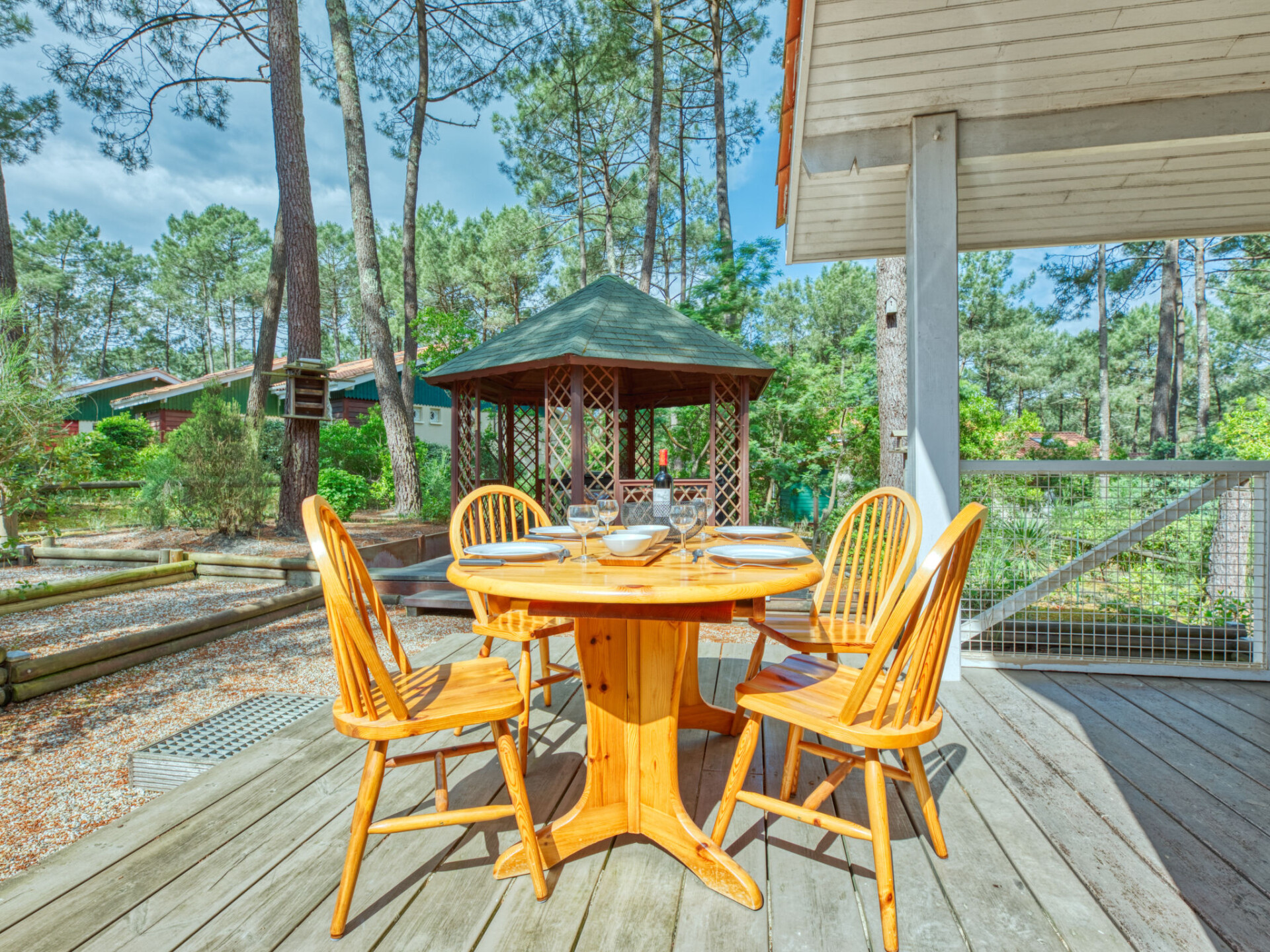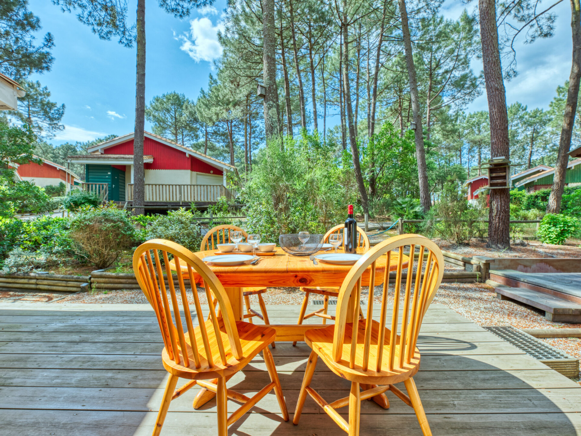 Residentie "Golf Loisirs". Aan de rand van de plaats, 2 km van het centrum, 2 km van zee, 5 km van het meer, 2 km van het strand. Voor medegebruik: openluchtzwembad (13 x 17 m, 180 cm diepte, seizoensgebonden beschikbaarheid: 18.Jun. - 18.Sep.). Parkeerplaats op het terrein. Winkel 2 km, supermarkt 2 km, restaurant 700 m, fietsverhuur 300 m, bushalte "Marie Curie" 1.7 km, zandstrand "Plage Sud" 2 km. Golfterrein (18 holes) 500 m, surfschool 3 km, zeilschool 6 km, tennis 300 m, manege 1.5 km, fietspad 200 m. Attracties in de buurt: Bordeaux 60 km, Dune du Pyla 70 km, saint Emilion 60 km, Cap Ferret 70 km. De eigenaar accepteert geen jeugdgroepen.