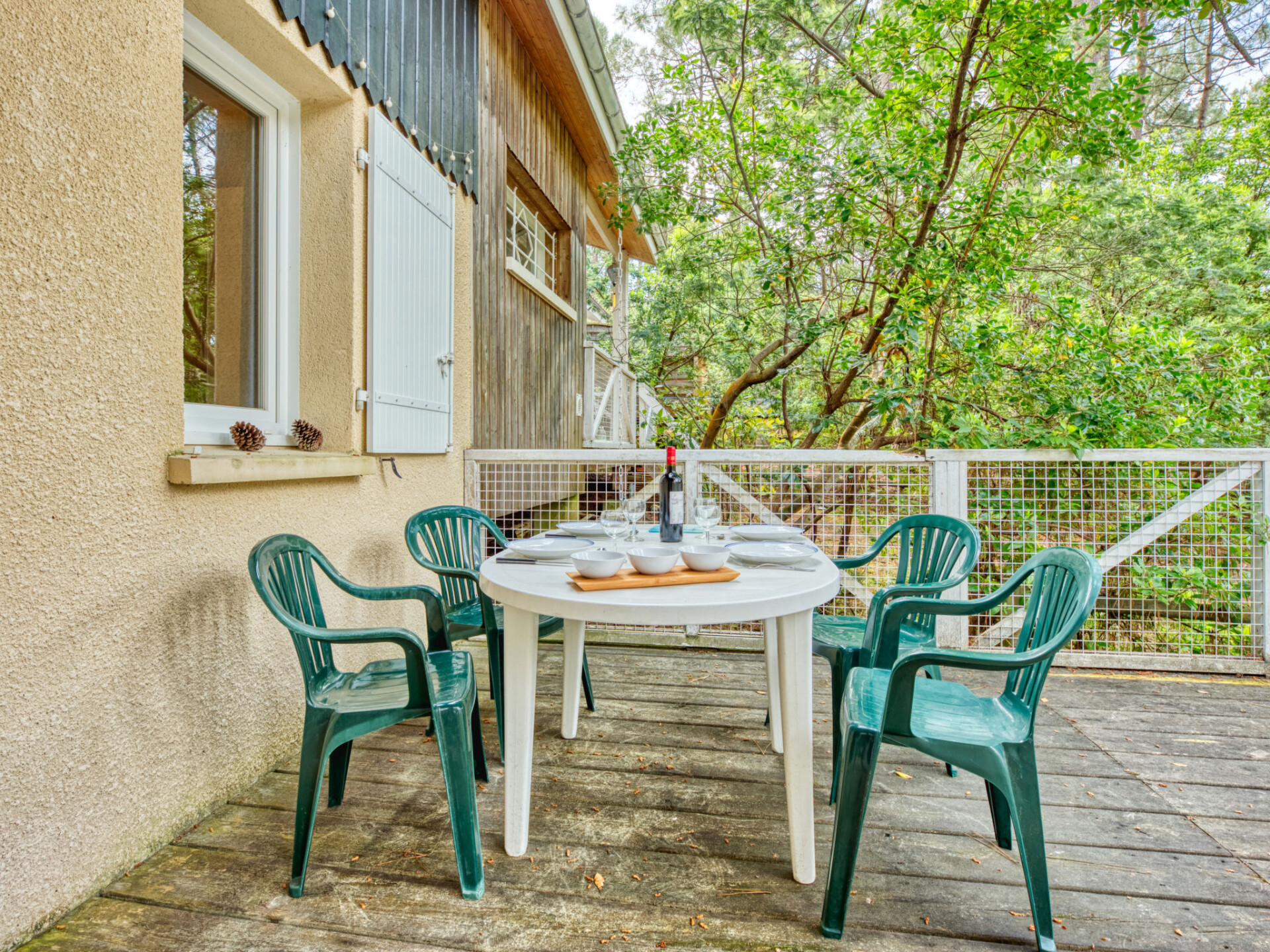 Residentie "Golf Loisirs". Aan de rand van de plaats, 2 km van het centrum, 2 km van zee, 5 km van het meer, 2 km van het strand. Voor medegebruik: openluchtzwembad (13 x 17 m, 180 cm diepte, seizoensgebonden beschikbaarheid: 18.Jun. - 18.Sep.). Parkeerplaats op het terrein. Winkel 2 km, supermarkt 2 km, restaurant 700 m, fietsverhuur 300 m, bushalte "Marie Curie" 1.7 km, zandstrand "Plage Sud" 2 km. Golfterrein (18 holes) 500 m, surfschool 3 km, zeilschool 6 km, tennis 300 m, manege 1.5 km, fietspad 200 m. Attracties in de buurt: Bordeaux 60 km, Dune du Pyla 70 km, saint Emilion 60 km, Cap Ferret 70 km. De eigenaar accepteert geen jeugdgroepen.