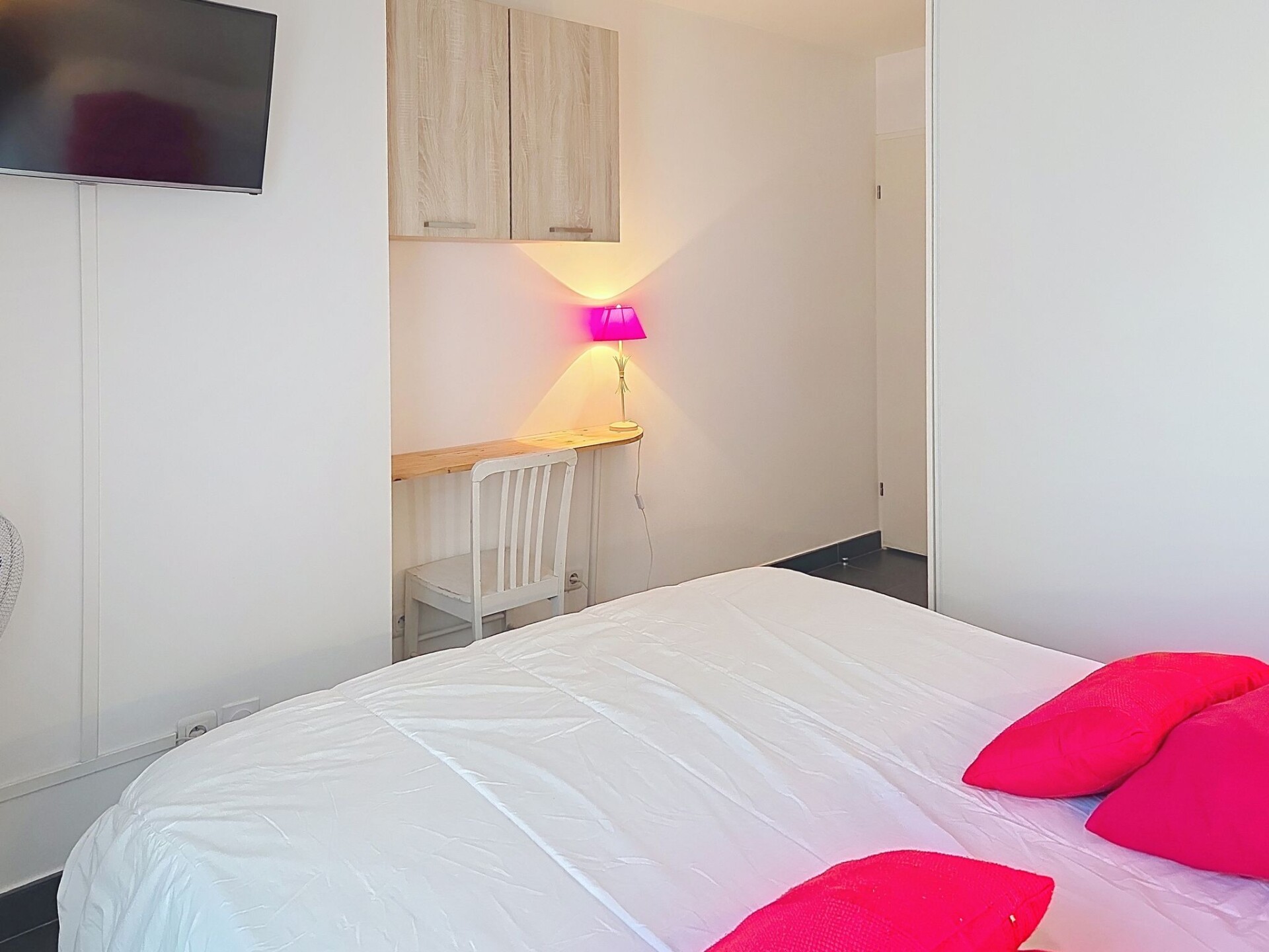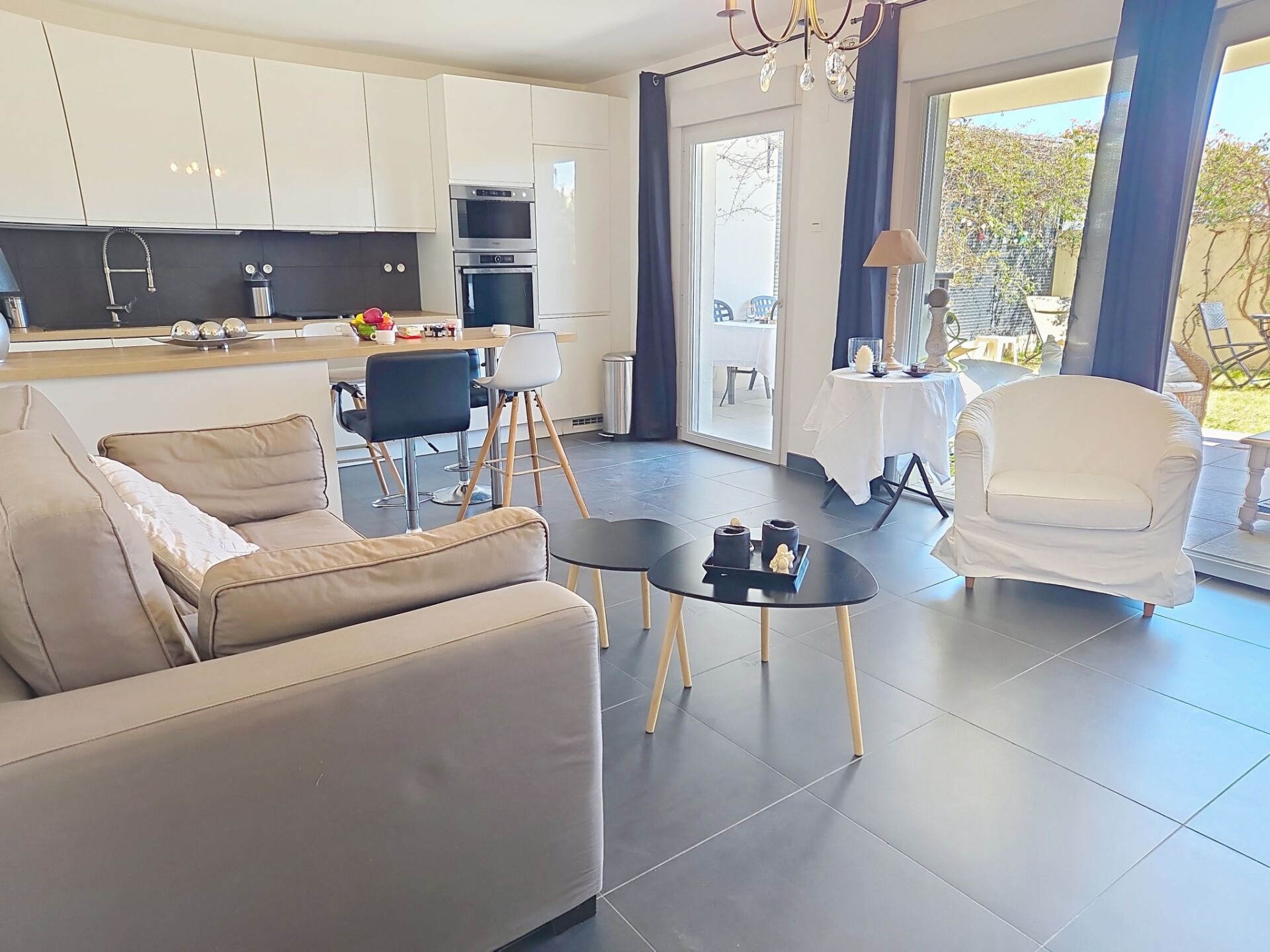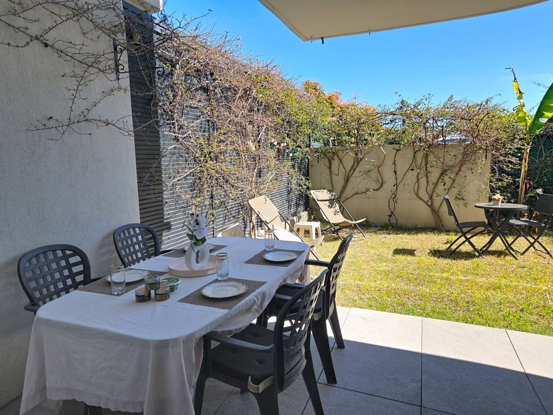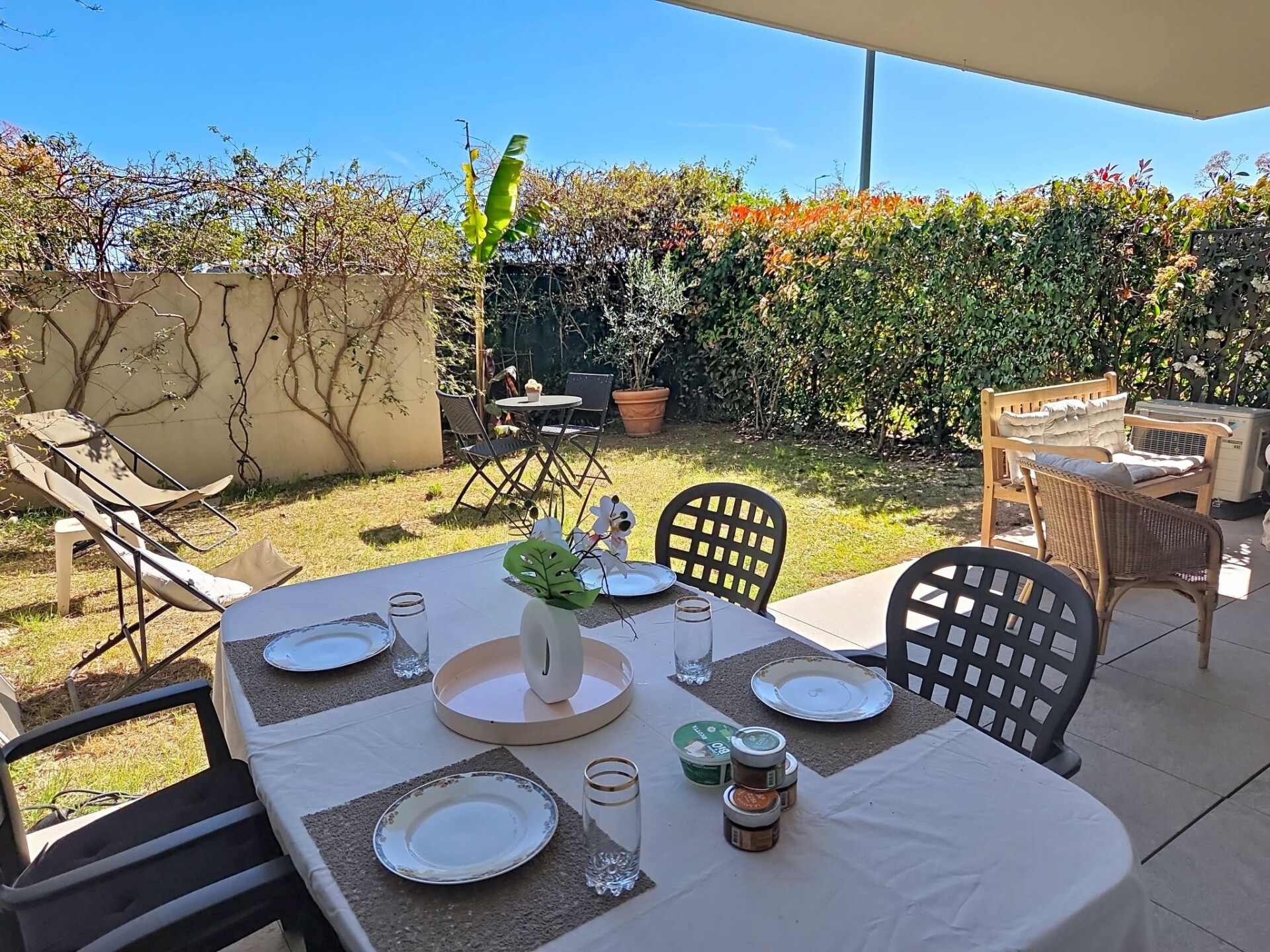 Appartement 3-kamers 67 m2, op de begane grond. Modern ingericht: woon-/eetkamer 27 m2 met TV (Flatscreen TV), air-conditioning. Uitgang naar het terras, naar de zitplaats in de tuin. 1 kamer met 1 2-pers bed (1 x 160 cm, lengte 200 cm), TV (Flatscreen TV). 1 kamer met 1 2-pers bed (1 x 180 cm, lengte 200 cm), TV (Flatscreen TV). Uitgang naar het terras. Open keuken (oven, afwasmachine, 4 inductiekookplaten, broodrooster, waterkoker, magnetron, diepvriezer, elektrische koffiemachine, pads voor de koffiemachine (NESPRESSO) extra). Uitgang naar het terras, naar de zitplaats in de tuin. Badkamer, aparte WC. Elektrische verwarming. Terras 13 m2 gedeeltelijk overdekt, op het zuiden gelegen, klein terras 4 m2, overdekt, op het noorden gelegen, zithoek in de tuin 46 m2, op het zuiden gelegen. Terrasmeubelen, ligstoelen (2). Ter beschikking: wasmachine, strijkijzer, haardroger. Internet (WiFi, extra). Parkeerplaats nr. 21 (overdekt, 1 Auto). Maximaal 1 klein huisdier/hond toegestaan. TV alleen FR. Rookmelders. Aanbod door een particulier volgens art. 155, IV van CGI. DPJSAL