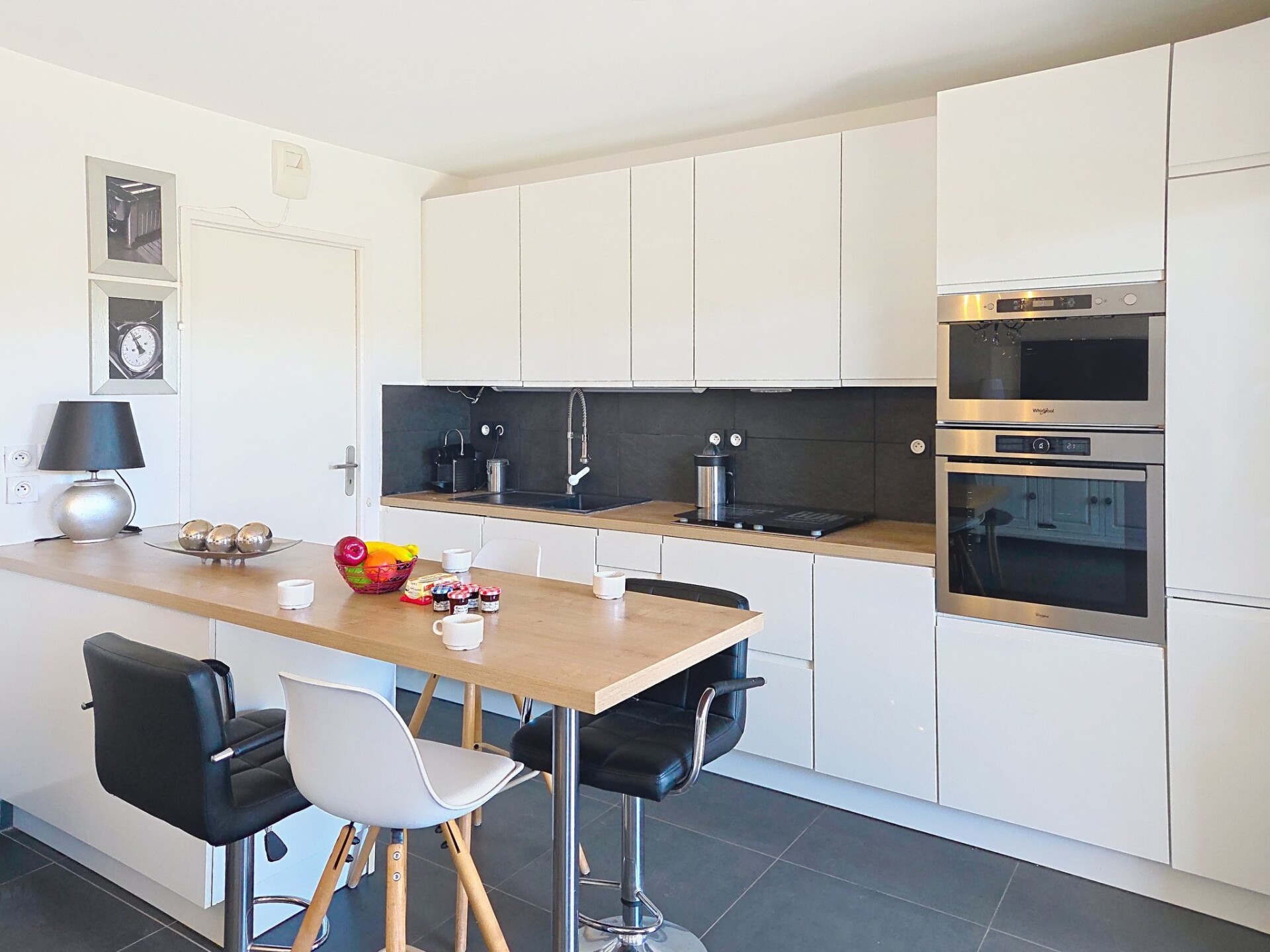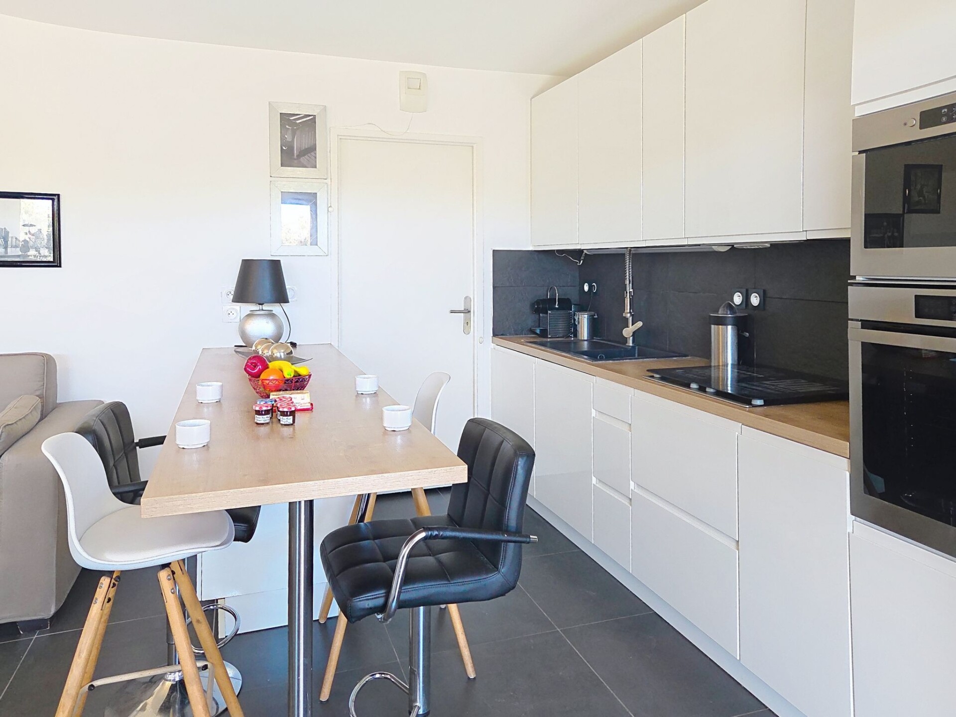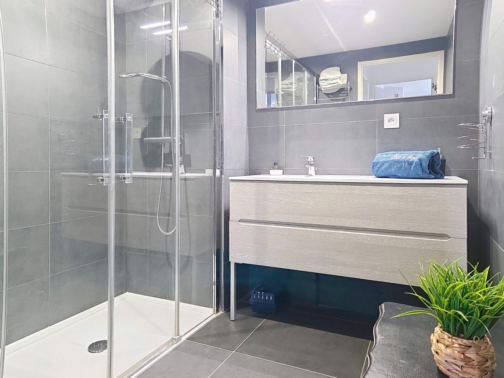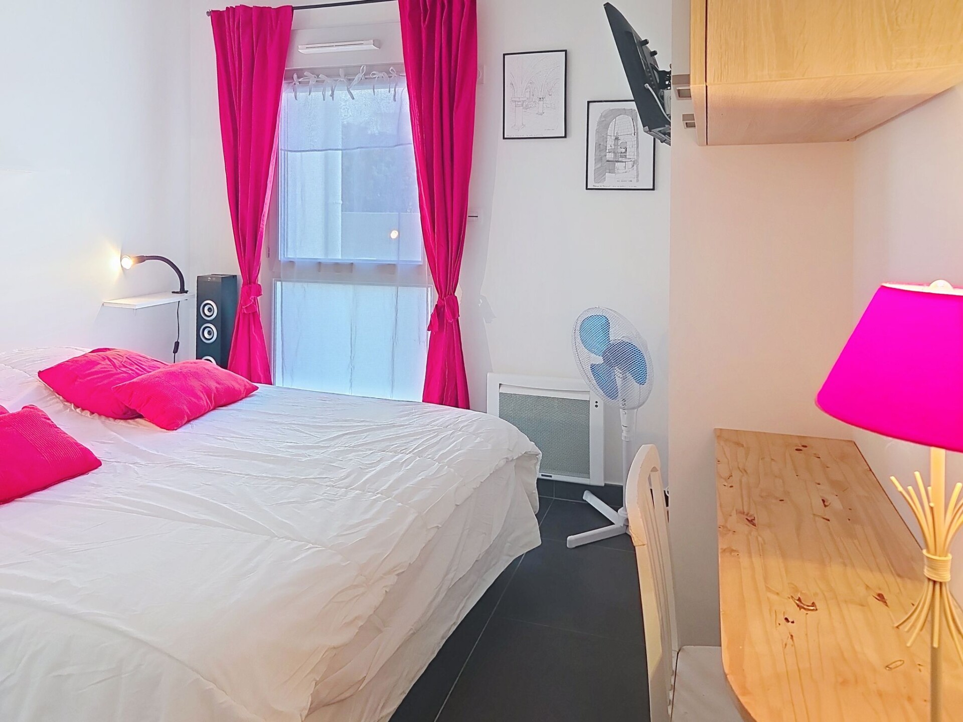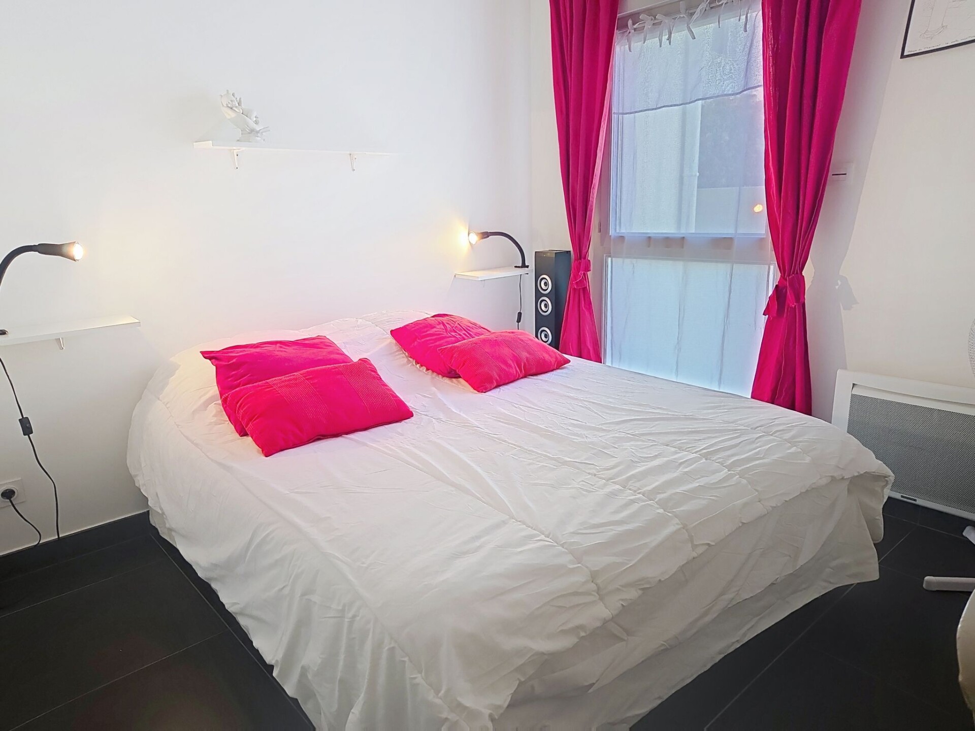 Appartement 3-kamers 67 m2, op de begane grond. Modern ingericht: woon-/eetkamer 27 m2 met TV (Flatscreen TV), air-conditioning. Uitgang naar het terras, naar de zitplaats in de tuin. 1 kamer met 1 2-pers bed (1 x 160 cm, lengte 200 cm), TV (Flatscreen TV). 1 kamer met 1 2-pers bed (1 x 180 cm, lengte 200 cm), TV (Flatscreen TV). Uitgang naar het terras. Open keuken (oven, afwasmachine, 4 inductiekookplaten, broodrooster, waterkoker, magnetron, diepvriezer, elektrische koffiemachine, pads voor de koffiemachine (NESPRESSO) extra). Uitgang naar het terras, naar de zitplaats in de tuin. Badkamer, aparte WC. Elektrische verwarming. Terras 13 m2 gedeeltelijk overdekt, op het zuiden gelegen, klein terras 4 m2, overdekt, op het noorden gelegen, zithoek in de tuin 46 m2, op het zuiden gelegen. Terrasmeubelen, ligstoelen (2). Ter beschikking: wasmachine, strijkijzer, haardroger. Internet (WiFi, extra). Parkeerplaats nr. 21 (overdekt, 1 Auto). Maximaal 1 klein huisdier/hond toegestaan. TV alleen FR. Rookmelders. Aanbod door een particulier volgens art. 155, IV van CGI. DPJSAL