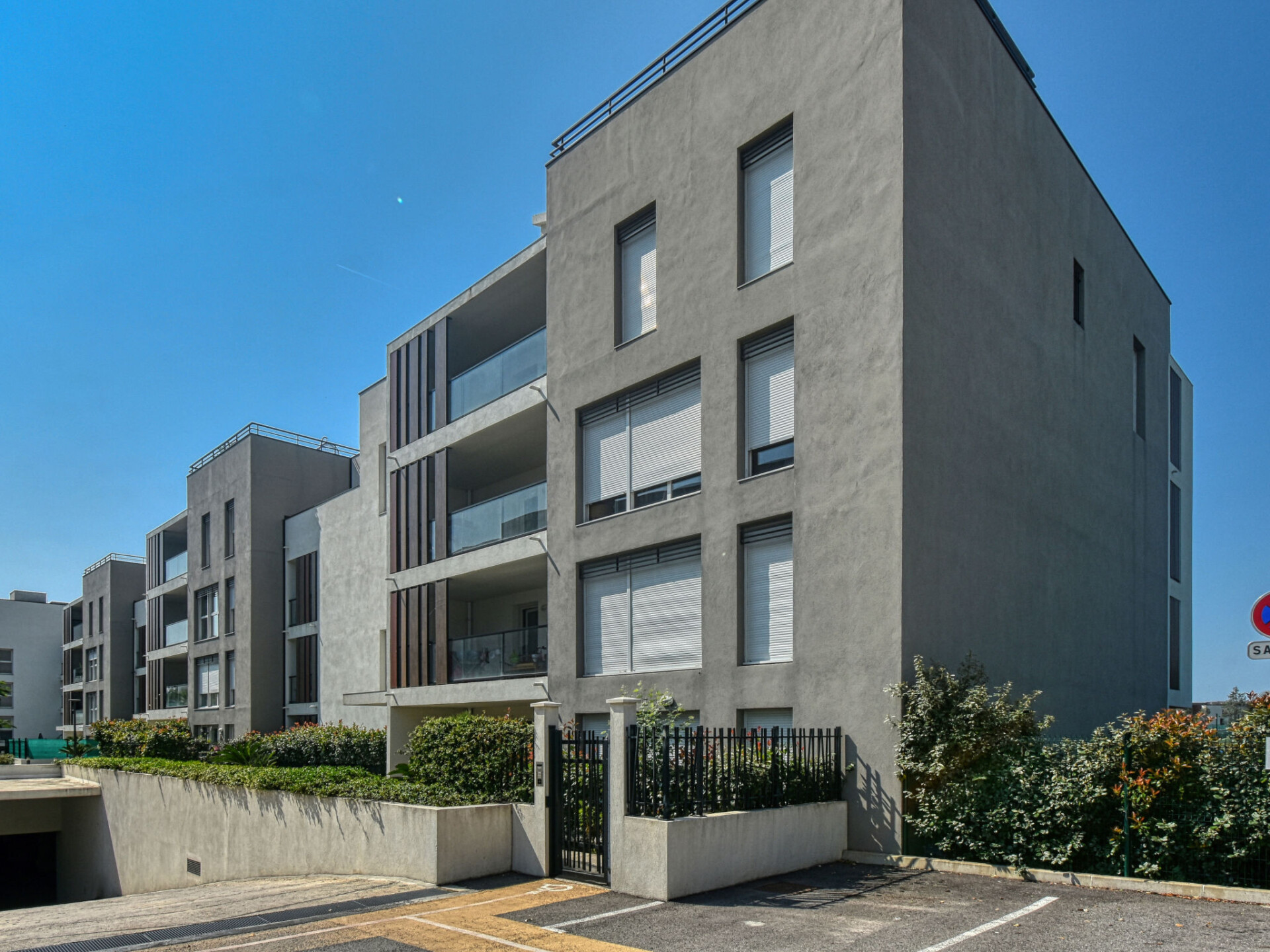 Mooi residentie "Golfe Horizon", van 3 verdiepingen, bouwjaar 2017. In de wijk Tour de Mare, 4 km van zee, 3.5 km van het strand. Voor medegebruik: openluchtzwembad hoekig (4 x 7 m, seizoensgebonden beschikbaarheid: 15.Mei. - 15.Sep.) met trap. WC bij het zwembad. In het huis: lift. Openbare parkeerplaatsen 100 m. Supermarkt 2 km, winkelcentrum 1 km, bushalte 50 m, treinstation "Saint Raphael" 5 km, zandstrand "Plage de Fréjus" 4 km. Jachthaven 4 km, golfterrein (18 holes) 5 km, tennis 200 m. Attracties in de buurt: Aqualand 4 km, Karting 4 km. Wandelgebied L'Estérel 7 km. Auto noodzakelijk. Groepen jongeren uitsluitend op aanvraag. De sleuteloverdracht vindt plaats bij het agentschap INTERHOME in Port Fréjus, 4 km.