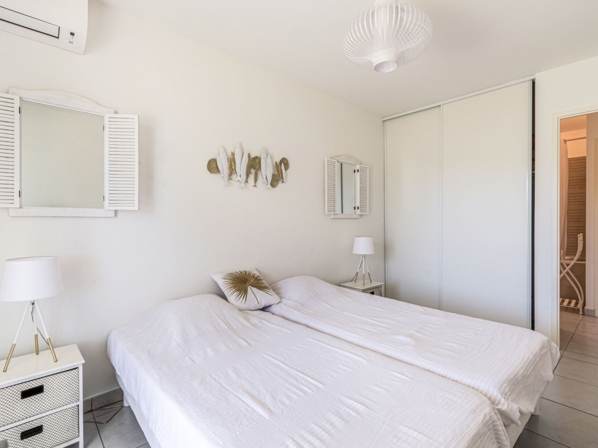 Mooi residentie "Golfe Horizon", van 3 verdiepingen, bouwjaar 2017. In de wijk Tour de Mare, 4 km van zee. Voor medegebruik: openluchtzwembad hoekig (4 x 7 m, seizoensgebonden beschikbaarheid: 15.Mei. - 15.Sep.) met trap. WC bij het zwembad. In het huis: lift. Openbare parkeerplaatsen 100 m. Supermarkt 2 km, winkelcentrum 1 km, bushalte 50 m, treinstation "Saint Raphael" 5 km, zandstrand "Plage de Fréjus" 4 km. Jachthaven 4 km, golfterrein (18 holes) 5 km, tennis 200 m. Attracties in de buurt: Aqualand 4 km, Karting 4 km. Wandelgebied L'Estérel 7 km. Auto noodzakelijk. Groepen jongeren uitsluitend op aanvraag. De sleuteloverdracht vindt plaats bij het agentschap INTERHOME in Port Fréjus, 4 km.
