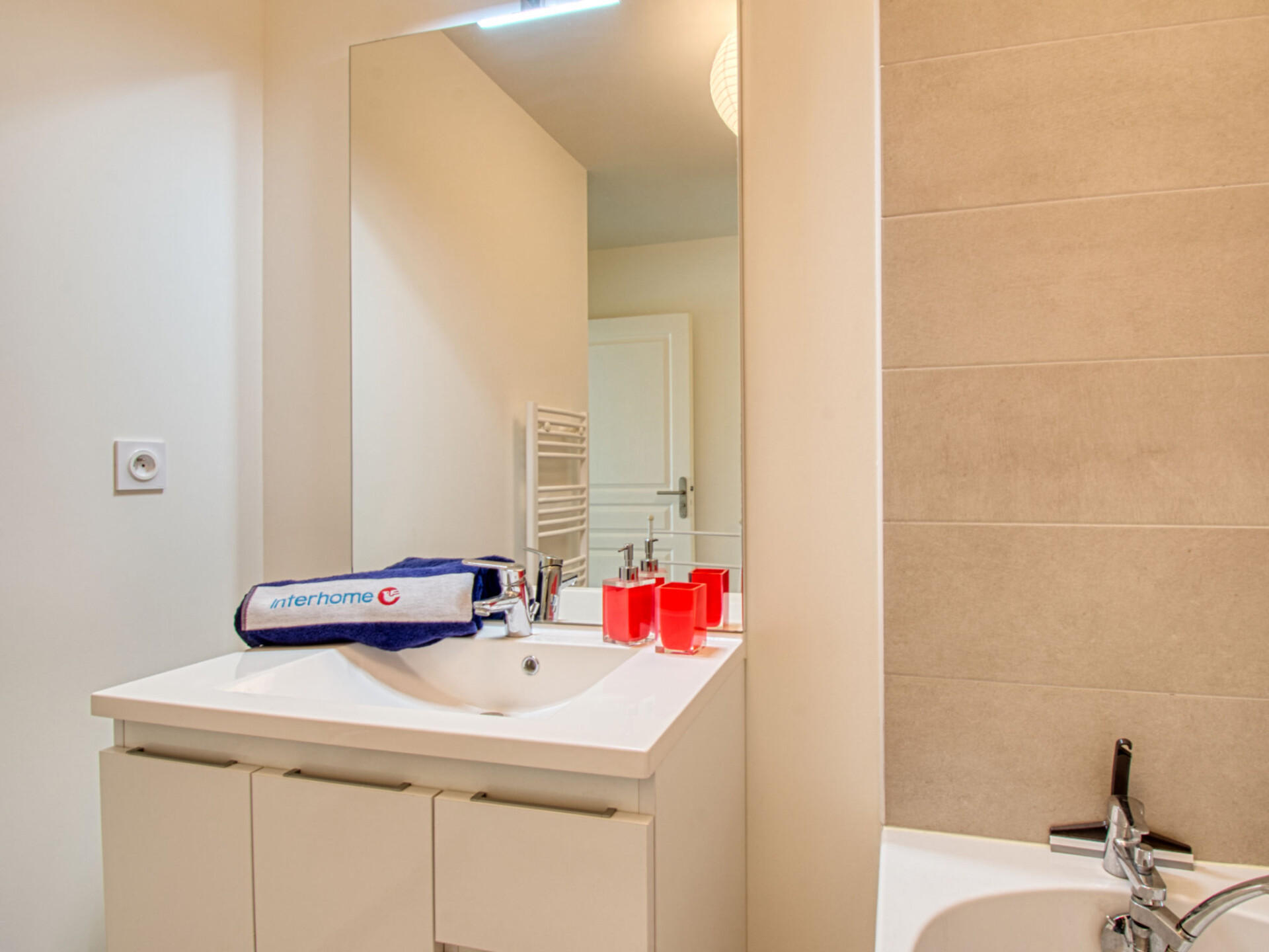 Appartement 3-kamers 60 m2, op de begane grond. Modern ingericht: woon-/eetkamer met 1 divanbed (140 cm, lengte 190 cm), TV (Flatscreen TV). Uitgang naar het terras. 1 kamer met 2 bedden (90 cm, lengte 190 cm), bad en TV (Flatscreen TV), air-conditioning. Uitgang naar het terras. 1 kamer met 1 2-pers bed (1 x 140 cm, lengte 190 cm), douche en TV (Flatscreen TV), air-conditioning. Uitgang naar het terras. Open keuken (oven, afwasmachine, 3 inductiekookplaten, broodrooster, waterkoker, magnetron, diepvriezer, elektrische koffiemachine, pads voor de koffiemachine (NESPRESSO) extra). Aparte WC. Elektrische verwarming. Terras 22 m2, groot tuin 160 m2. Terrasmeubelen. Ter beschikking: wasmachine, strijkijzer, haardroger. Internet (Internet (WiFi), extra). Niet rokers woning, geen parkeerplaats. TV alleen FR. Rookmelders. LOT A03