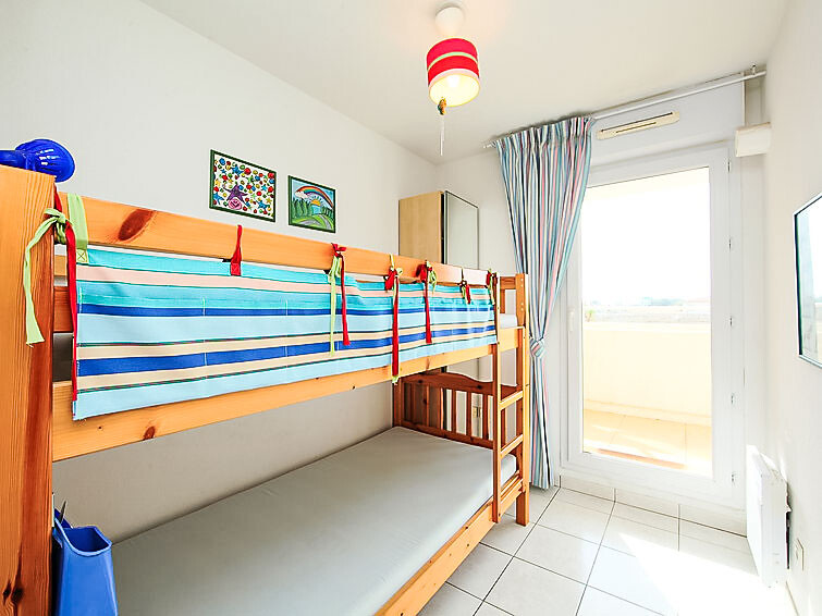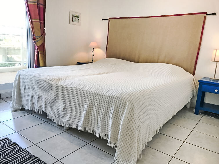 Appartement 3-kamers 48 m2 op de 1e verdieping. Mooi ingericht: woon-/eetkamer met Flatscreen TV en stereo-installatie. Uitgang naar het terras. 1 kamer met 1 2-pers bed (2 x 90 cm, lengte 190 cm). Uitgang naar het terras. 1 kinderkamer met 1 x 2 stapelbedden (90 cm, lengte 190 cm). Uitgang naar het terras. Open keuken (afwasmachine, 4 keramische glas kookplaten, broodrooster, waterkoker, magnetron, elektrische koffiemachine, combimagnetron). Badkamer, aparte WC. Verwarming. Klein terras 8 m2, op het oosten gelegen, klein terras 8 m2, op het westen gelegen. Terrasmeubelen. Mooi uitzicht op zee en de bergen. Ter beschikking: wasmachine, strijkijzer, haardroger. Internet (Internet (WiFi), extra). Garage. Rookmelders. FR6660.180.4