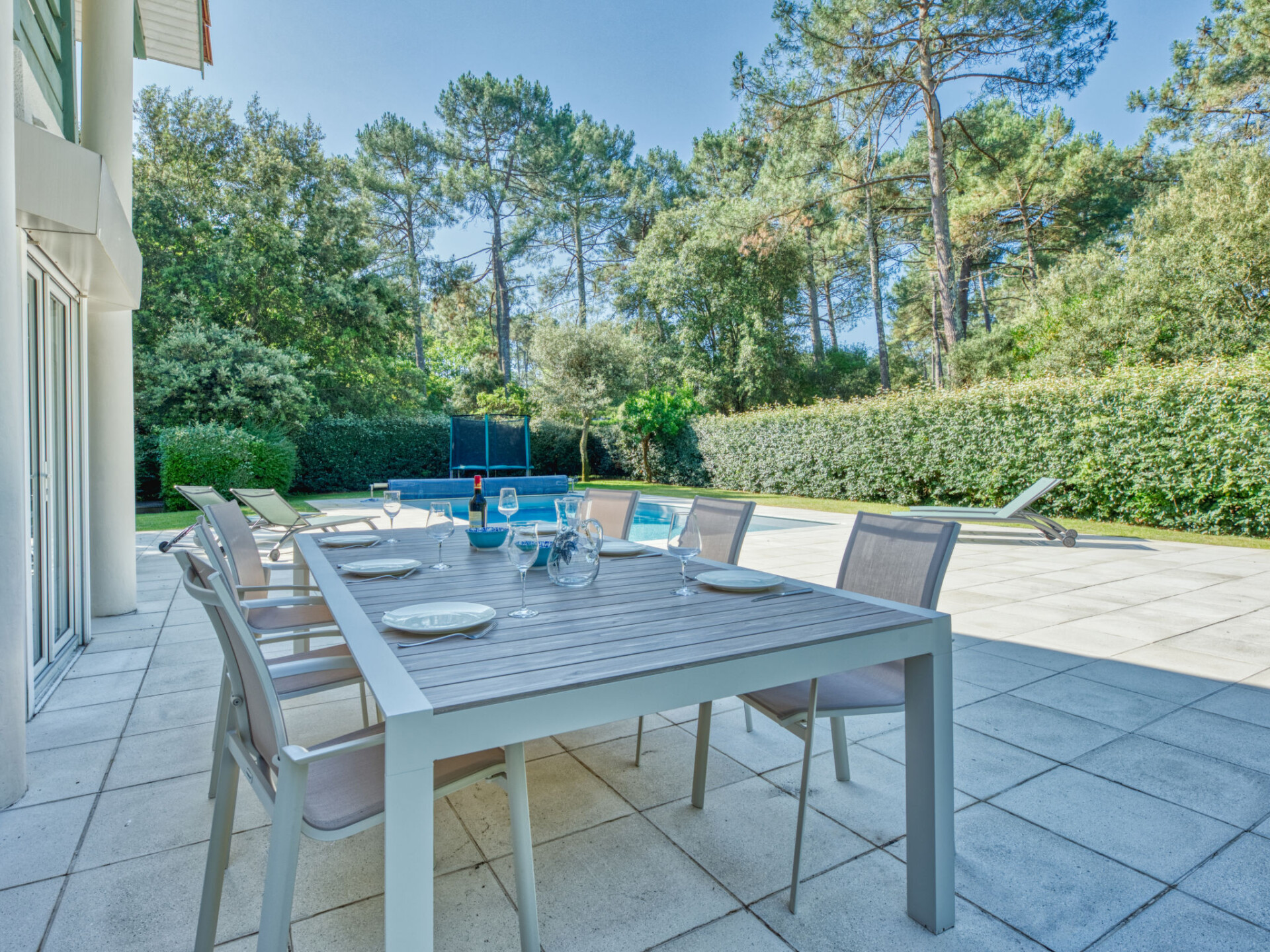 Residentie "Green Parc". Rustige ligging, 3 km van het meer, 2.5 km van het strand. Voor alleengebruik: tuin 1.400 m2 (omheind), openluchtzwembad (10 x 5 m, 80 - 220 cm diepte, seizoensgebonden beschikbaarheid: 01.Jun. - 30.Sep.). Terras, tuinmeubelen, parkeerplaats op het terrein. Winkel 2.5 km, restaurant 2.5 km, bushalte "Le Huga" 500 m. Golfterrein 500 m, tennis 1.5 km.