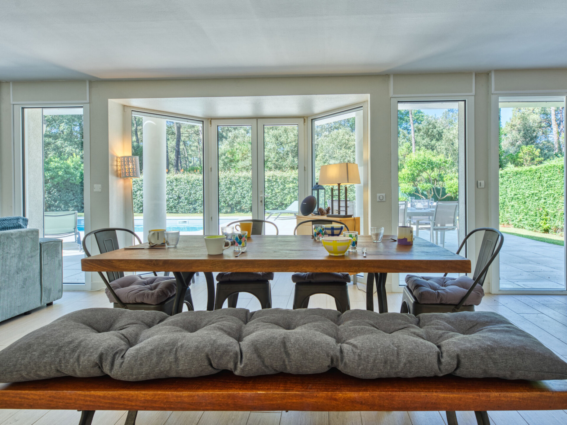 Villa 4-kamers 90 m2 op 2 verdiepingen. Comfortabel ingericht: woon-/eetkamer met TV. Uitgang naar het terras. 1 kamer met 1 2-pers bed (140 cm, lengte 190 cm). Open keuken (oven, afwasmachine, 4 inductiekookplaten, magnetron, elektrische koffiemachine, pads voor de koffiemachine (Nespresso) extra, kookeiland). Uitgang naar het terras. Badkamer, aparte WC. Bovenverdieping: 1 kamer met 1 2-pers bed (140 cm, lengte 190 cm). Uitgang naar het balkon. 1 kinderkamer met 2 bedden (90 cm, lengte 190 cm). Uitgang naar het balkon. Terras, op het zuiden gelegen. Terrasmeubelen, barbecue, ligstoelen (4). Uitzicht op het zwembad, de tuin en Golfbaan. Ter beschikking: wasmachine, droger. Internet (WiFi, gratis). Parkeerplaats. Niet rokers woning. Rookmelders. Aanbod door een particulier volgens art. 155, IV van CGI.
