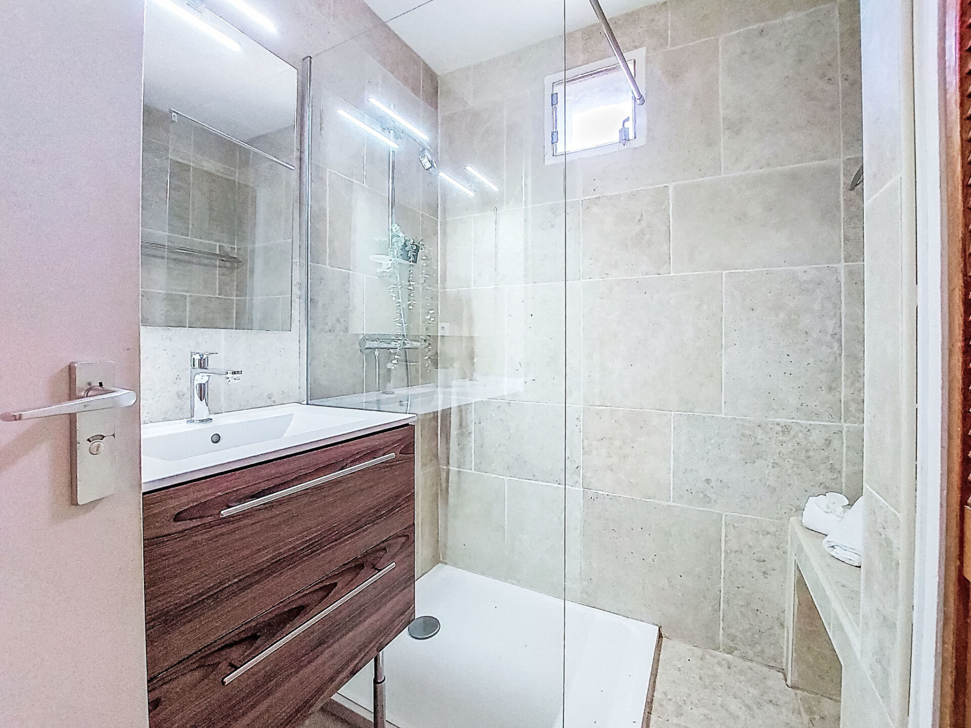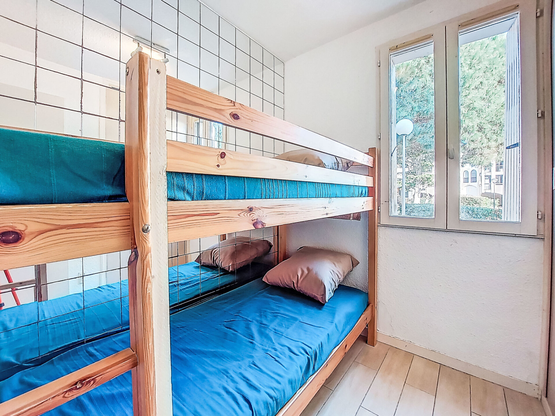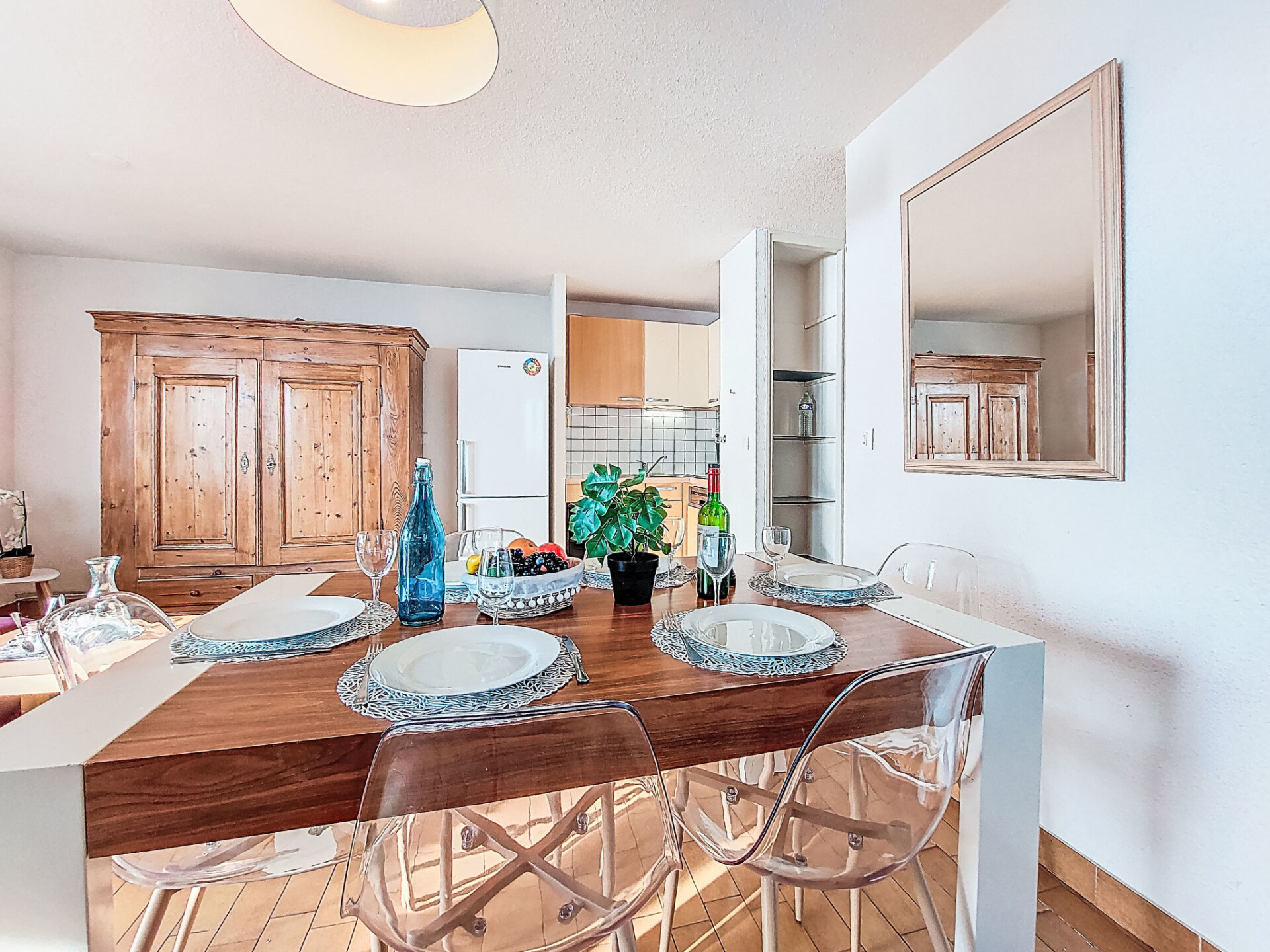 Appartement 4-kamers 50 m2, op de begane grond, op het zuidwesten gelegen. Woon-/eetkamer met TV (Flatscreen TV). Uitgang naar het terras. 1 kamer met 1 2-pers bed (1 x 160 cm, lengte 200 cm). Cabine met 1 2-pers divanbed (1 x 140 cm, lengte 190 cm). 1 kamer met 1 x 2 stapelbedden (80 cm, lengte 190 cm). Kookhoek (oven, afwasmachine, 4 keramische glas kookplaten, broodrooster, waterkoker, elektrische koffiemachine). Badkamer, aparte WC. Groot terras 15 m2. Terrasmeubelen, barbecue. Mooi uitzicht op het meer en de bergen. Ter beschikking: wasmachine. Internet (WiFi, extra). Maximaal 1 huisdier/hond toegestaan. Rookmelders. Aanbod door een particulier volgens art. 155, IV van CGI.