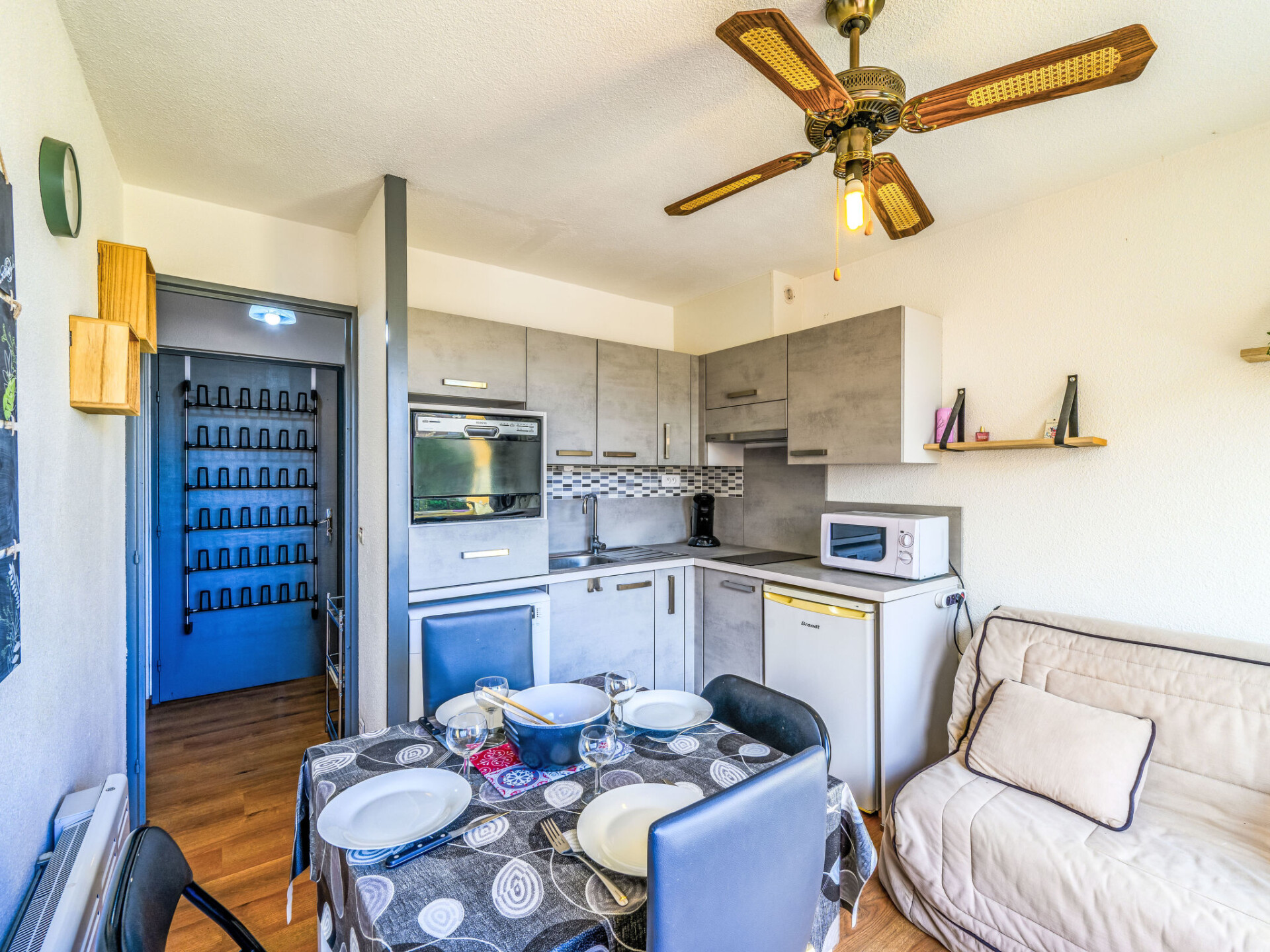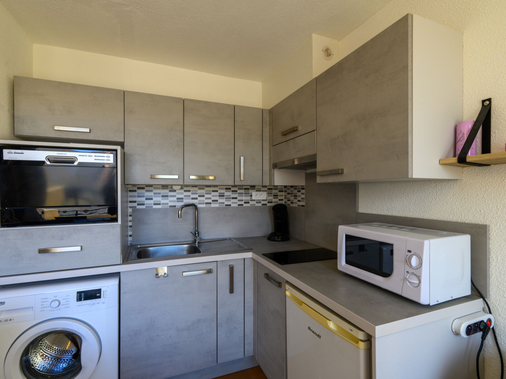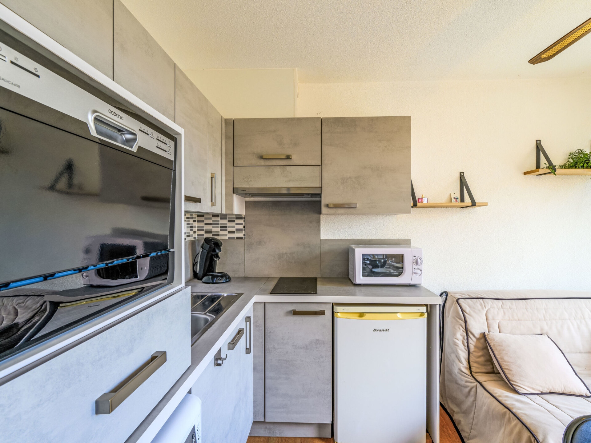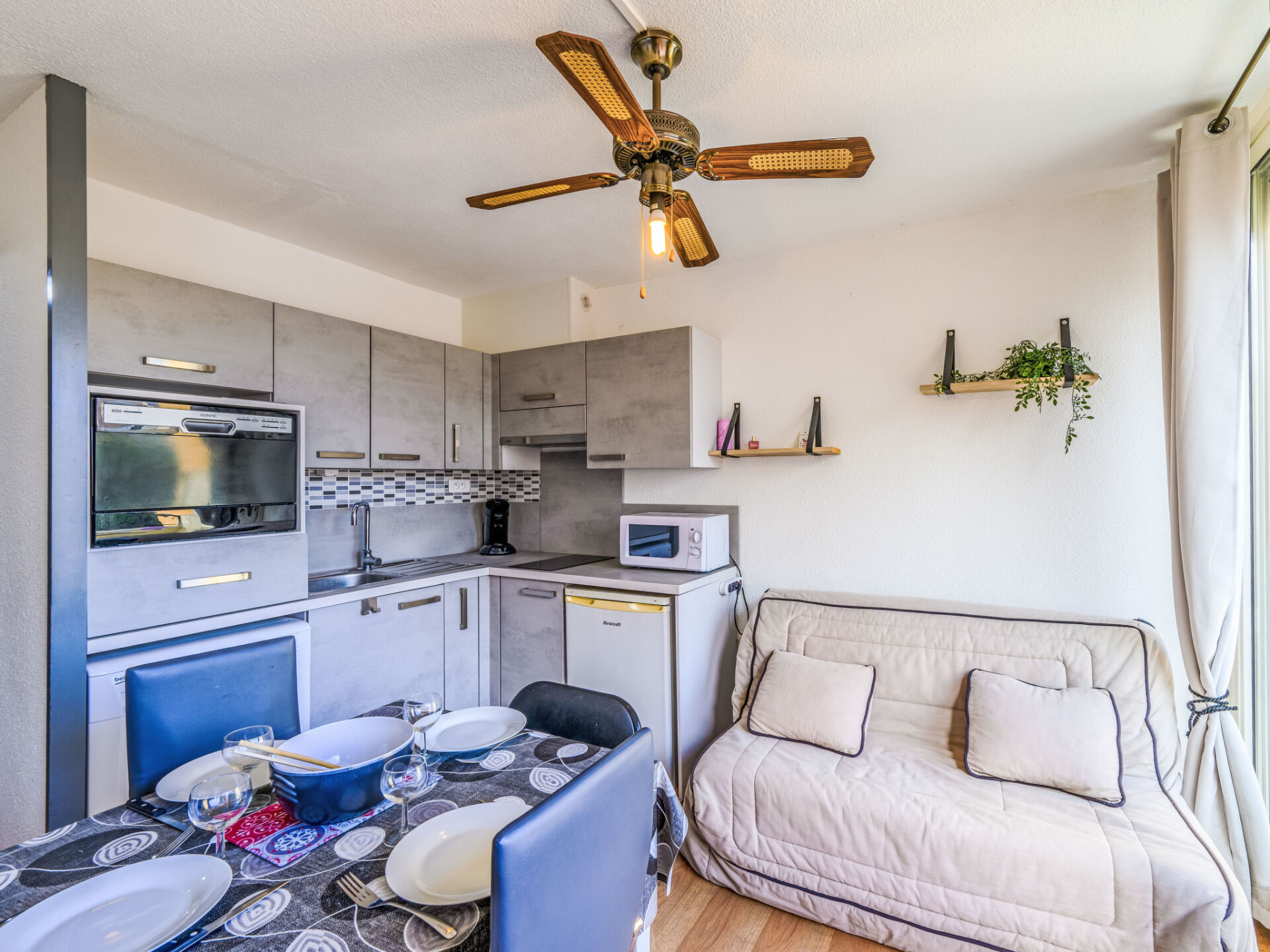 Appartement 2-kamers 25 m2 op de 3e verdieping. Comfortabel en mooi ingericht: woon-/eetkamer met TV (Flatscreen TV). Uitgang naar het balkon. 1 open kamer met 1 2-pers bed (1 x 140 cm, lengte 190 cm). Hal met 1 bed (120 cm, lengte 190 cm), 1 slaapplaats (1 x 80 cm, lengte 190 cm). Open keuken (2-pits kookplaat, afwasmachine, broodrooster, waterkoker, magnetron, elektrische koffiemachine, pads voor de koffiemachine (SENSEO)). Douche/WC. Elektrische verwarming. Balkon, op het noordoosten gelegen. Balkonmeubilair. Ter beschikking: wasmachine. Internet (WiFi, extra). Parkeerplaats. 1 huisdier/hond toegestaan. Rookmelders. Aanbod door een particulier volgens art. 155, IV van CGI.