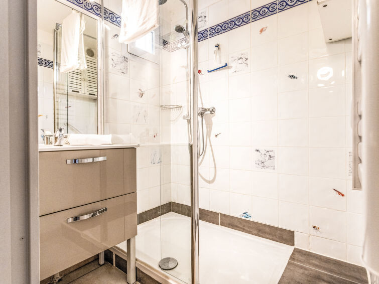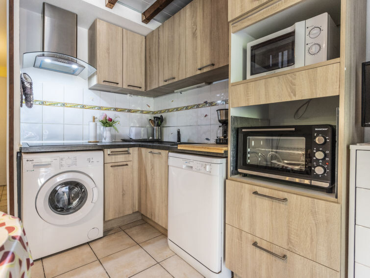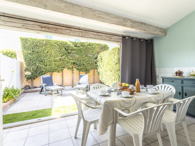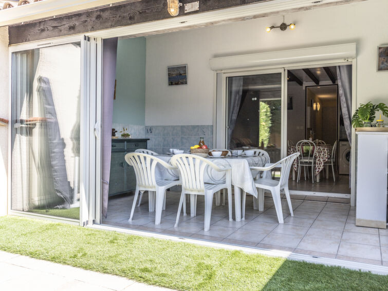 Huis in een rij 3-kamers 55 m2 op 2 verdiepingen. Woon-/eetkamer met panoramavenster met TV (Flatscreen TV), air-conditioning. Uitgang naar het terras. 1 kamer met 1 2-pers bed (140 cm, lengte 190 cm), air-conditioning. Kookhoek (2-pits kookplaat, mini-oven, oven, afwasmachine, 4 inductiekookplaten, magnetron, diepvriezer, grill, elektrische koffiemachine, combimagnetron). Douche, aparte WC. Bovenverdieping: galerij met afgeschuinde daken met 1 2-pers bed (140 cm, lengte 190 cm), aparte WC. 1 kamer met 1 x 2 stapelbedden (90 cm, lengte 190 cm), air-conditioning. Groot terras 40 m2. Terrasmeubelen. Ter beschikking: wasmachine. Internet (WiFi, gratis). Parkeerplaats nr. 48. Geschikt voor families. Rookvrij huis. Rookmelders. Aanbod door een particulier volgens art. 155, IV van CGI.