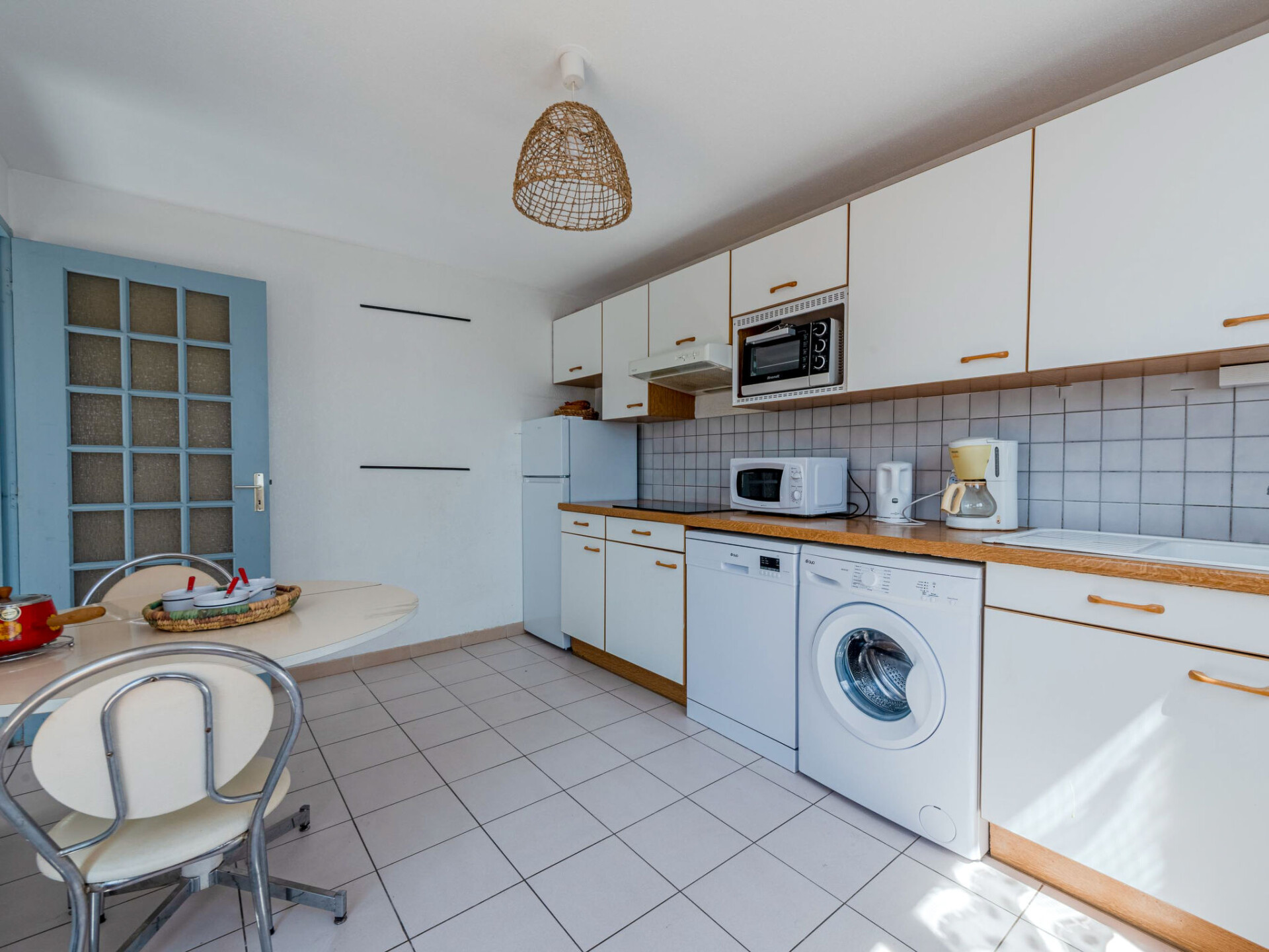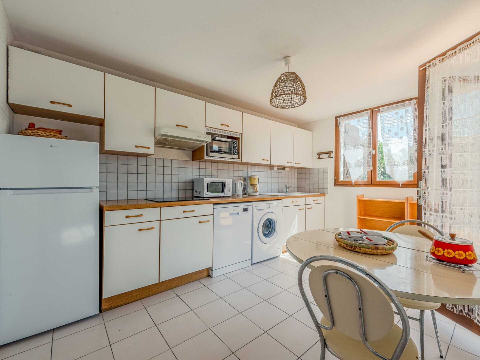 Huis in een rij 4-kamers 126 m2 op 2 verdiepingen. Woon-/eetkamer met TV (Flatscreen TV). Uitgang naar het terras. 1 kamer met 1 2-pers bed (1 x 140 cm, lengte 190 cm). Keuken (4-pits kookplaat, mini-oven, afwasmachine, diepvriezer, elektrische koffiemachine). Douche, aparte WC. Elektrische verwarming. Bovenverdieping: 1 kamer met 2 bedden (90 cm, lengte 190 cm). 1 kamer met 2 bedden (90 cm, lengte 190 cm). Douche/WC. Terras, tuin 145 m2. Terrasmeubelen. Ter beschikking: wasmachine. Internet (WiFi, extra). Rookmelders.