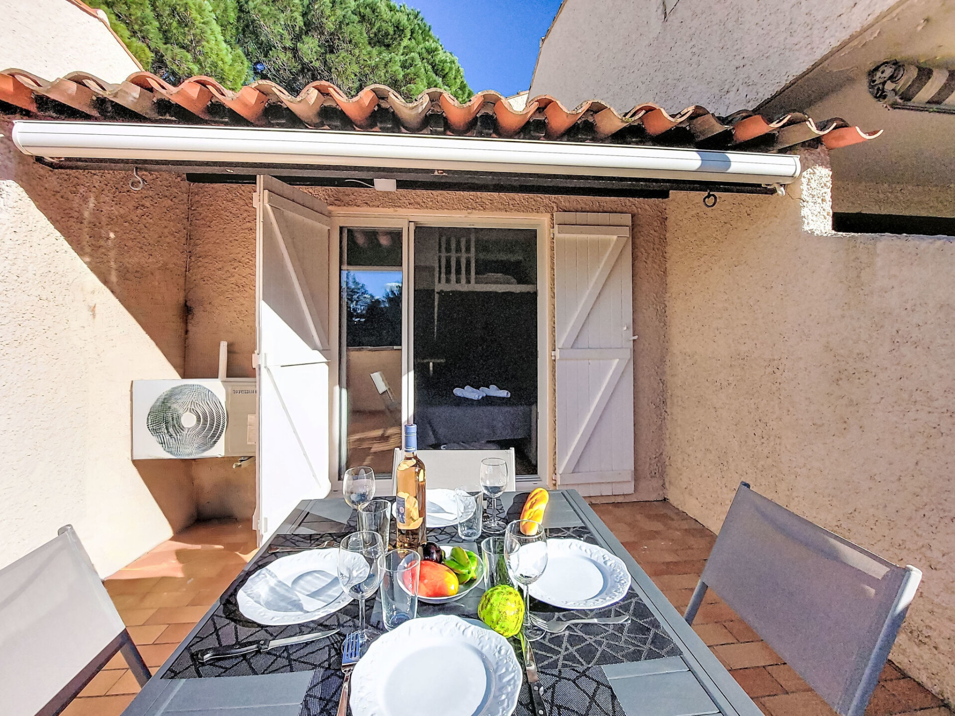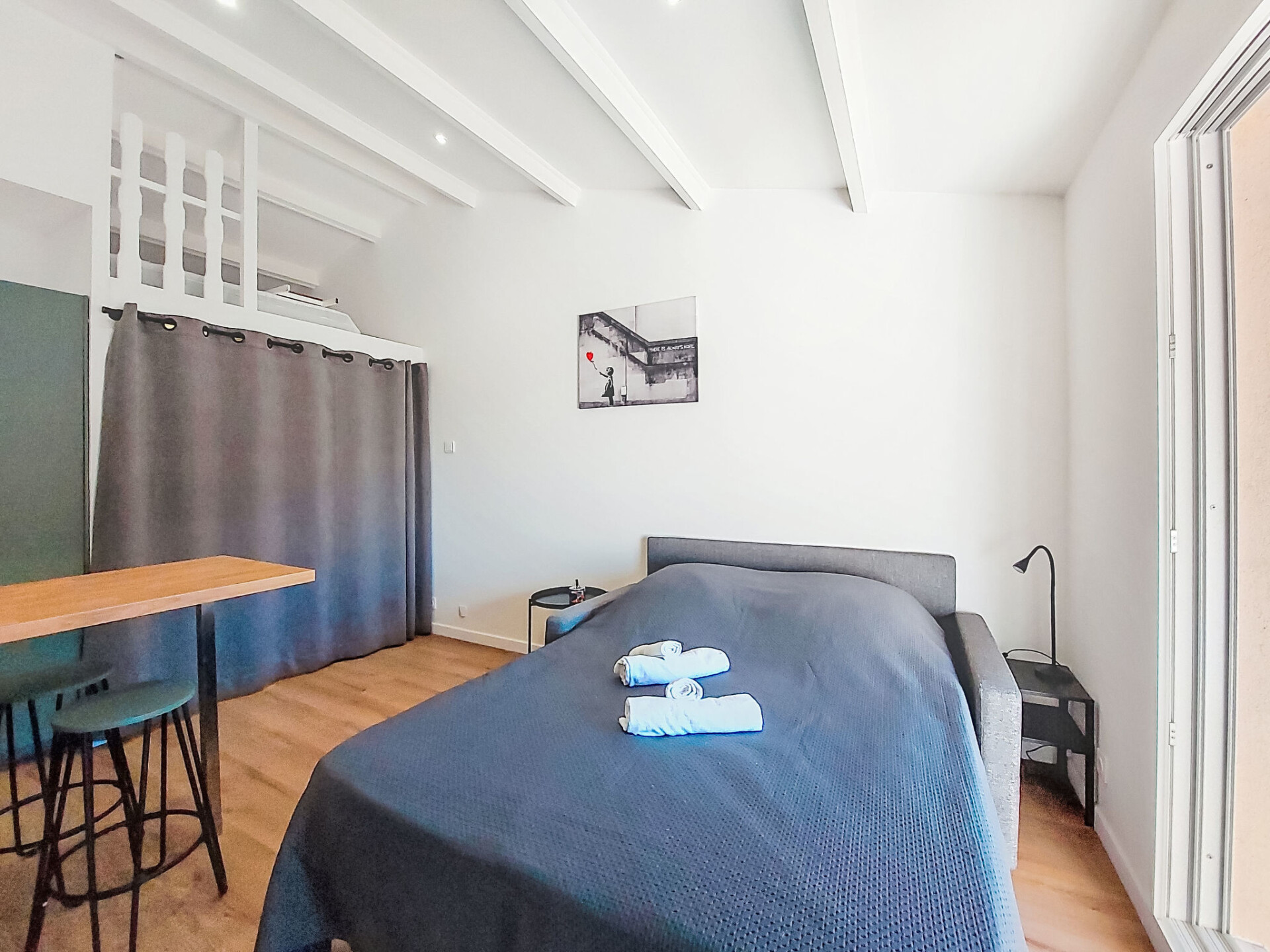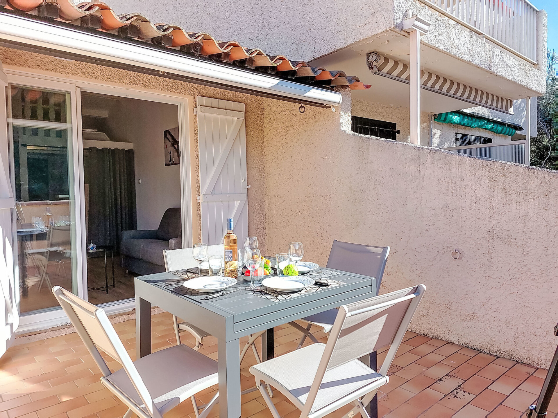 Studio 1-kamer 28 m2 op de 2e verdieping. Gerenoveerd in 2025, comfortabel en mooi ingericht: hal, zonder ramen met 1 x 2 stapelbedden (80 cm, lengte 190 cm). Woon-/eetkamer met 1 2-pers divanbed (140 cm, lengte 190 cm), TV (Flatscreen TV). Uitgang naar het terras. Kookhoek (afwasmachine, 4 inductiekookplaten, broodrooster, waterkoker, magnetron, elektrische koffiemachine, pads voor de koffiemachine (Nespresso) extra). Douche/WC. Air-conditioning, heteluchtverwarming. Groot terras 15 m2 gedeeltelijk overdekt, op het westen gelegen. Terrasmeubelen. Uitzicht in de verte op zee. Ter beschikking: wasmachine. Internet (WiFi, extra). Parkeerplaats nr. 816 (1 Auto). TV alleen FR. Rookmelders. Aanbod door een particulier volgens art. 155, IV van CGI. 83112001849LR
