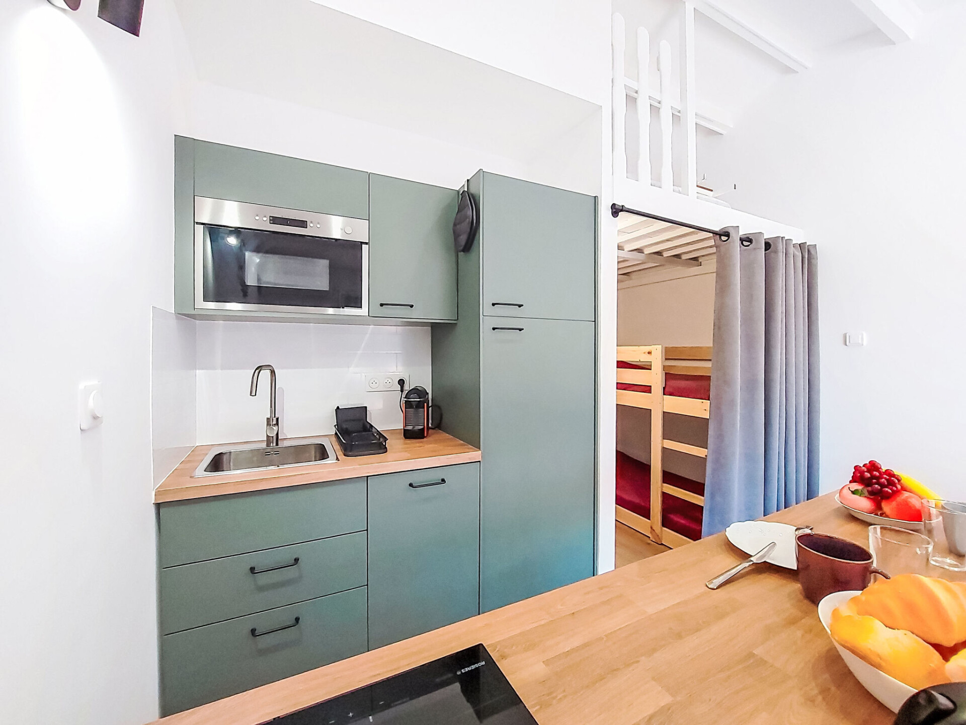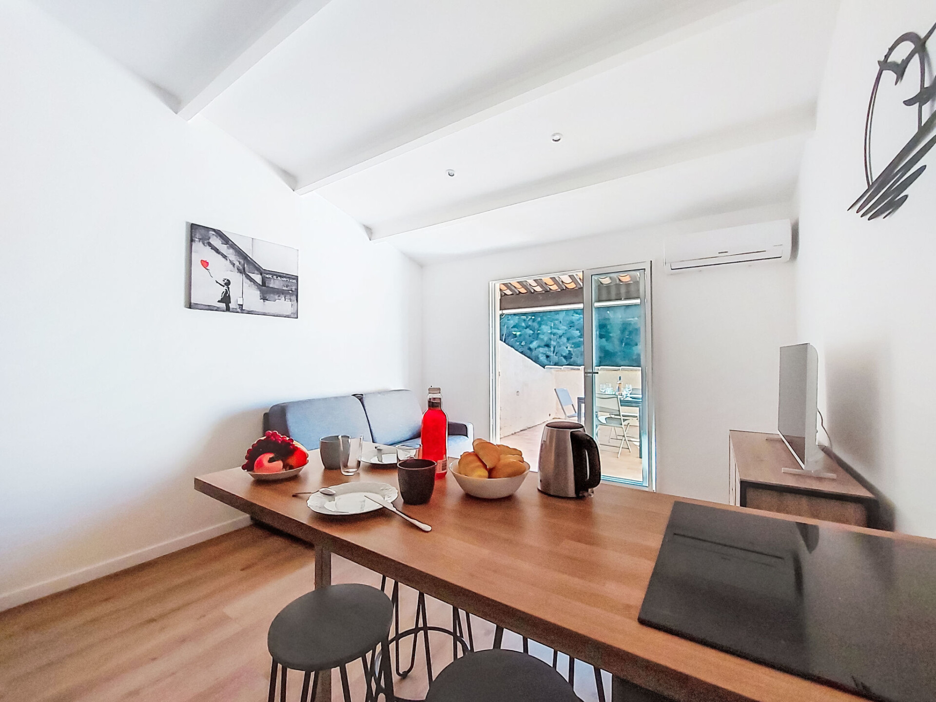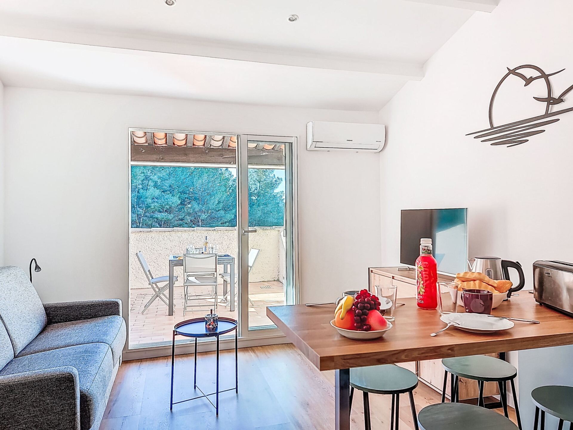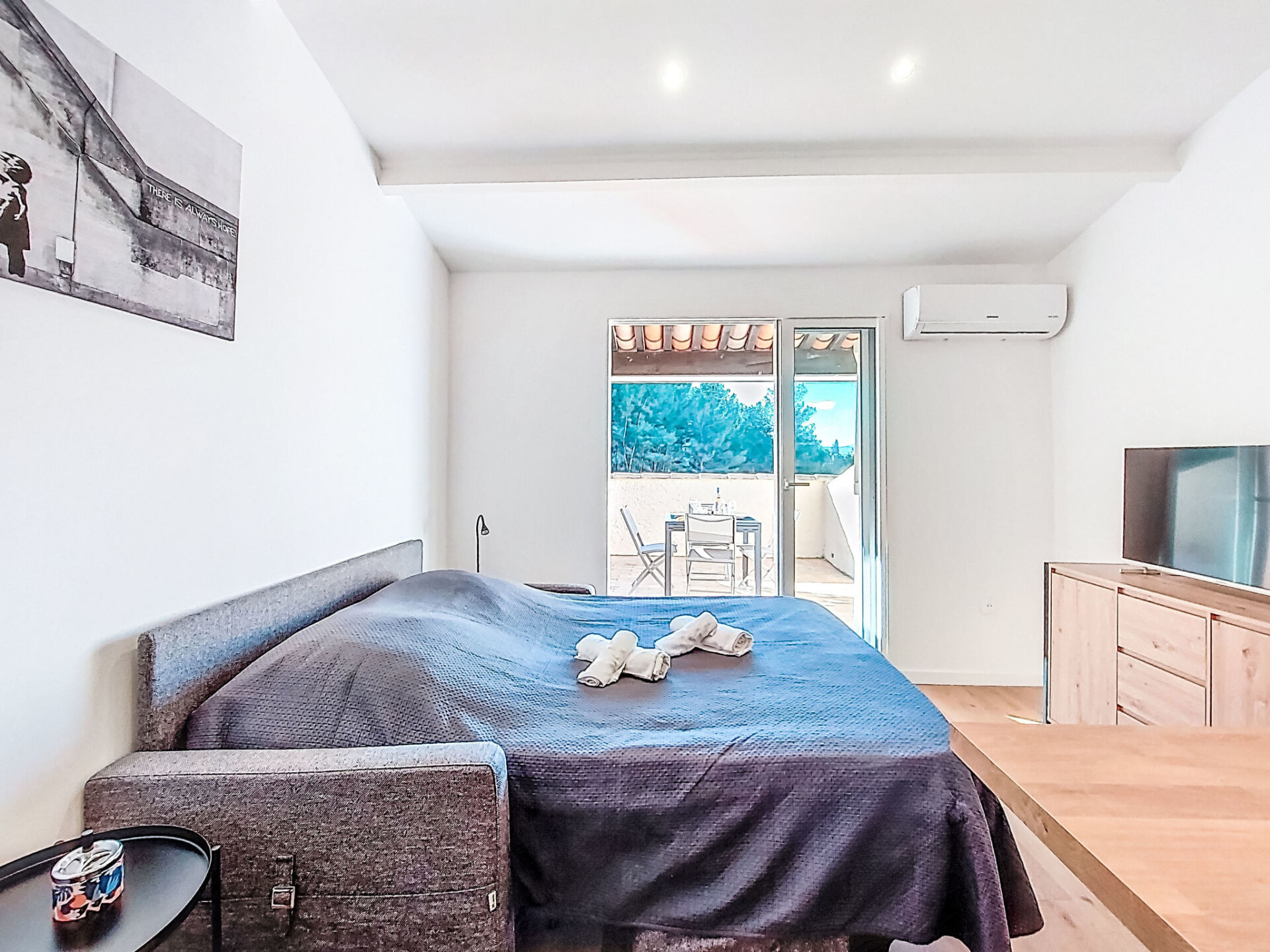 Studio 1-kamer 28 m2 op de 2e verdieping. Gerenoveerd in 2025, comfortabel en mooi ingericht: hal, zonder ramen met 1 x 2 stapelbedden (80 cm, lengte 190 cm). Woon-/eetkamer met 1 2-pers divanbed (140 cm, lengte 190 cm), TV (Flatscreen TV). Uitgang naar het terras. Kookhoek (afwasmachine, 4 inductiekookplaten, broodrooster, waterkoker, magnetron, elektrische koffiemachine, pads voor de koffiemachine (Nespresso) extra). Douche/WC. Air-conditioning, heteluchtverwarming. Groot terras 15 m2 gedeeltelijk overdekt, op het westen gelegen. Terrasmeubelen. Uitzicht in de verte op zee. Ter beschikking: wasmachine. Internet (WiFi, extra). Parkeerplaats nr. 816 (1 Auto). TV alleen FR. Rookmelders. Aanbod door een particulier volgens art. 155, IV van CGI. 83112001849LR