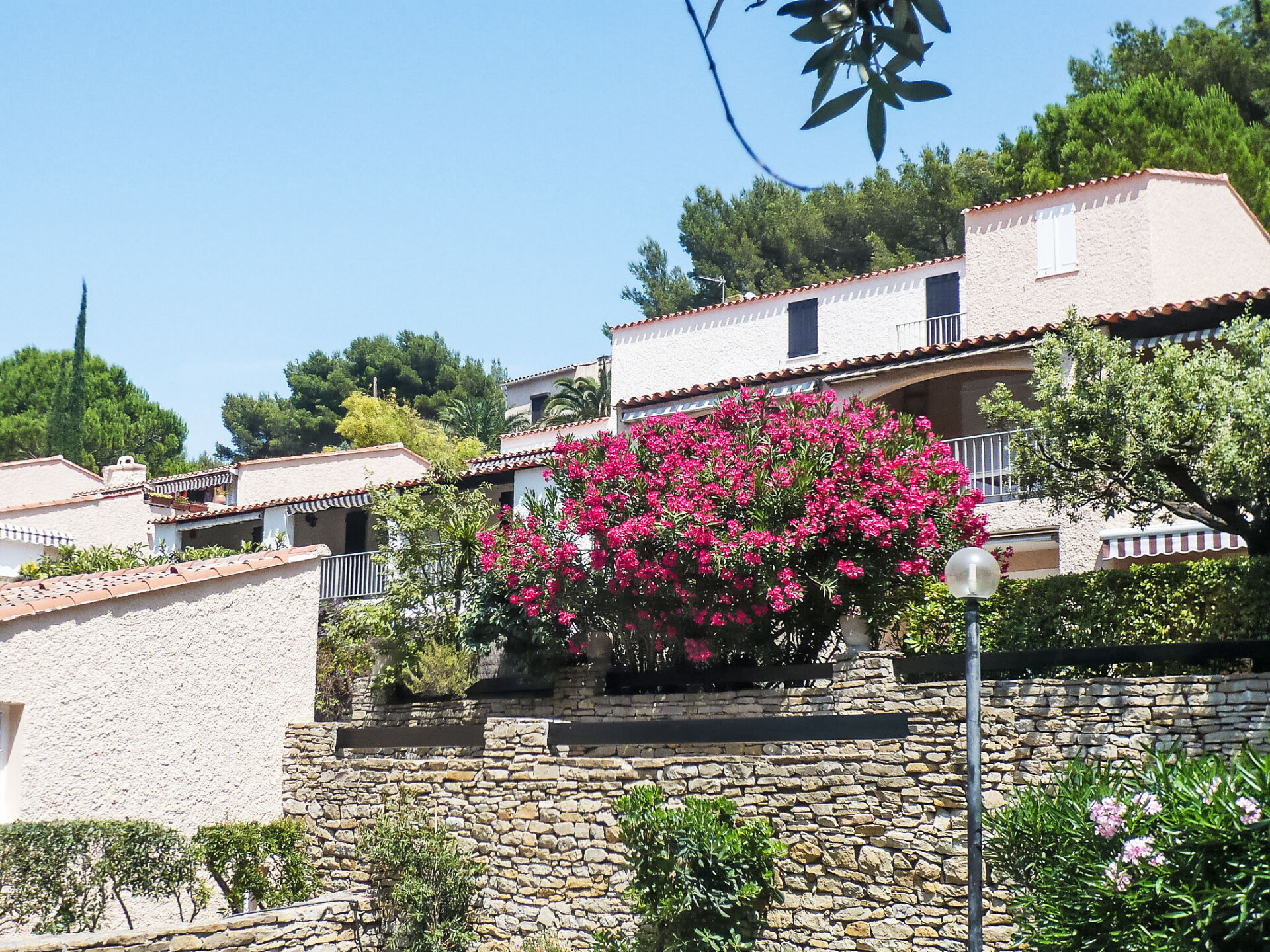 Kleine residentie "Hauts de la Madrague", omgeven door bomen. In de plaats, 2 km van het centrum van Saint Cyr, rustige, zonnige ligging op een heuvel, 400 m van zee, 400 m van het strand. Openbare parkeerplaatsen 100 m extra. Levensmiddelenwinkel 200 m, restaurant 300 m, bushalte "Le Viguier" 2.2 km, treinstation "Saint Cyr les Lecques-La Cadière" 3.3 km, zandstrand, stenenstrand 400 m. Jachthaven 400 m, golfterrein (18 holes) 4 km. Attracties in de buurt: Aqualand 3 km. Wandelgebied Sainte Baume, Sainte Victoire, Calanques Port-Cros, Porquerolles, Ile verte, Embiez, Figuerolles, Cassis. De sleuteloverdracht vindt plaats bij het agentschap Interhome in St Cyr la Madrague.