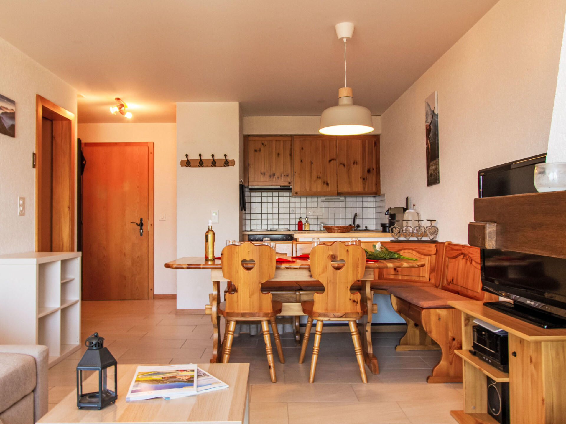 "Hauts de Nendaz A F3", appartement 2-kamers 50 m2 op de 3e verdieping, op het noordwesten gelegen. Het objekt is geschikt voor 2 volwassenen + 2 kinderen. Licht, comfortabel en mooi ingericht: hal met 1 x 2 stapelbedden (90 cm, lengte 190 cm). Woon-/eetkamer met open haard en Kabel-TV. Uitgang naar het balkon, op het noordwesten. 1 kamer met 1 2-pers bed (140 cm, lengte 200 cm). Uitgang naar het balkon. Open keuken (4-pits kookplaat, oven, afwasmachine, broodrooster, waterkoker, elektrische koffiemachine, pads voor de koffiemachine (nespresso) extra, raclette oven, fondue Set (kaas)). Bad/WC. Balkon, op het noordwesten gelegen. Balkonmeubilair. Zeer mooi uitzicht op de bergen en de skipiste. Ter beschikking: haardroger. Internet (WiFi, gratis). Parkeerplaats nr. F3. Niet rokers woning. In plaats van een afgesloten slaapkamer bevinden sommige slaapgedeeltes zich in een open ruimte (galerij, nis, etc.).