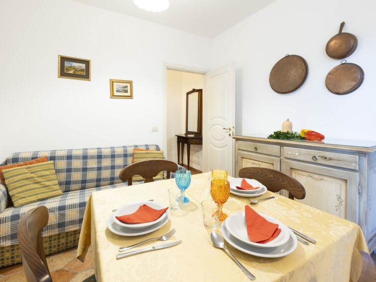"Viaggiando", appartement 2-kamers 45 m2, op de begane grond. Doelmatig ingericht: woon-/eetkamer met 1 divanbed (140 cm), air-conditioning. Uitgang naar het terras. 1 2-pers. kamer. Kookhoek (4-pits kookplaat, magnetron, elektrische koffiemachine). Douche/bidet/WC. Gas-verwarming (extra). Verwarming alleen beschikbaar van 01.11. tot 01.04. Terras overdekt. Terrasmeubelen. Uitzicht op het zwembad. Ter beschikking: haardroger. Internet (Internet (WiFi), gratis). Parkeerplaats (1 Auto). Privé ingang. IT008031B59E8GI29N