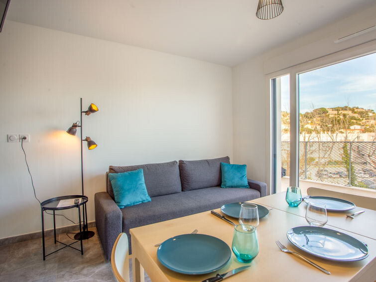 Appartement 2-kamers 41 m2 op de 3e verdieping, op het oosten gelegen. Licht, smaakvol ingericht: woonkamer met panoramavenster op het oosten met 1 2-pers divanbed (140 cm, lengte 190 cm), TV (Flatscreen TV), ventilator. Uitgang naar het terras. 1 kamer met 1 2-pers bed (160 cm, lengte 200 cm), TV (Flatscreen TV), ventilator. Uitgang naar het terras. Open keuken (oven, afwasmachine, 3 inductiekookplaten, broodrooster, waterkoker, magnetron, elektrische koffiemachine, pads voor de koffiemachine (Nespresso) extra). Douche/WC. Elektrische verwarming. Terras 17 m2, op het oosten gelegen. Terrasmeubelen. Uitzicht op de plaats. Ter beschikking: wasmachine, strijkijzer, haardroger. Internet (Internet (WiFi), gratis). Parkeerplaats nr. 49 (overdekt). Geschikt voor families. Niet rokers woning. TV alleen FR. Rookmelders. Aanbod door een particulier volgens art. 155, IV van CGI. 83070001773F6
