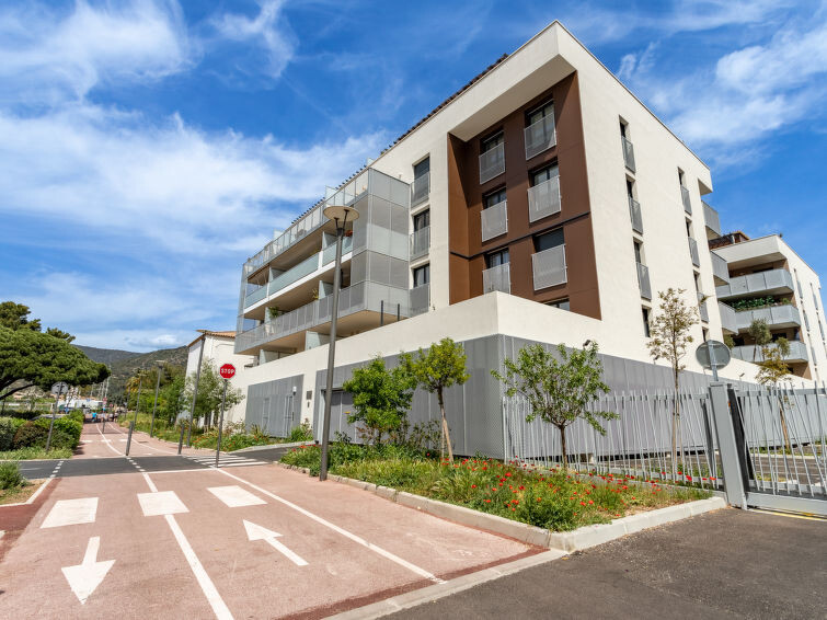Le Lavandou: Mooi residentie "Indigo Bay", van 4 verdiepingen, bouwjaar 2022. 1 km van het centrum van Lavandou, in een woonwijk, 1 km van zee, 1 km van het strand. In het huis: lift, bergruimte voor fietsen. Supermarkt 300 m, restaurant 550 m, bakkerij 200 m, bushalte "Lavandou Gare routière" 700 m, zandstrand "du Lavandou" 1 km. Jachthaven 1 km. Attracties in de buurt: Magic World 26 km, Parc Olbius Riquier 21 km, St Tropez 39 km, Le Jardin des Méditerranées 15 km. Wandelgebied Sentiers du Littoral. Gesloten residentie met een elektrische deur. De sleuteloverdracht vindt plaats bij het agentschap Interhome in Le Lavandou, 1 km.