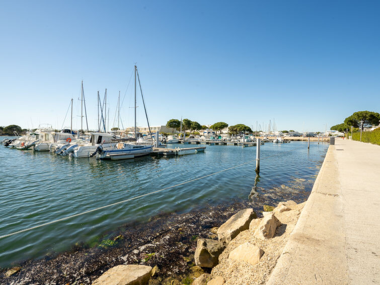 De residence "L'Isle Catherine" bevindt zich aan het kanaal die de zee met het Salonique meer verbindt. Residentie "Isle Catherine". 700 m van zee, 100 m van het meer, 700 m van het strand. Voor medegebruik: tuin met gazon. Winkel, levensmiddelenwinkel, winkelcentrum, restaurant 300 m, bushalte 400 m, treinstation 3.6 km, zandstrand "Plage Sud" 700 m, thermaalbad "Thalazur Les Bains de Camargue" 38 km. Jachthaven 100 m. Attracties in de buurt: Casino Flamingo 2 km, Seaquarium 2 km, Arènes du Grau du Roi 3.8 km, Aigues Mortes 9 km, La Grande Motte 12 km, Nîmes 52 km. Wandelgebied Réserve Naturelle de Camargue. Vliegveld 25 km van het huis. Campings 300 m (2 x per week 's avonds animatie tijdens het seizoen).