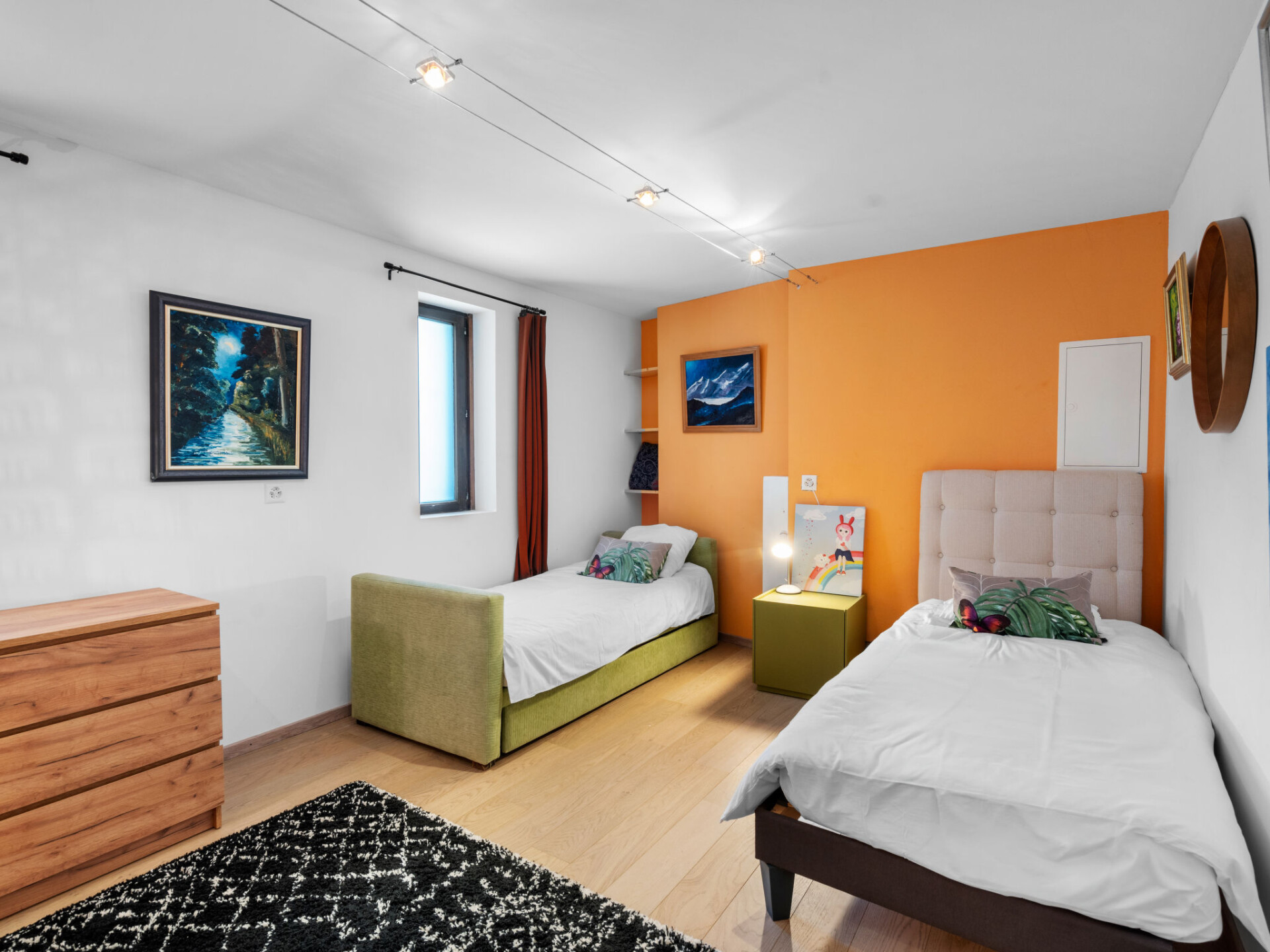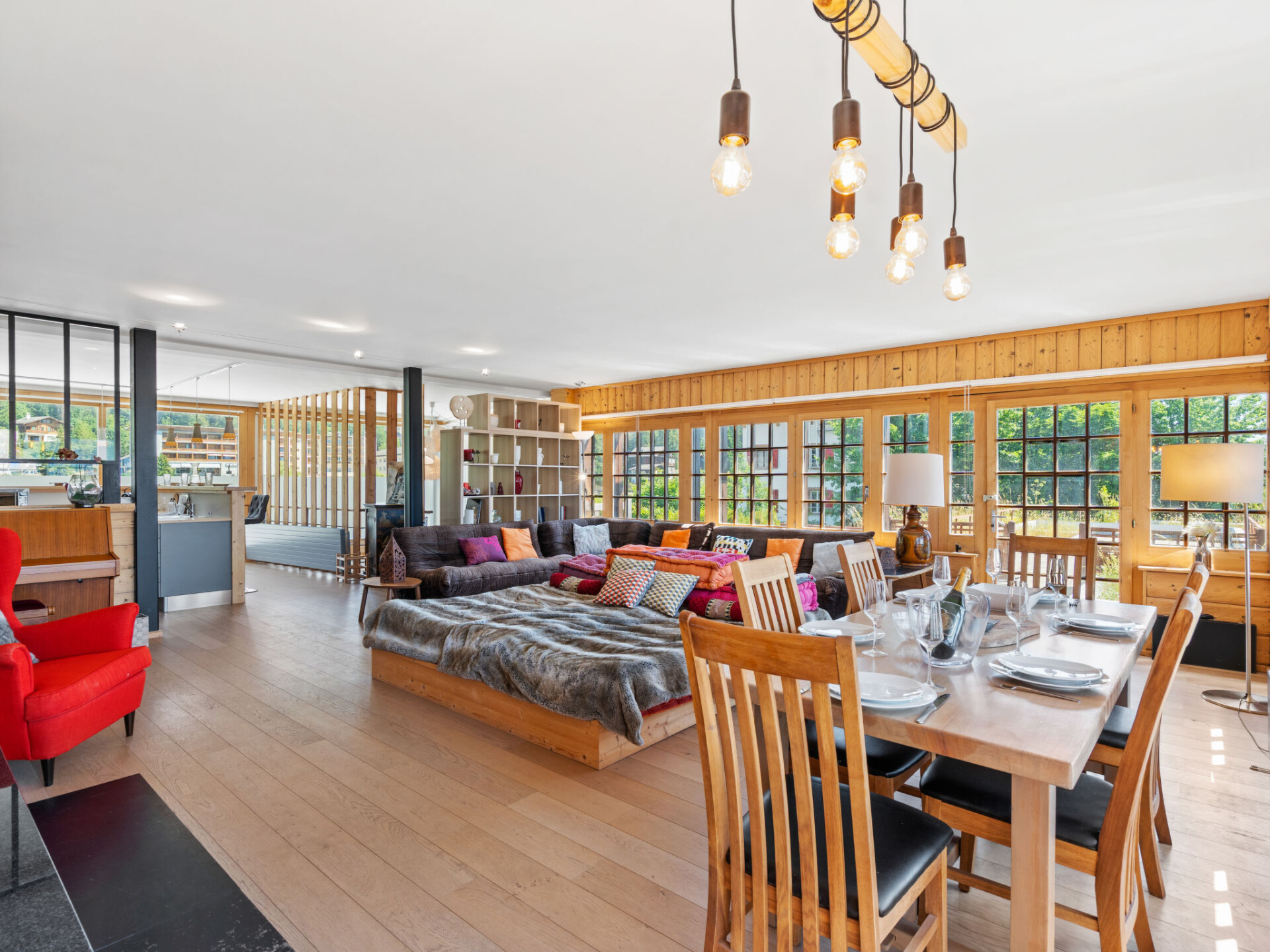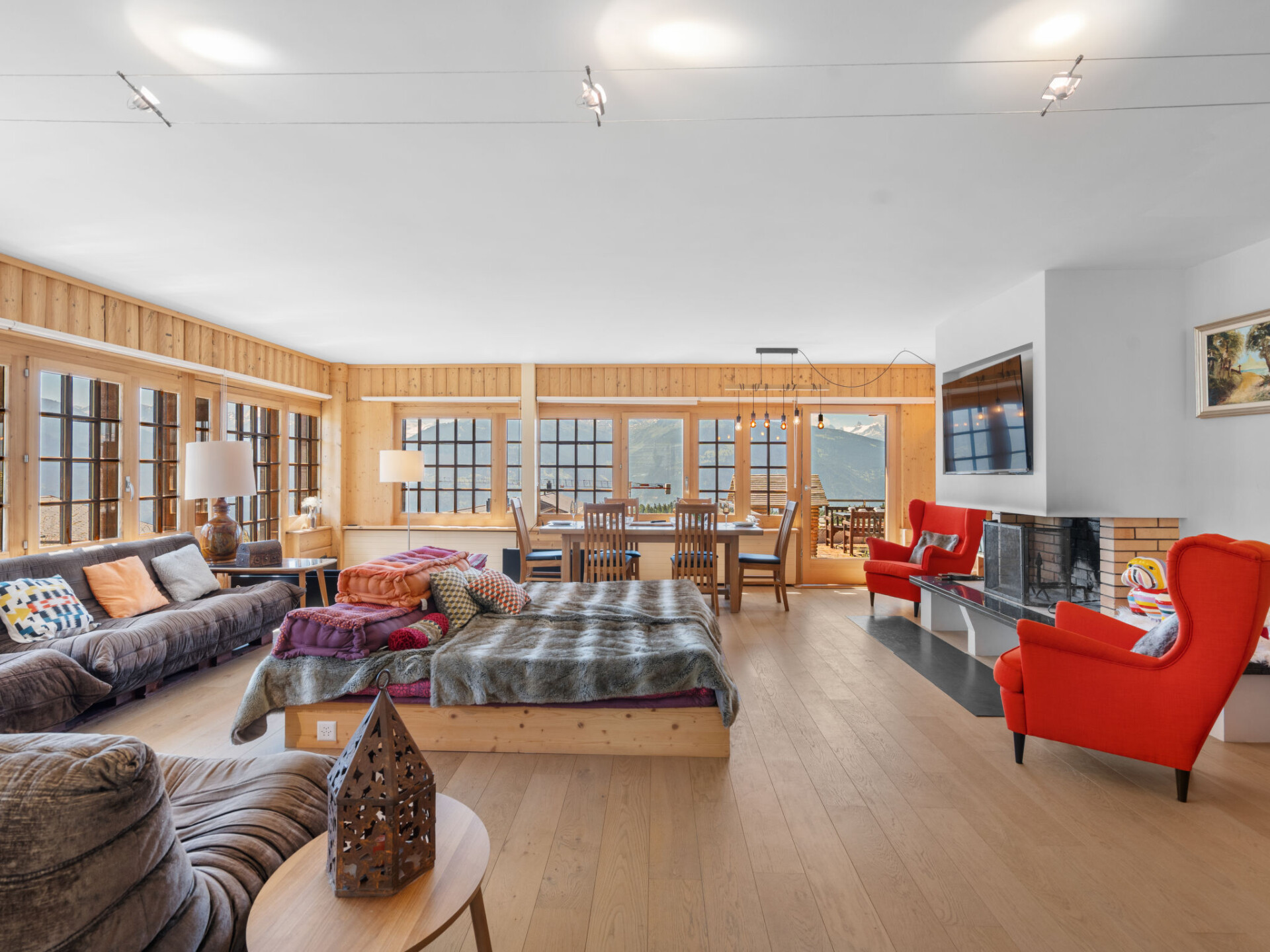 "Jeanne D'Arc LOFT COMBI", maisonette 10-kamers 350 m2, op het zuiden gelegen. Ruim, comfortabel en smaakvol ingericht: groot woon-/eetkamer met open haard, eettafel en Kabel-TV. Uitgang naar het terras. 1 kamer met 1 2-pers bed (160 cm, lengte 200 cm), bad/WC, dubbele wastafels en Kabel-TV. 1 kamer met 2 bedden (80 cm, lengte 200 cm), douche/WC. 1 kamer met 2 bedden (80 cm, lengte 200 cm), douche/WC. Uitgang naar het terras. 1 kamer met 2 bedden (90 cm, lengte 190 cm), douche/WC. 1 kamer met 1 2-pers bed (160 cm, lengte 200 cm), bad/WC en dubbele wastafels. Uitgang naar het terras. 1 kamer met 1 2-pers bed (2 x 90 cm, lengte 200 cm), douche/WC. Uitgang naar het terras. Open keuken (oven, afwasmachine, 4 keramische glas kookplaten, broodrooster, waterkoker, magnetron, diepvriezer, elektrische koffiemachine, pads voor de koffiemachine (Nespresso) extra, raclette oven, fondue Set (chinese)) met bar. Aparte WC. Souterrain: (wenteltrap) groot speelkamer met bar. Groot salon. Aparte WC, Sauna. Groot terras 50 m2, op het zuiden gelegen, groot terras 50 m2, op het zuiden gelegen en op het oosten gelegen. Terrasmeubelen, barbecue (verrijdbaar). Zeer mooi panoramazicht op het meer, de bergen, het dal en het landschap. Ter beschikking: wasmachine, droger, strijkijzer, haardroger. Internet (WiFi, gratis). Garage nr. 21 (1 Auto) op 350 m, hoogte 200 cm, breedte 290 cm. Geschikt voor families. Rookvrij huis. Maximaal 1 klein huisdier/hond toegestaan. Privé ingang, geen lift. Combinatie (verbindingsdeur) van 2 appartementen. Elektrische trapliften beschikbaar.