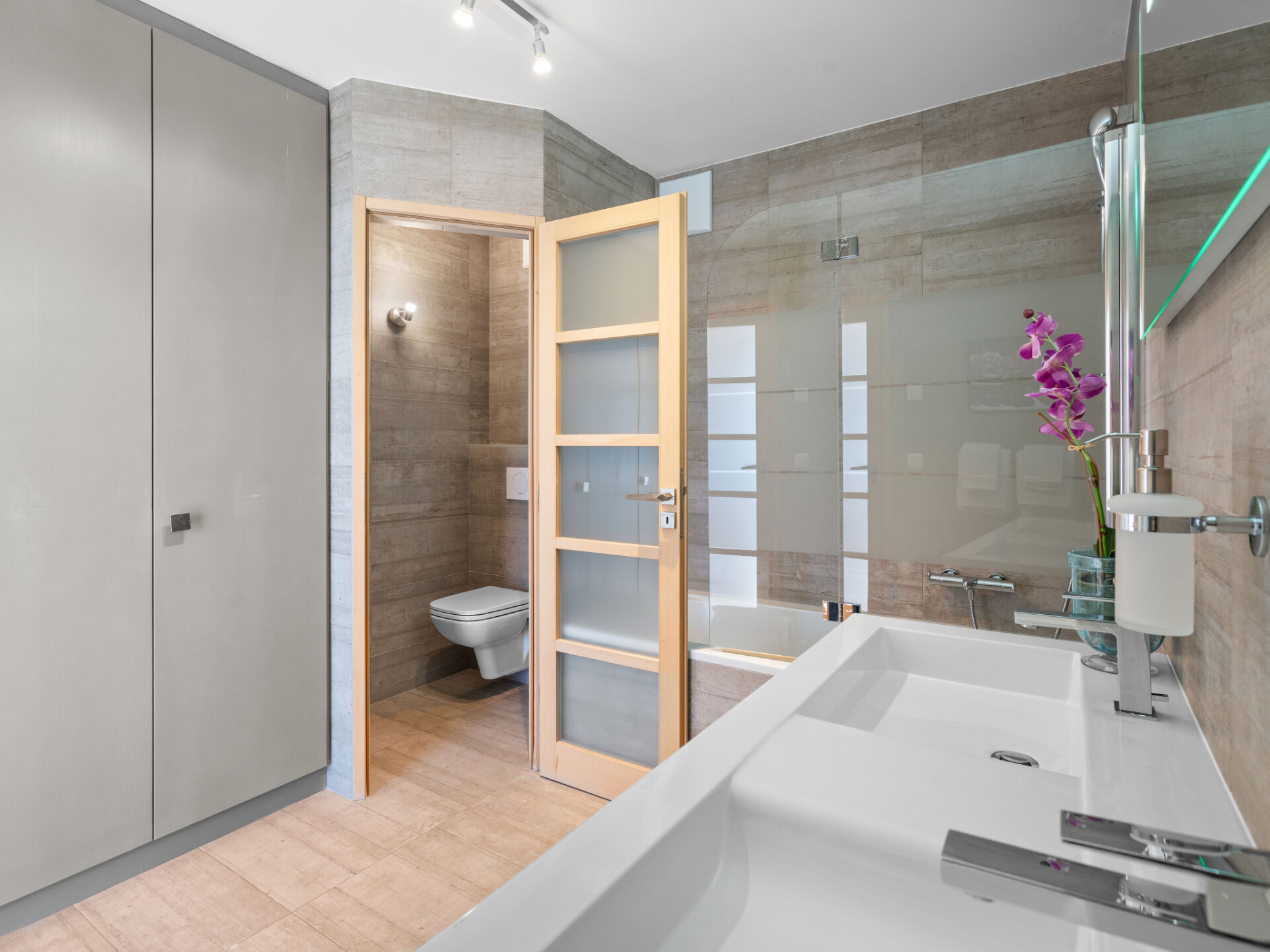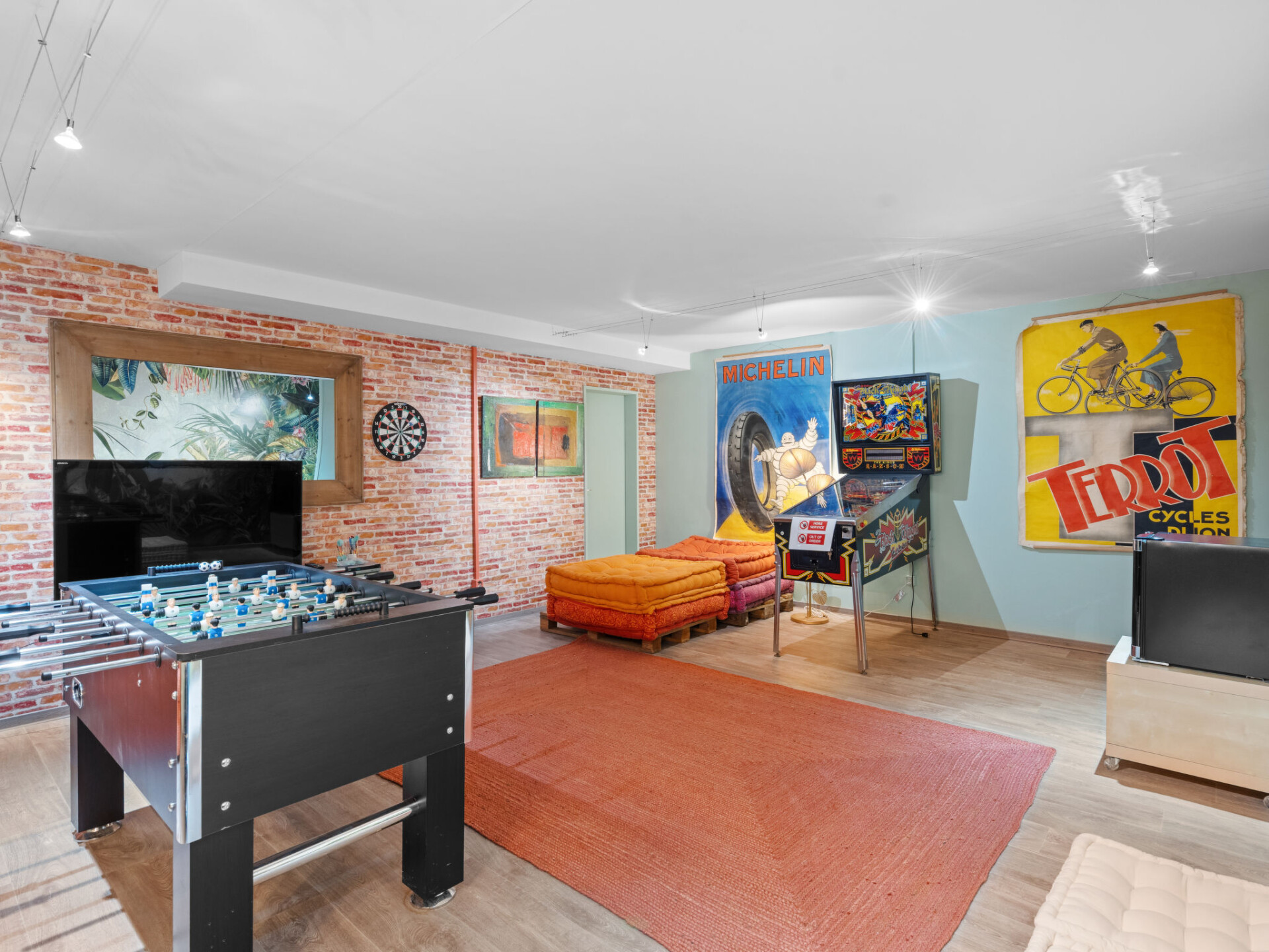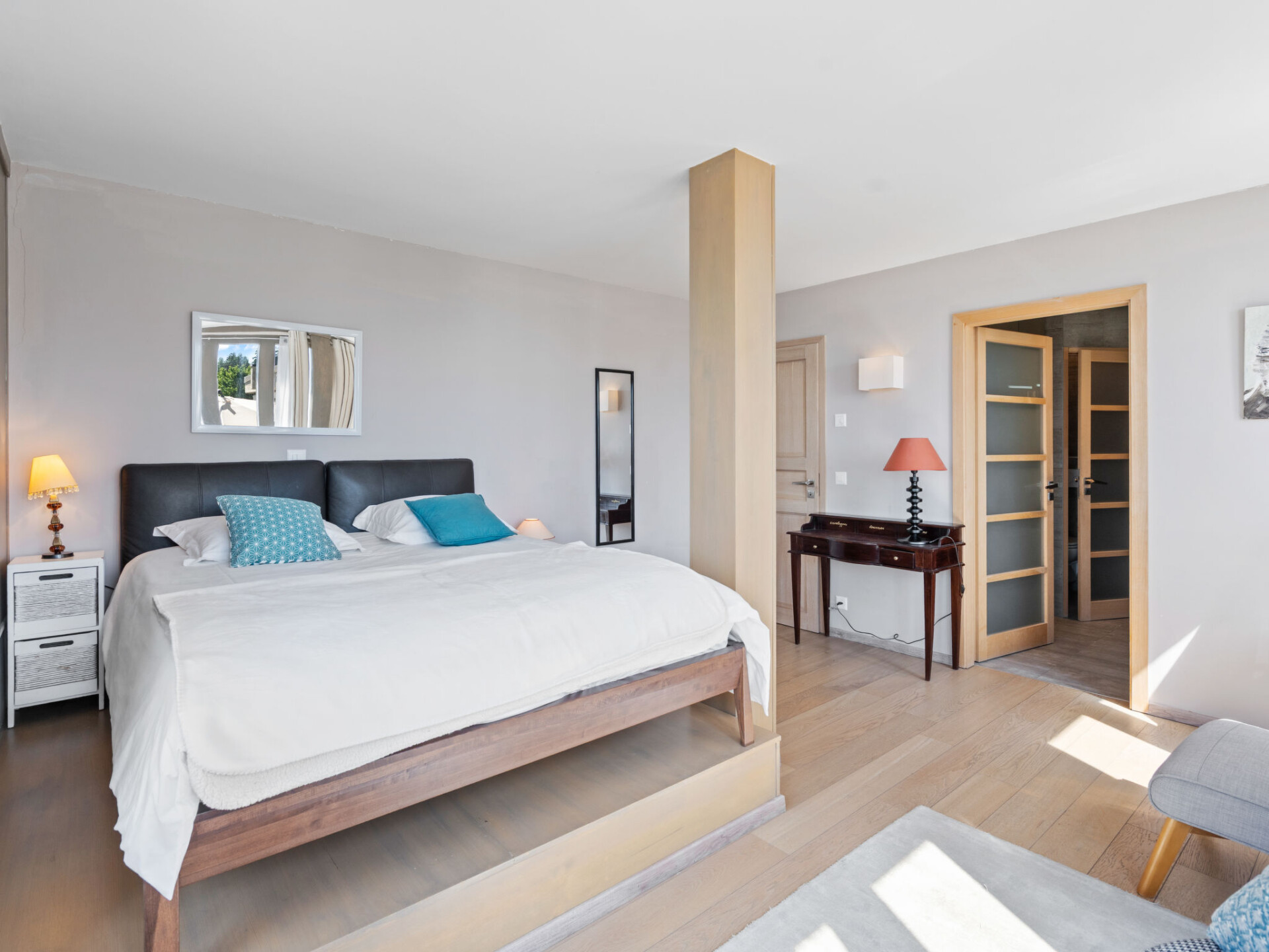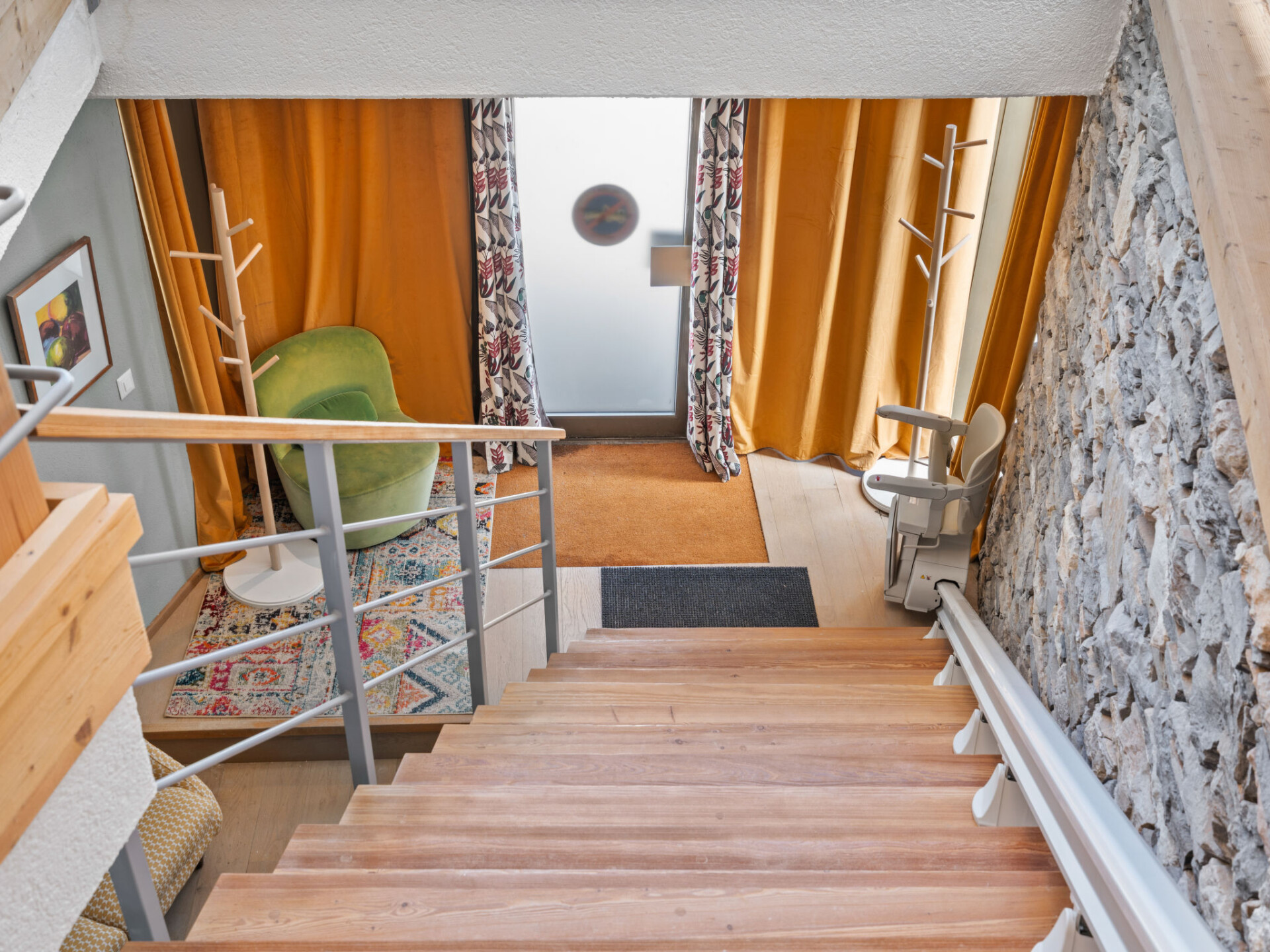"Jeanne D'Arc LOFT COMBI", maisonette 10-kamers 350 m2, op het zuiden gelegen. Ruim, comfortabel en smaakvol ingericht: groot woon-/eetkamer met open haard, eettafel en Kabel-TV. Uitgang naar het terras. 1 kamer met 1 2-pers bed (160 cm, lengte 200 cm), bad/WC, dubbele wastafels en Kabel-TV. 1 kamer met 2 bedden (80 cm, lengte 200 cm), douche/WC. 1 kamer met 2 bedden (80 cm, lengte 200 cm), douche/WC. Uitgang naar het terras. 1 kamer met 2 bedden (90 cm, lengte 190 cm), douche/WC. 1 kamer met 1 2-pers bed (160 cm, lengte 200 cm), bad/WC en dubbele wastafels. Uitgang naar het terras. 1 kamer met 1 2-pers bed (2 x 90 cm, lengte 200 cm), douche/WC. Uitgang naar het terras. Open keuken (oven, afwasmachine, 4 keramische glas kookplaten, broodrooster, waterkoker, magnetron, diepvriezer, elektrische koffiemachine, pads voor de koffiemachine (Nespresso) extra, raclette oven, fondue Set (chinese)) met bar. Aparte WC. Souterrain: (wenteltrap) groot speelkamer met bar. Groot salon. Aparte WC, Sauna. Groot terras 50 m2, op het zuiden gelegen, groot terras 50 m2, op het zuiden gelegen en op het oosten gelegen. Terrasmeubelen, barbecue (verrijdbaar). Zeer mooi panoramazicht op het meer, de bergen, het dal en het landschap. Ter beschikking: wasmachine, droger, strijkijzer, haardroger. Internet (WiFi, gratis). Garage nr. 21 (1 Auto) op 350 m, hoogte 200 cm, breedte 290 cm. Geschikt voor families. Rookvrij huis. Maximaal 1 klein huisdier/hond toegestaan. Privé ingang, geen lift. Combinatie (verbindingsdeur) van 2 appartementen. Elektrische trapliften beschikbaar.