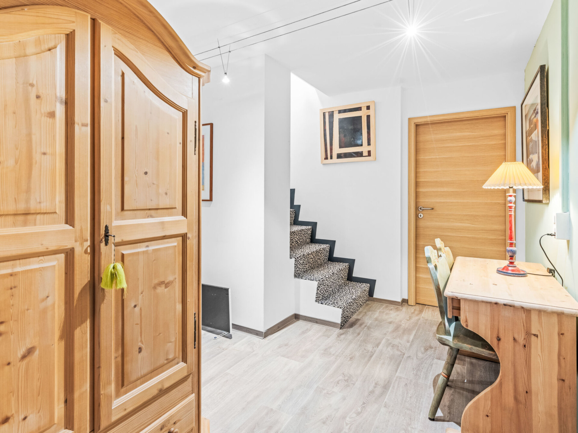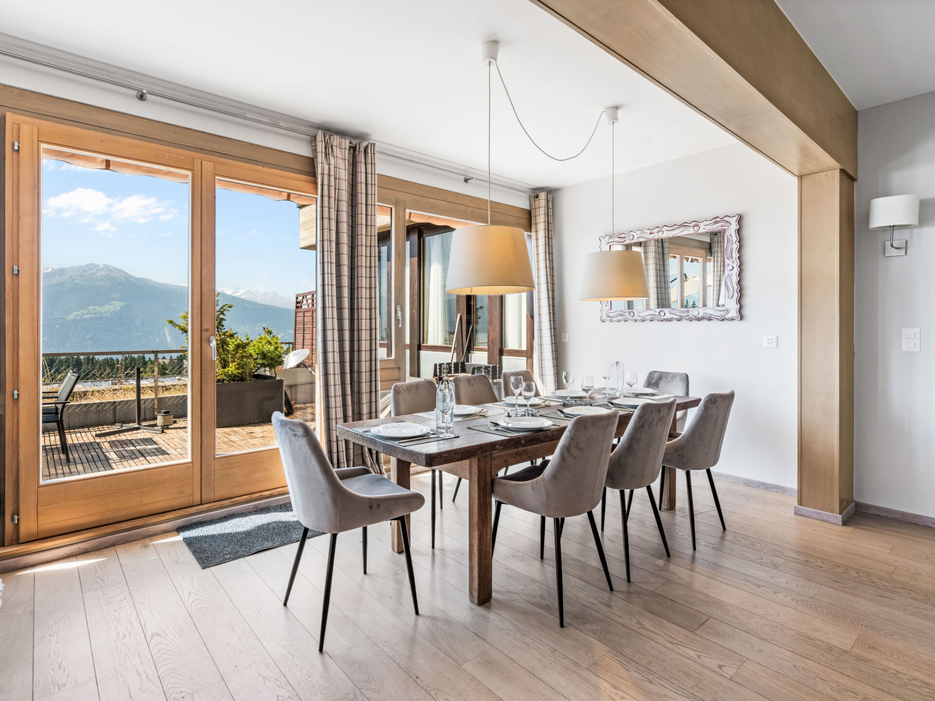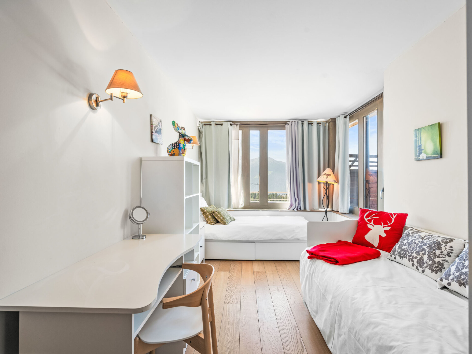 "Jeanne D'Arc LOFT Montagne", maisonette 6-kamers 200 m2, op het zuiden gelegen. Ruim, smaakvol en gezellig ingericht: groot woon-/eetkamer met open haard, aparte WC en Kabel-TV. Uitgang naar het terras. 1 kamer met 1 2-pers bed (160 cm, lengte 200 cm), bad/WC, dubbele wastafels en Kabel-TV. 1 kamer met 2 bedden (80 cm, lengte 200 cm), douche/WC. 1 kamer met 2 bedden (80 cm, lengte 200 cm), douche/WC. Uitgang naar het terras. Open keuken (oven, afwasmachine, 4 keramische glas kookplaten, broodrooster, waterkoker, magnetron, diepvriezer, raclette oven, fondue Set (chinese)) met bar. Souterrain: (wenteltrap) groot speelkamer met bar en TV. Groot salon. Sauna. Verwarming niet in alle ruimtes. Terras, op het zuiden gelegen. Terrasmeubelen, barbecue (verrijdbaar). Mooi panoramazicht op het meer, de bergen, het dal en het landschap. Ter beschikking: wasmachine, droger, strijkijzer, haardroger. Internet (WiFi, gratis). Garage nr. 21 op 350 m, hoogte 200 cm, breedte 290 cm. Geschikt voor families. Niet rokers woning. Maximaal 1 klein huisdier/hond toegestaan. Privé ingang, geen lift. Verbindingsdeur naar appartement CH3962.180.17 met 6 slaapplaatsen.