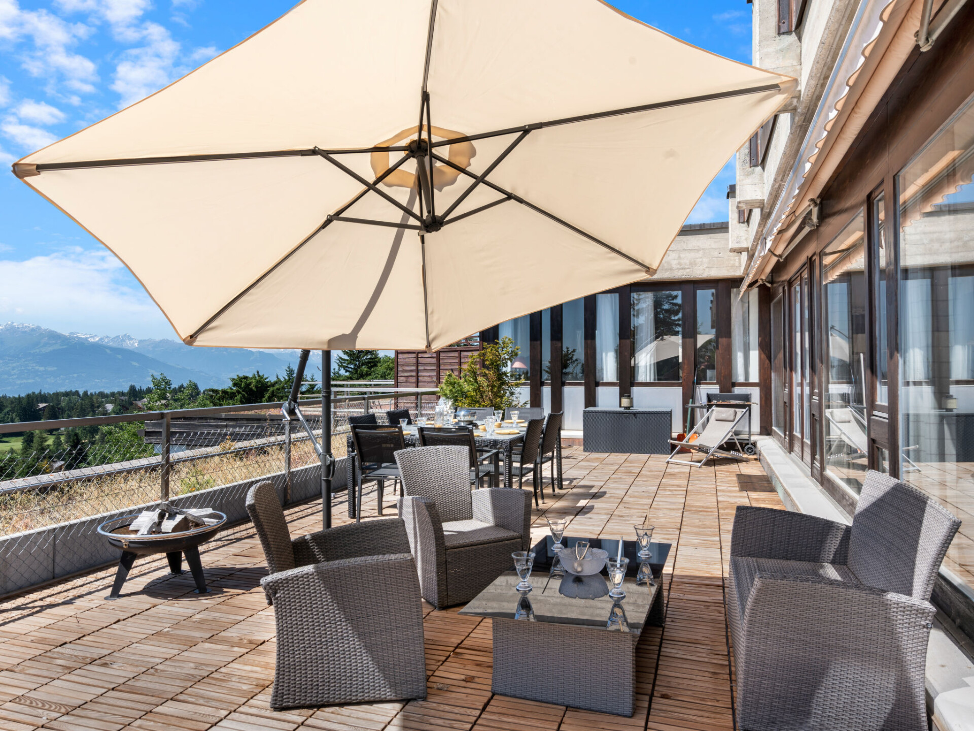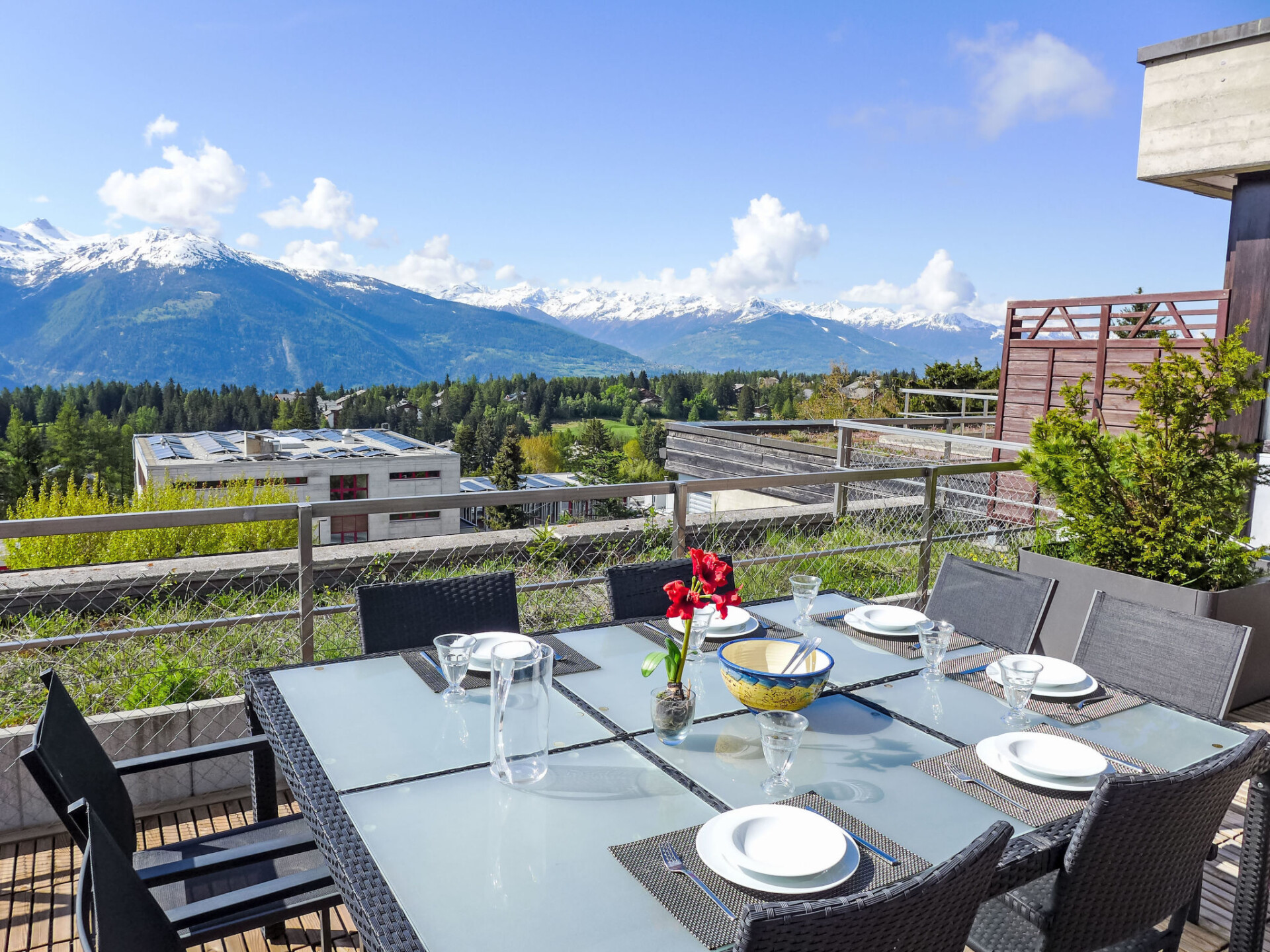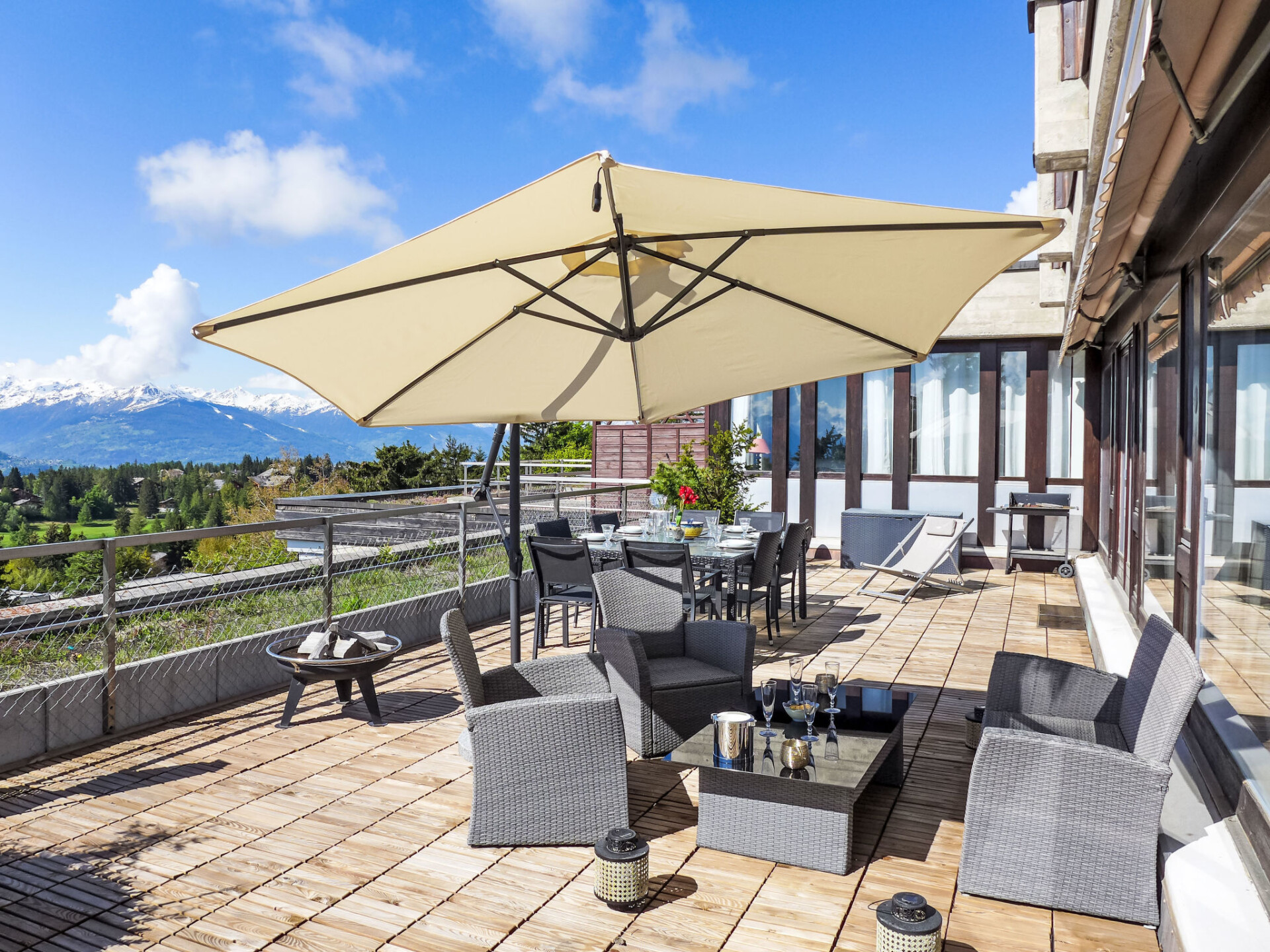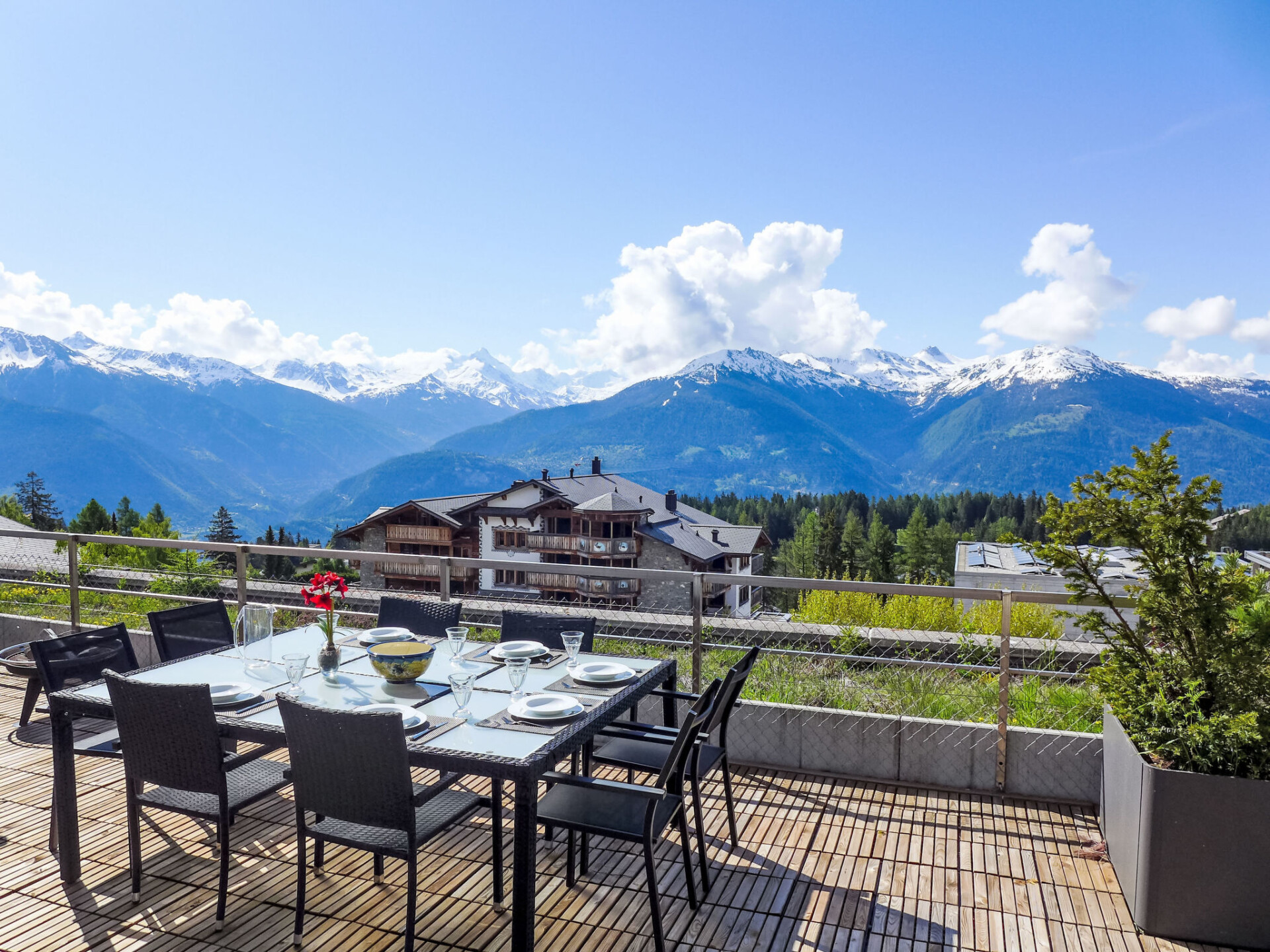 In de week na Pasen wordt het zwembad (ongeveer 26°) gedurende 21 dagen gesloten ivm reiniging. Zeer mooi, gezellige residentie "Jeanne d'Arc". 200 m van het centrum van Crans-Montana, zonnige ligging, perfecte locatie: in het centrum en toch rustig gelegen, 20 m van het meer, 650 m van het skigebied, op het zuiden. Voor medegebruik: overdekt zwembad verwarmd (90 m2, seizoensgebonden beschikbaarheid: 01.Jan. - 18.Apr. en 01.Jun. - 31.Dec. openingstijden zwembad: 08:30-20:00). Tennisbaan (01.Jun. - 30.Sep.). In het huis: salon, Internet (WiFi), sauna (extra). Lift, berging voor ski's, centrale verwarming. Parkeerplaats (beperkt aantal). Winkel 500 m, supermarkt 400 m, restaurant 150 m, bar 50 m, centrum te voet bereikbaar in 5 minuten, bushalte "Lac Grenon" 350 m, treinstation "Funiculaire Montana Gare" 1.2 km, meer (zwemmen) "Moubra" 1.2 km. Golfterrein (18 holes) 1.7 km, tennis 1.2 km, manege 1.6 km, ski faciliteiten 650 m, langlaufloipe 1.7 km, ijsbaan 500 m, kinderspeelplaats 250 m. Attracties in de buurt: Casino 500 m, Alaïa Bay 28.7 km, Alaïa Club 5.5 km. Bekende meren kunnen gemakkelijk worden bereikt: Moubra 1.2 km, Etang Long 1.2 km, Grenon 20 m. Wandelgebied Bisse du Ro 2.7 km. Gratis skibus. Vergelijkbare accommodaties kunnen worden geboekt.