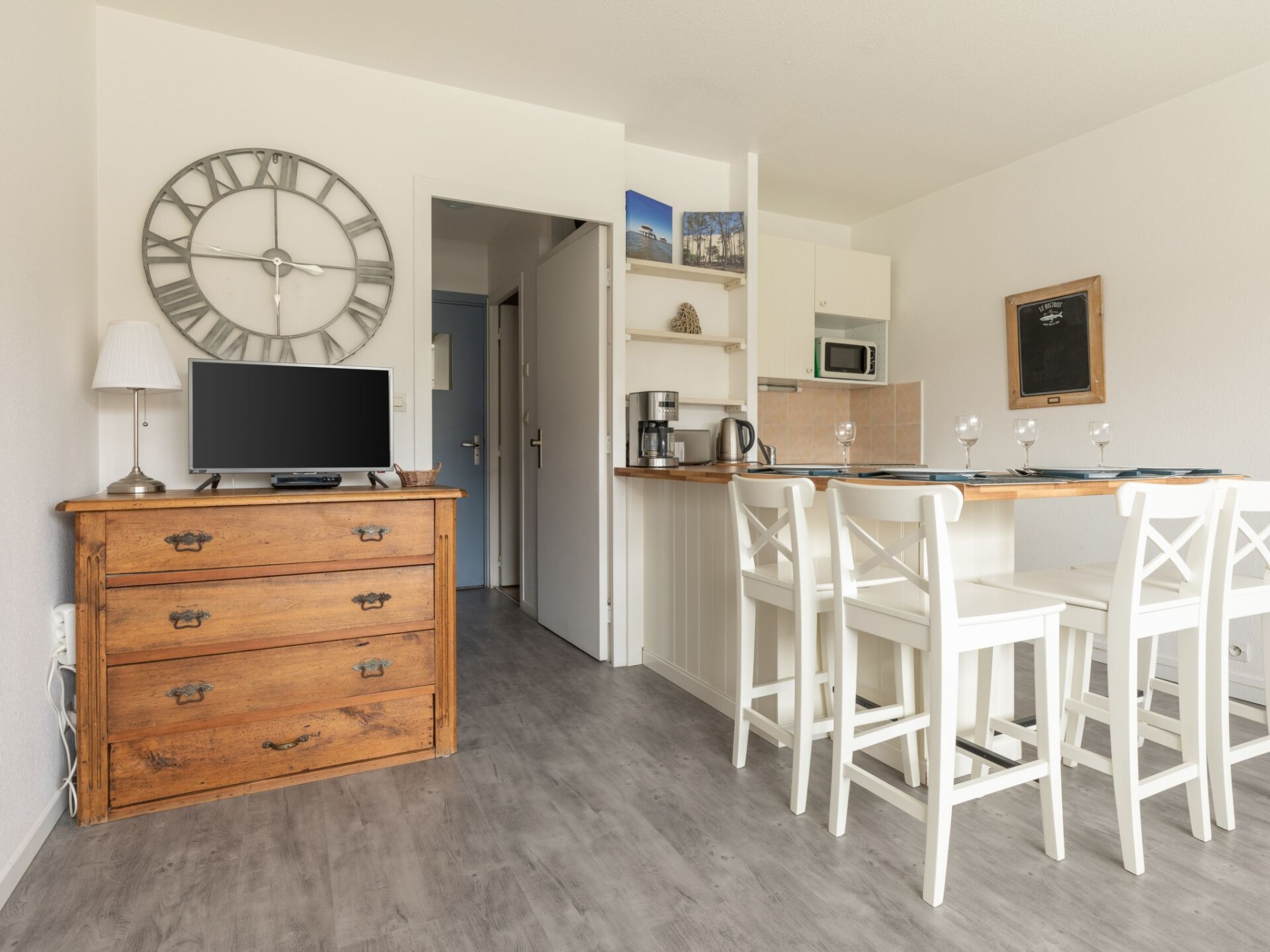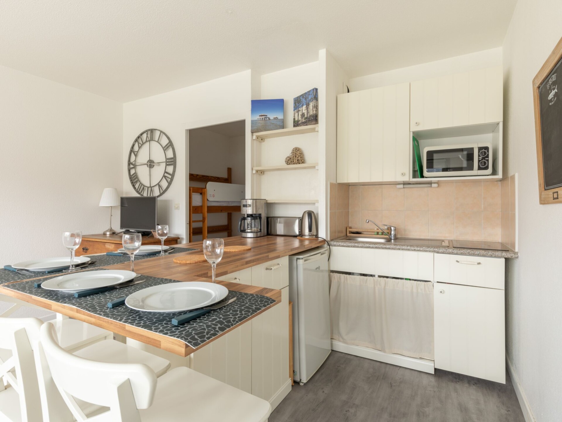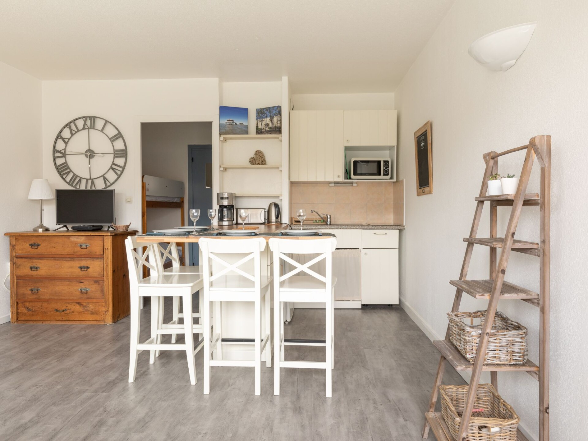 Studio 1-kamer 25 m2 op de 1e verdieping. Het objekt is geschikt voor 2 volwassenen + 2 kinderen. Comfortabel en mooi ingericht: woon-/eetkamer met 1 2-pers divanbed (1 x 160 cm, lengte 200 cm), TV (Flatscreen TV). Uitgang naar het balkon. Cabine met 1 x 2 stapelbedden (90 cm, lengte 190 cm). Open keuken (afwasmachine, 2 inductiekookplaten, broodrooster, waterkoker, magnetron, elektrische koffiemachine, pads voor de koffiemachine (Nespresso) extra, kookeiland). Bad/WC. Elektrische verwarming. Balkon 6 m2, op het zuiden gelegen. Balkonmeubilair, ligstoelen (1). Ter beschikking: strijkijzer, kinderstoel, kinderbed, haardroger. Internet (Internet (WiFi), gratis). Parkeerplaats (1 Auto). Niet rokers woning. Maximaal 1 huisdier/hond toegestaan. Rookmelders. In plaats van een afgesloten slaapkamer bevinden sommige slaapgedeeltes zich in een open ruimte (galerij, nis, etc.). 33009000810BE