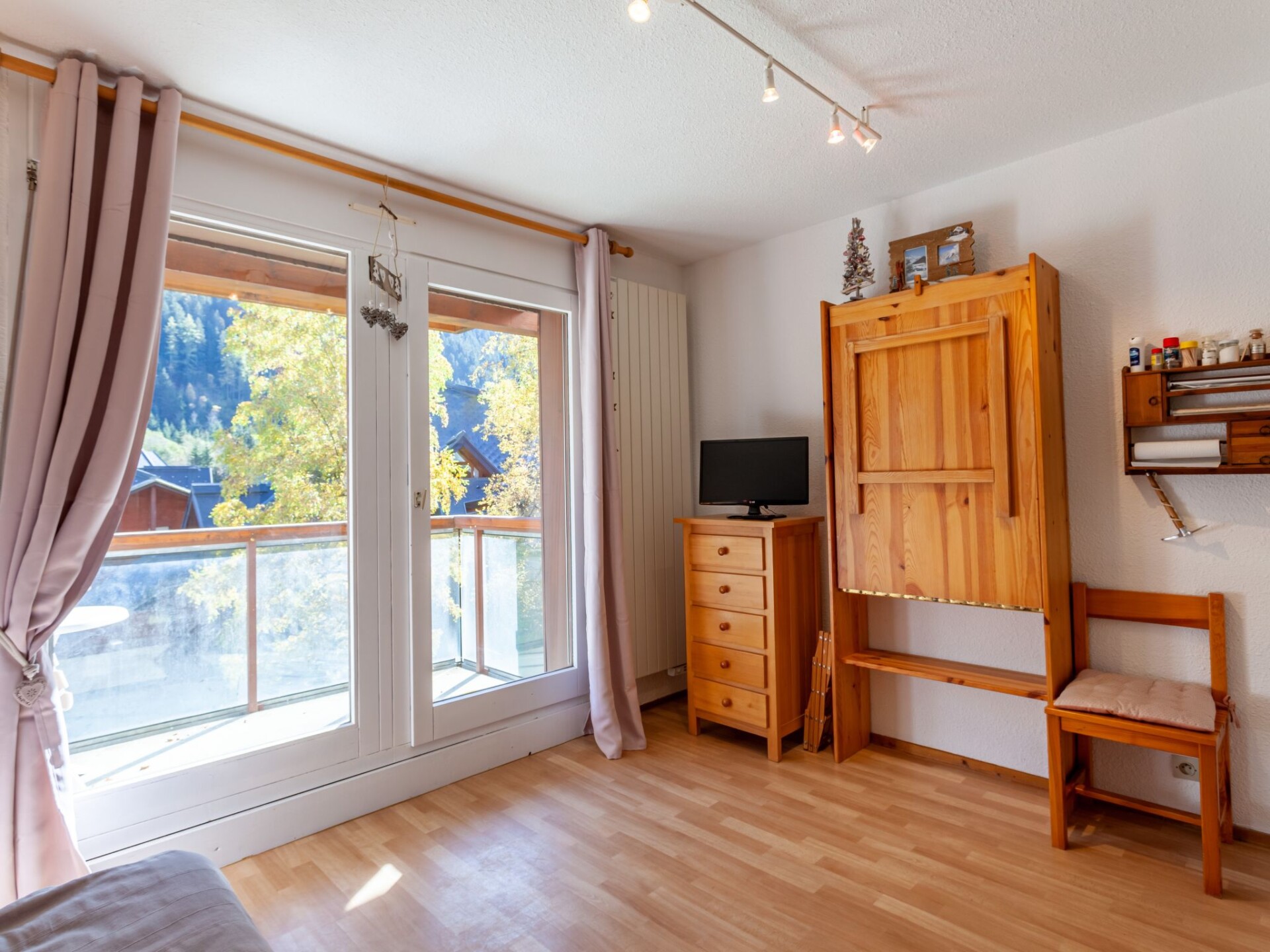 Studio 1-kamer 20 m2 op de 2e verdieping. Woon-/eetkamer met 1 2-pers divanbed (140 cm, lengte 190 cm), TV. Uitgang naar het balkon. Hal met 1 x 2 stapelbedden (80 cm, lengte 190 cm). Open keuken (2-pits kookplaat, broodrooster, waterkoker, elektrische koffiemachine, raclette oven, combimagnetron, fondue Set (kaas)). Badkamer, aparte WC. Elektrische verwarming. Klein balkon 3 m2, op het zuidoosten gelegen. Balkonmeubilair. Uitzicht op de bergen. Ter beschikking: Internet (WiFi, extra). Parkeerplaats. 1 klein huisdier/hond toegestaan. TV alleen FR. Rookmelders, geen lift. Aanbod door een particulier volgens art. 155, IV van CGI. 74085000468GZ