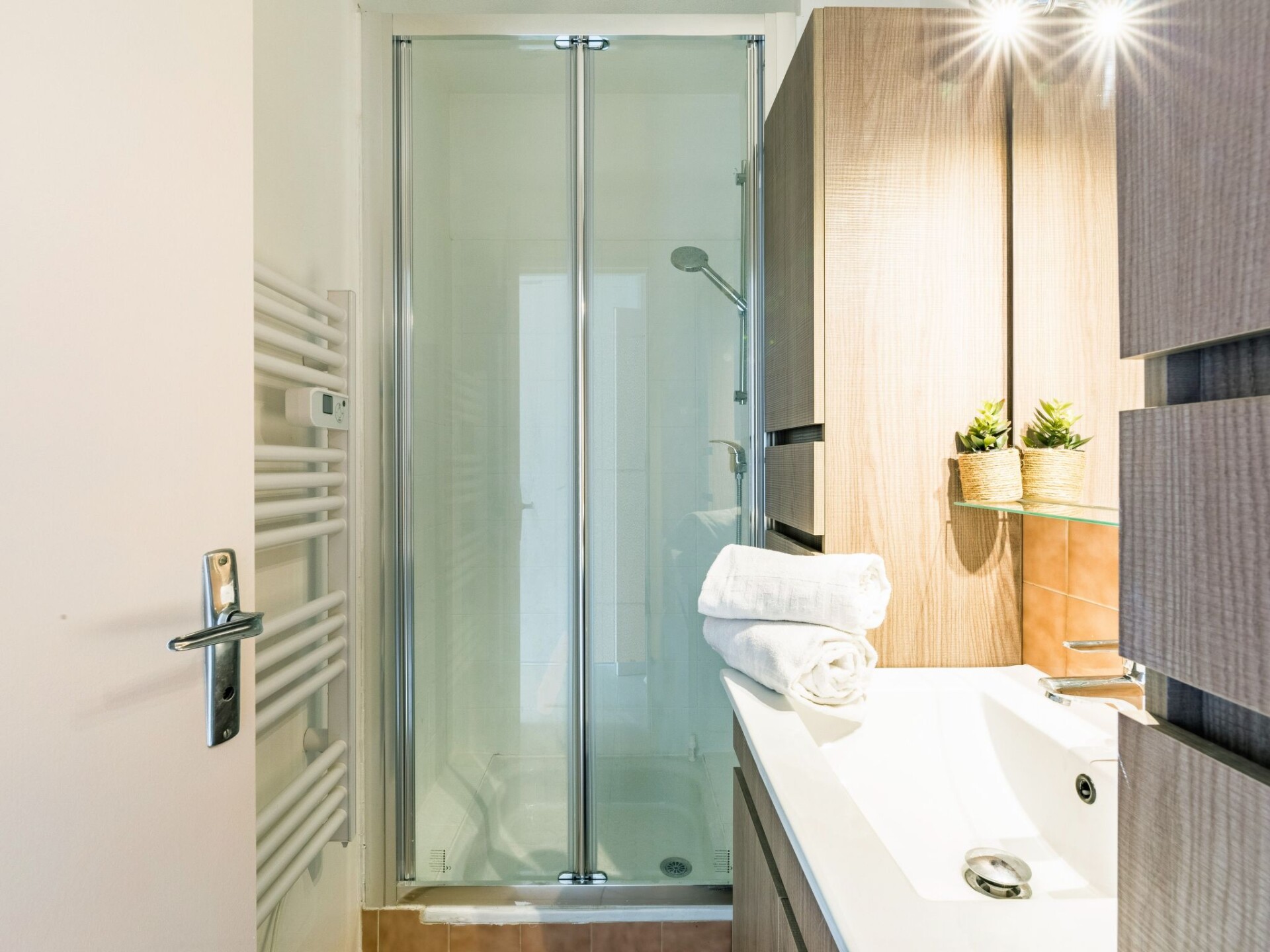 Appartement 3-kamers 57 m2 op de 2e verdieping, op het zuiden gelegen. Ruim, volledig gerenoveerd in 2022, comfortabel en mooi ingericht: woon-/eetkamer met panoramavenster met TV (Flatscreen TV). Uitgang naar het terras. 1 kamer met 1 2-pers bed (1 x 160 cm, lengte 200 cm), wastafel, douche en ventilator. 1 kamer met panoramavenster met 2 bedden (80 cm, lengte 200 cm), ventilator. Uitgang naar het balkon. Open keuken (oven, afwasmachine, 4 keramische glas kookplaten, broodrooster, waterkoker, magnetron, diepvriezer, elektrische koffiemachine). Badkamer, aparte WC. Elektrische verwarming. Balkon 5 m2, terras 7 m2. Terrasmeubelen. Ter beschikking: wasmachine, strijkijzer, haardroger. Internet (Internet (WiFi), gratis). Garage nr. 222. TV alleen FR. Rookmelders. FJF1950HTO