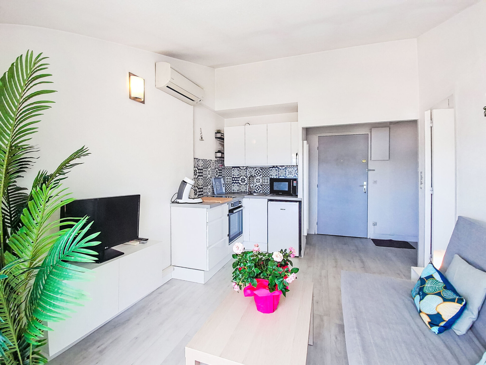 Appartement 2-kamers 30 m2 op de 3e verdieping. Licht, comfortabel en modern ingericht: woon-/eetkamer met TV (Flatscreen TV), air-conditioning. Uitgang naar de veranda. 1 kamer 8 m2 met 1 2-pers bed (140 cm, lengte 190 cm). Kookhoek (oven, 2 inductiekookplaten, broodrooster, magnetron, elektrische koffiemachine). Douche/WC. Elektrische verwarming. Mooi uitzicht op zee. Ter beschikking: Internet (WiFi, gratis). Garage nr. 29 (1 Auto), hoogte 170 cm, breedte 230 cm. Niet rokers woning. TV alleen FR. Rookmelders, geen lift. Aanbod door een particulier volgens art. 155, IV van CGI.